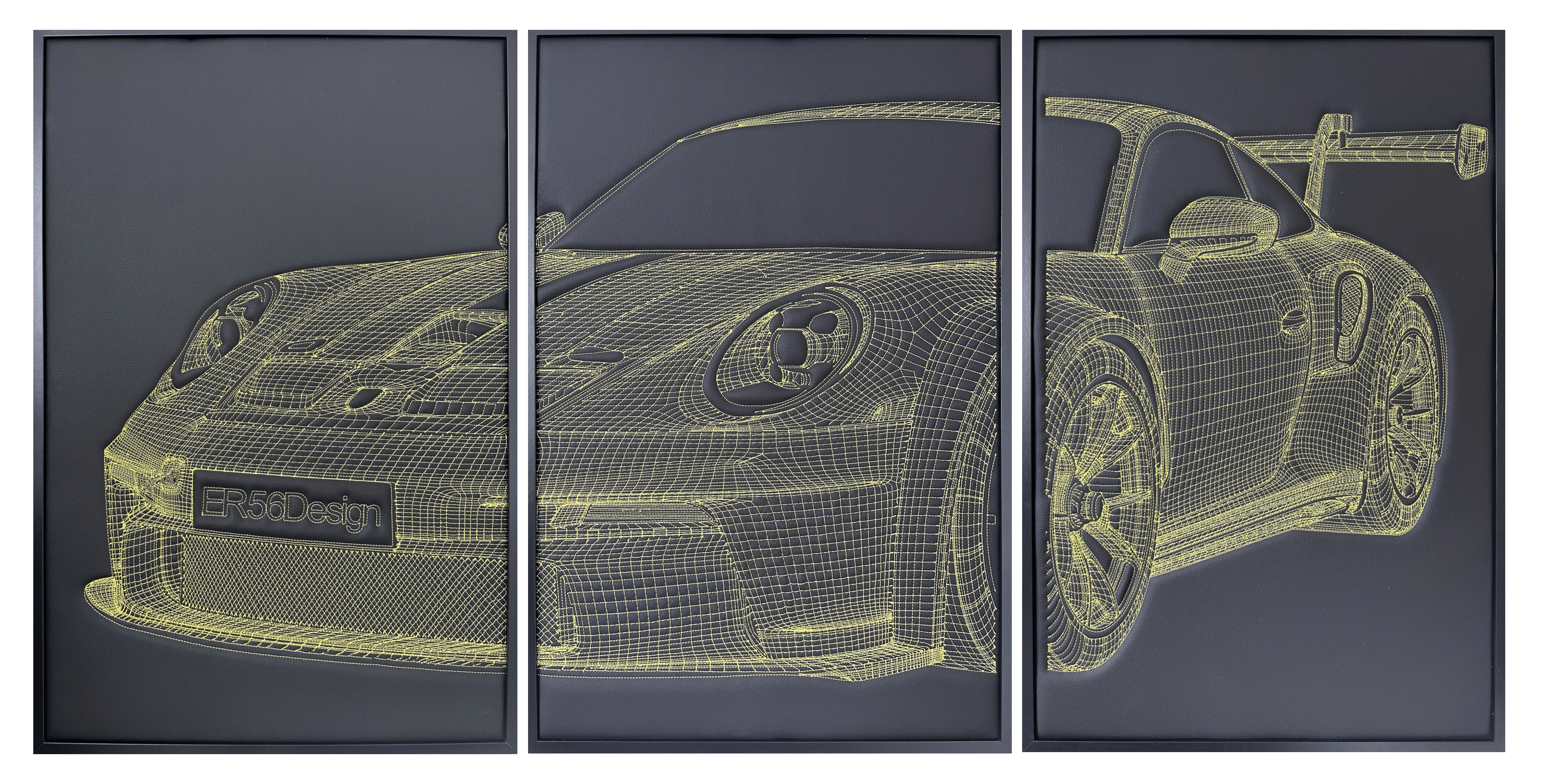 ديكور جداري من الجلد الفاخر مستوحى من بورشه 911 GT3 ثلاثي الأبعاد