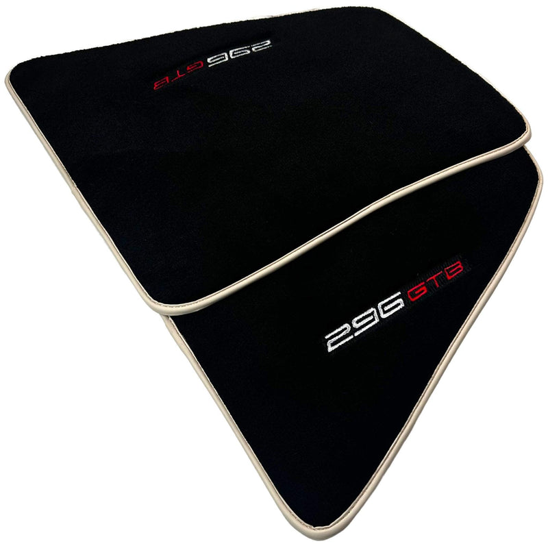 سجاد سيارات أسود لفيراري 296 GTB (2022-2025) مع حواف بيج