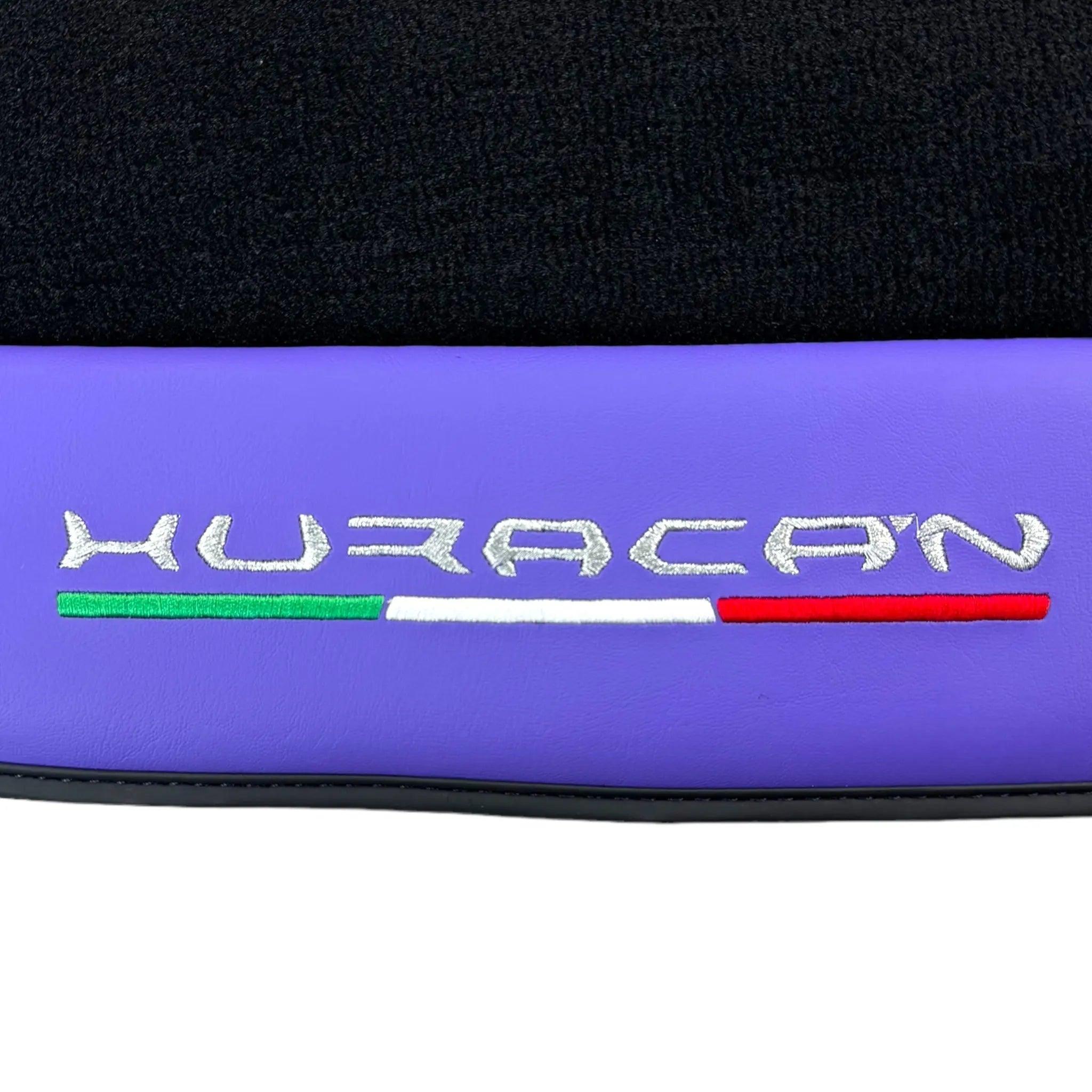 سجادات سيارات جلدية بنفسجية مع حواف سوداء لسيارة لامبورغيني هوراكان
