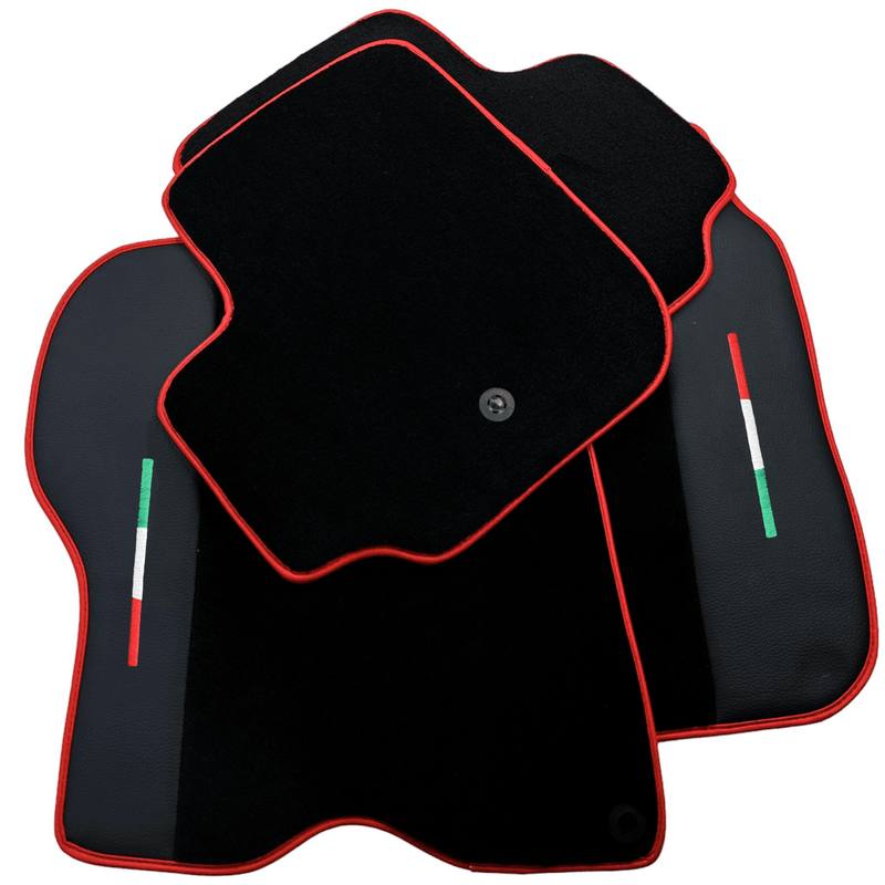 حصائر سيارات سوداء لفيراري GTC4 لوسو (2016-2023) مع جلد وحواف حمراء