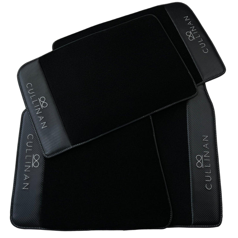 حصائر سيارات سوداء مصنوعة بشكل متقن لرولز رويس كولينان، مصنوعة من جلد ألياف الكربون الفاخر. عزز تجربتك في القيادة وأضف لمسة من الأناقة لمركبتك. توفر هذه الحصائر حماية وأسلوب فائق، تناسب تمامًا التصميم الفاخر لعلامة رولز رويس.