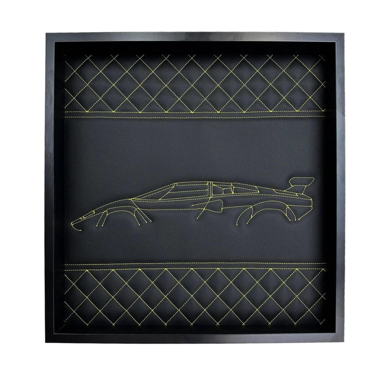 مصنوعة بعناية فائقة مع اهتمام استثنائي بالتفاصيل، تعرض ديكور الجدار لدينا الشكل الأيقوني للامبورغيني كونتاش، مطبوعة ببراعة على جلد أسود ممتاز. تبرز الخياطة الصفراء الجريئة كل منحنى، مما يخلق تحفة بصرية تأسر الأنظار.