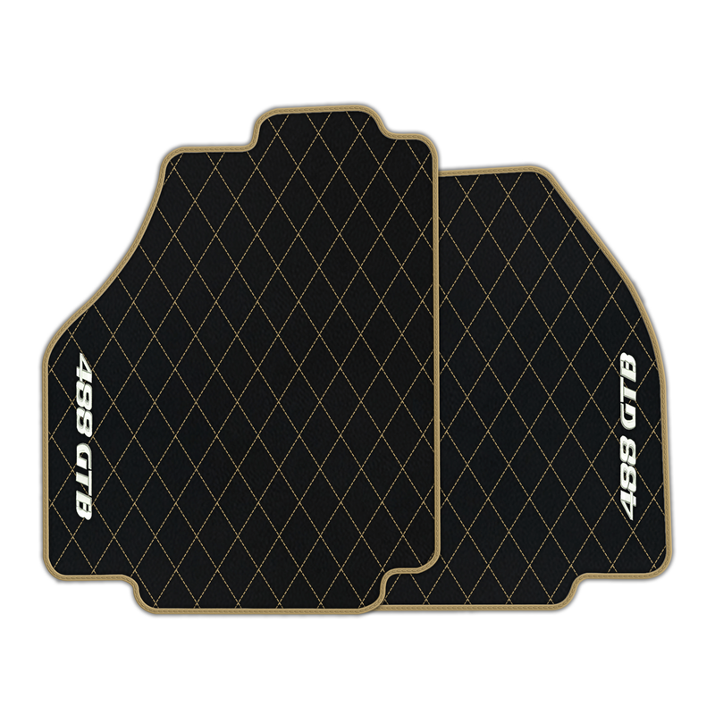 Elevate your Ferrari 488 GTB's interior with these premium black leather floor mats, expertly crafted to fit your 2016-2022 model perfectly. Featuring an elegant diamond pattern and embossed Ferrari logo, these mats combine luxury with practicality. The high-quality leather construction protects your vehicle's original flooring while adding a touch of sophistication to your driving experience. Available as a complete set to ensure seamless coverage throughout your cabin. Transform your 488 GTB's aesthetic with automotive elegance that matches the caliber of your prized machine.