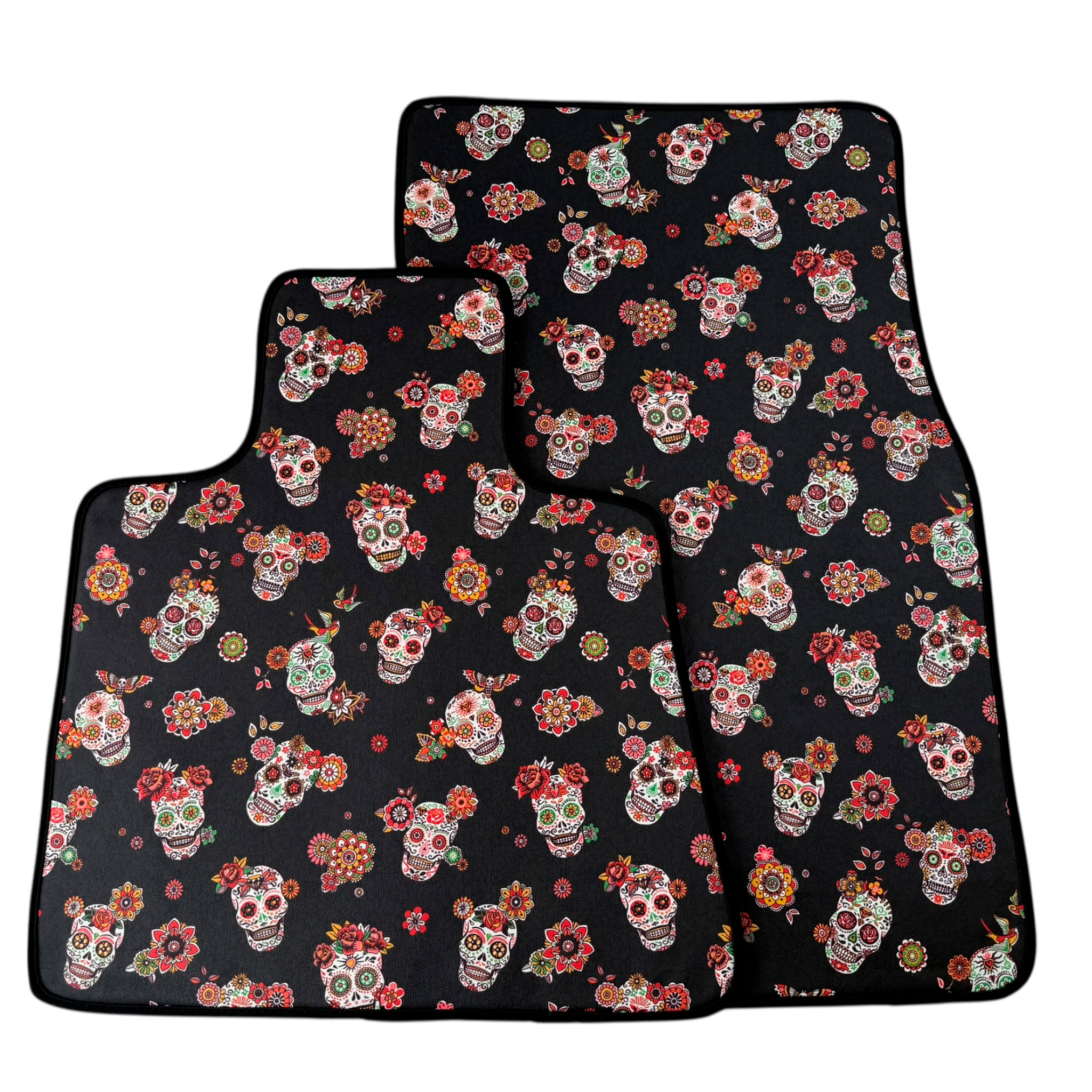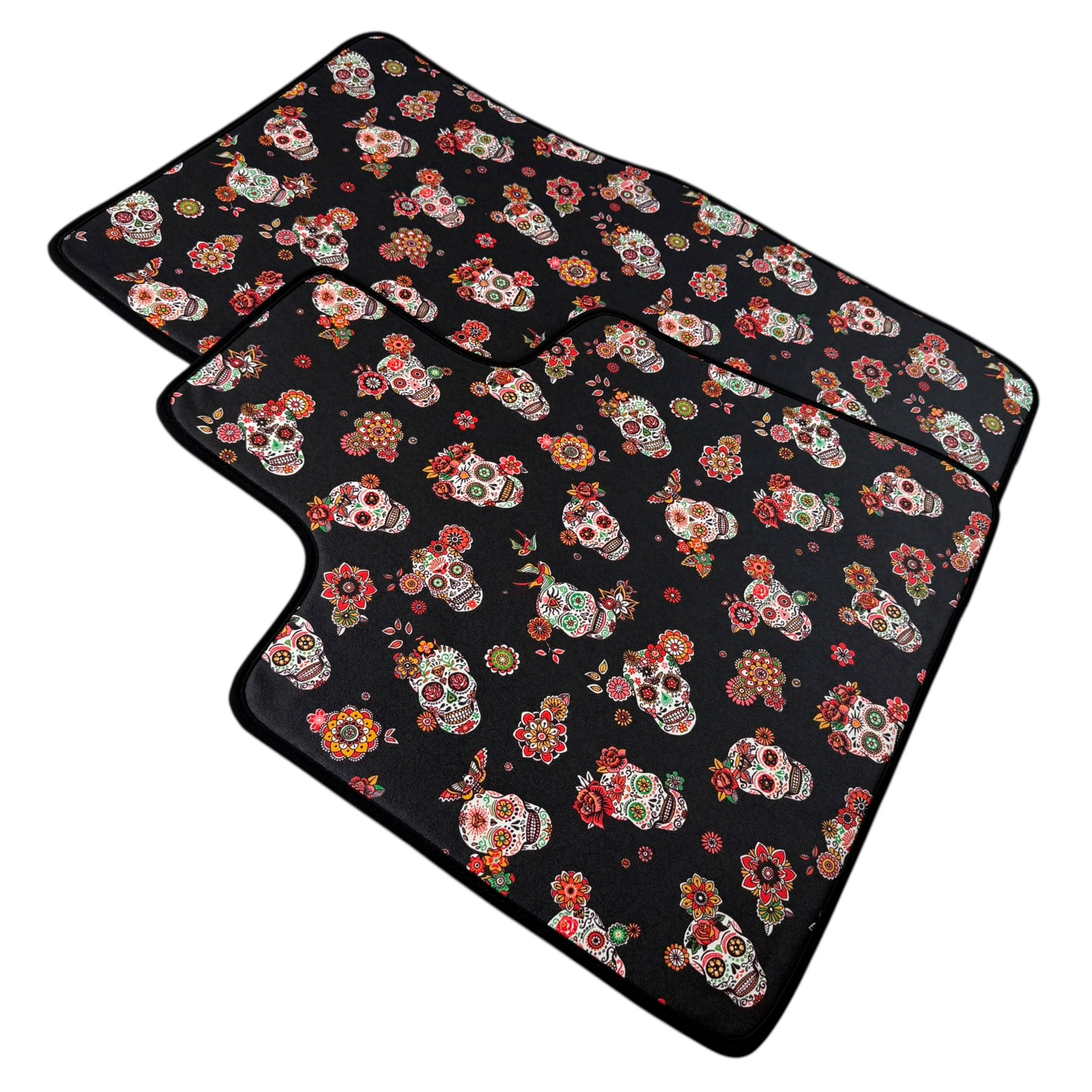 Black Floral Skull Design Car Floor Mats for Rolls-Royce Cullinan (2018-2025)