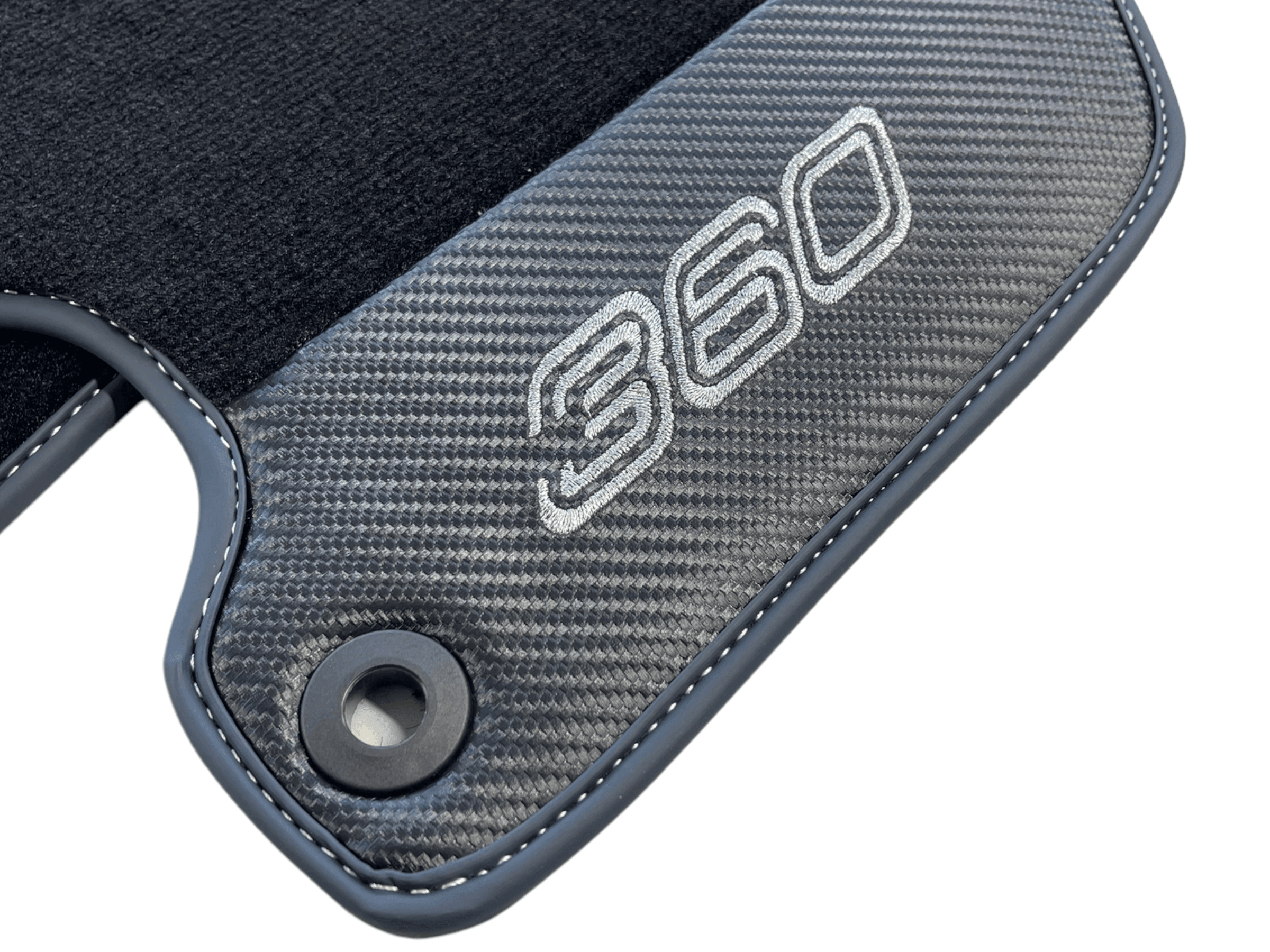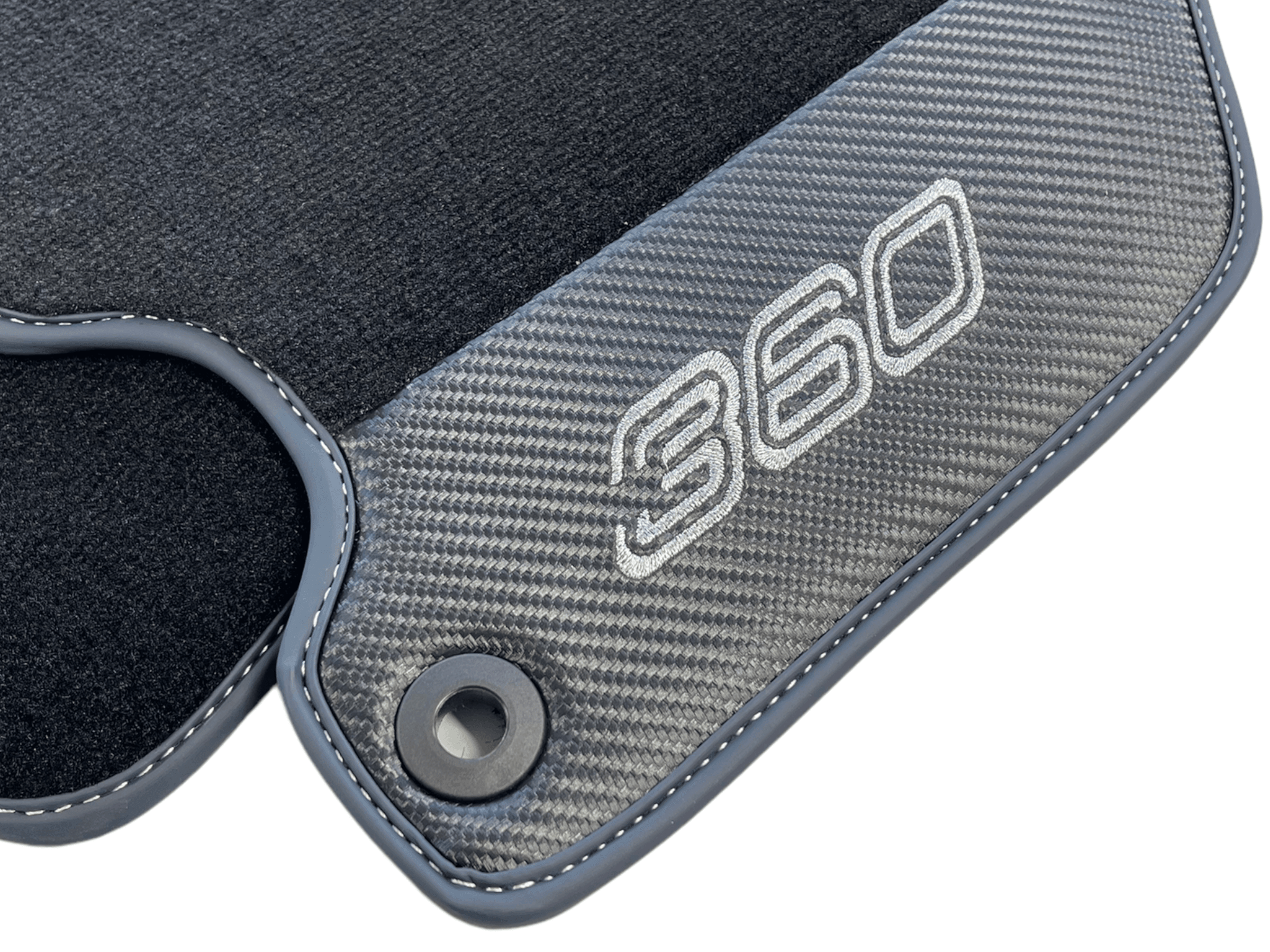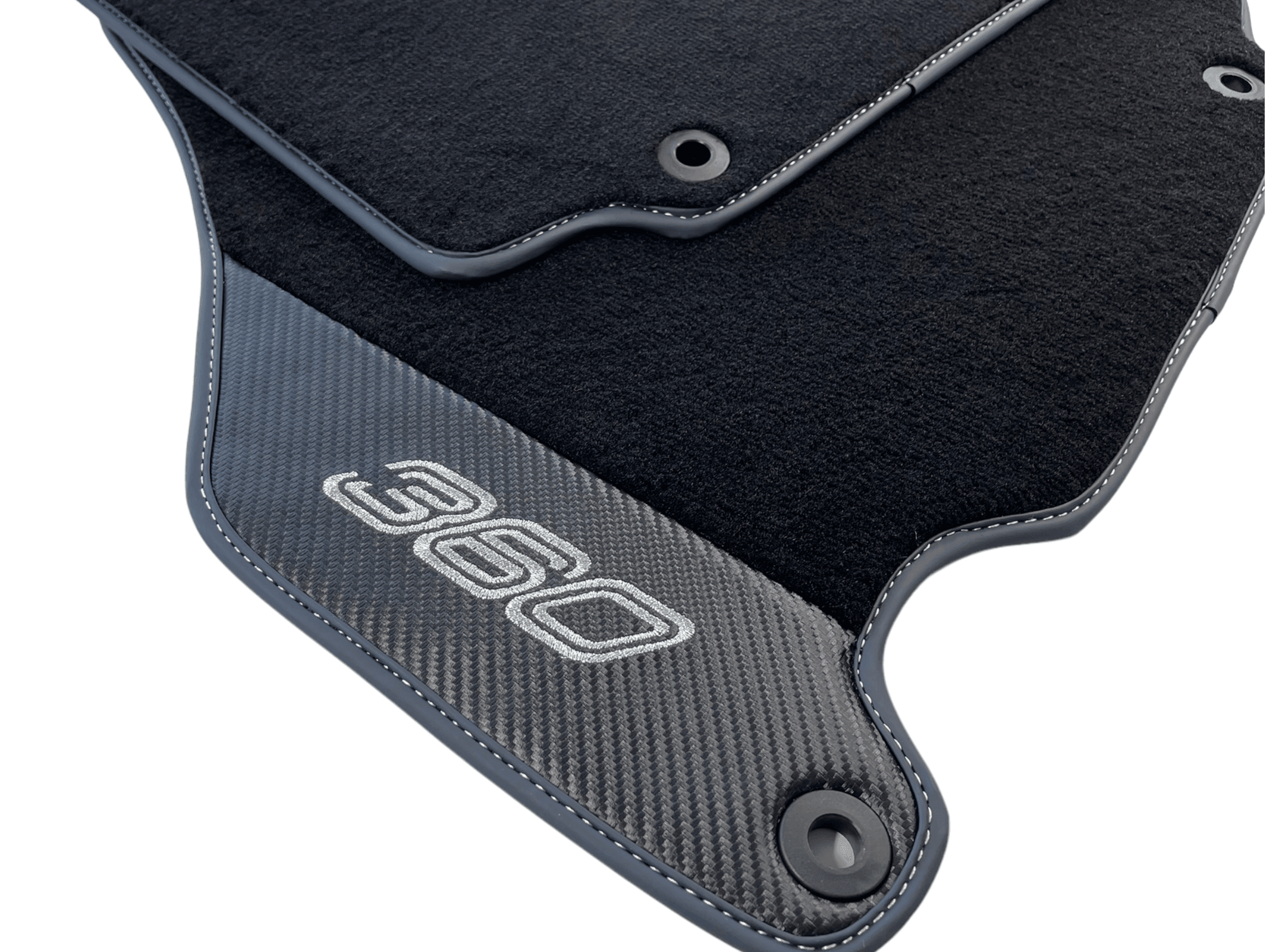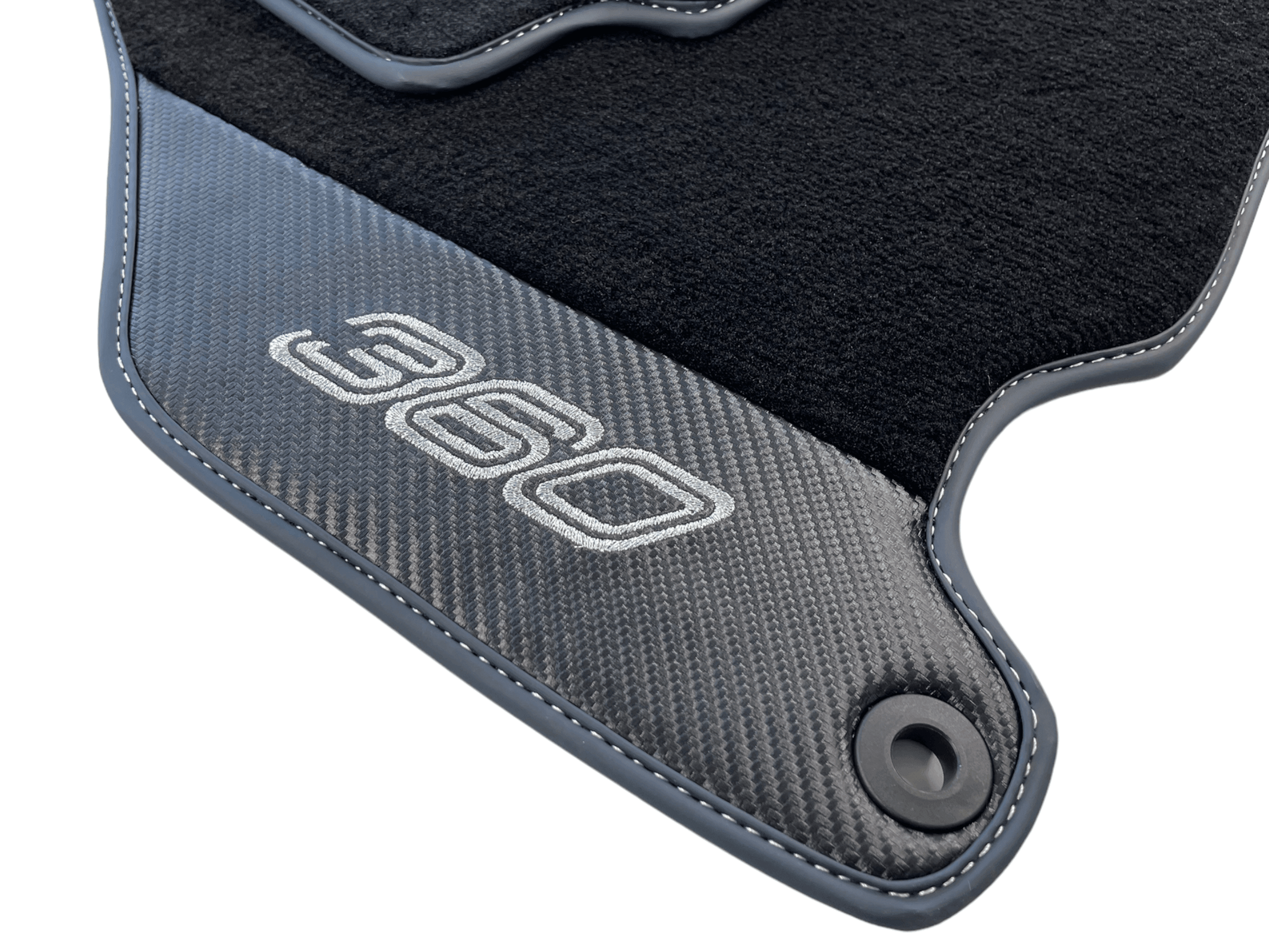 سجاد السيارة لفيراري 360 مودينا 1999-2005 باللون الأسود مع جلد ألياف الكربون