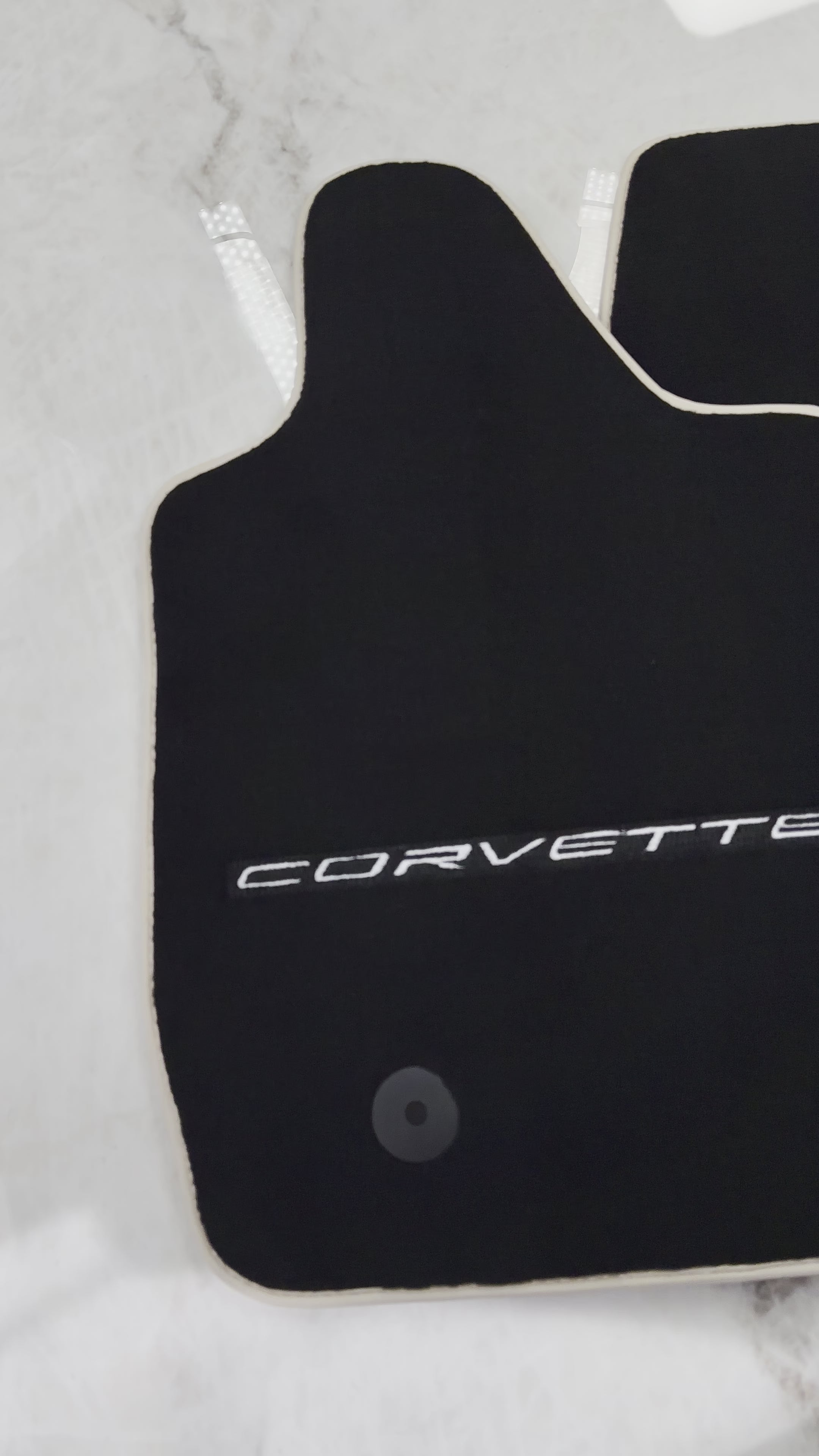 سجاد سيارات سوداء لسيارة شيفروليه كورفيت C7 القابلة للتحويل (2014-2019) مع حواف بيج
