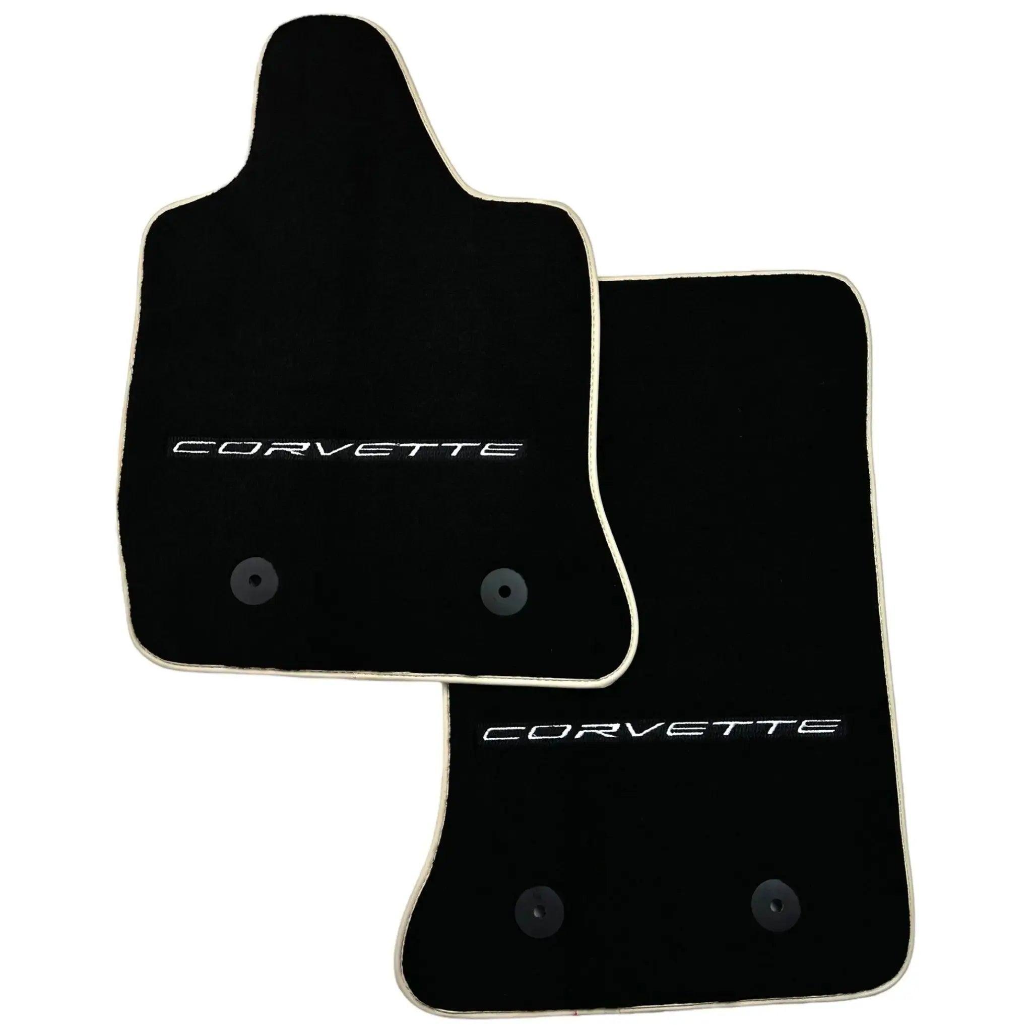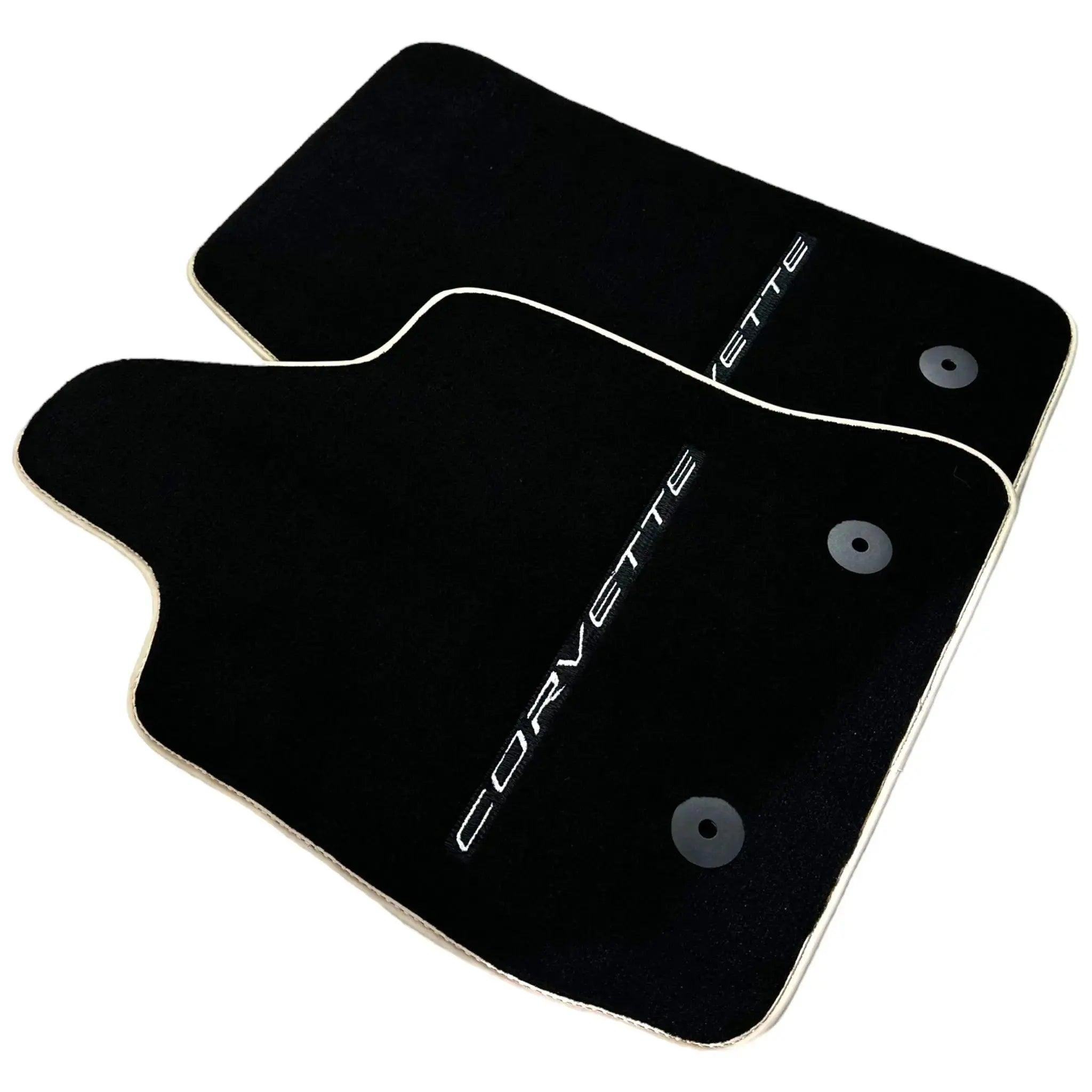 حصائر سيارات سوداء لسيارة شيفروليه كورفيت C7 تارجا توب (2014-2019) مع حواف بيج