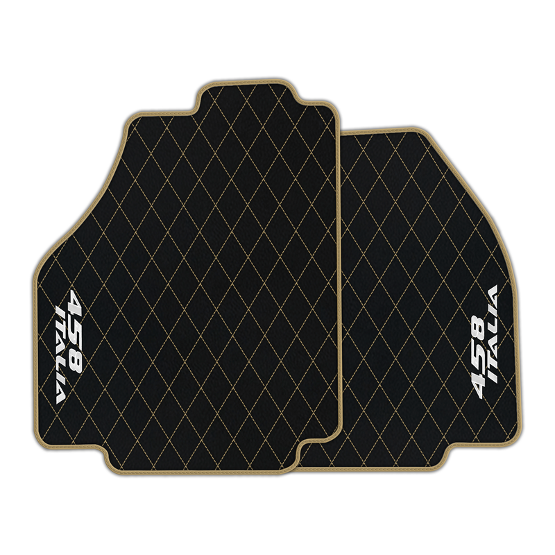 Black Leather Floor Mats for Ferrari 458 Italia (2009-2015) with Single Diamond Pattern | Full Set Option