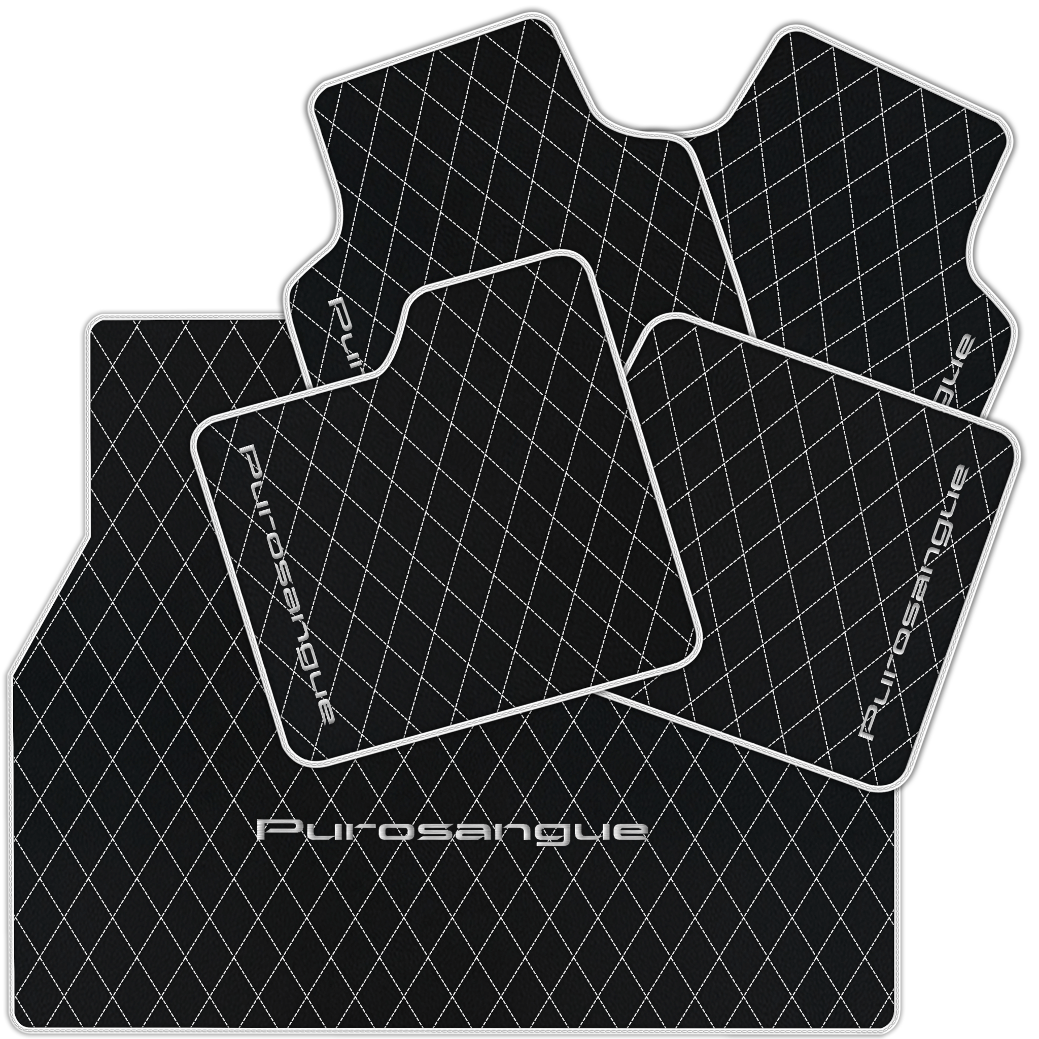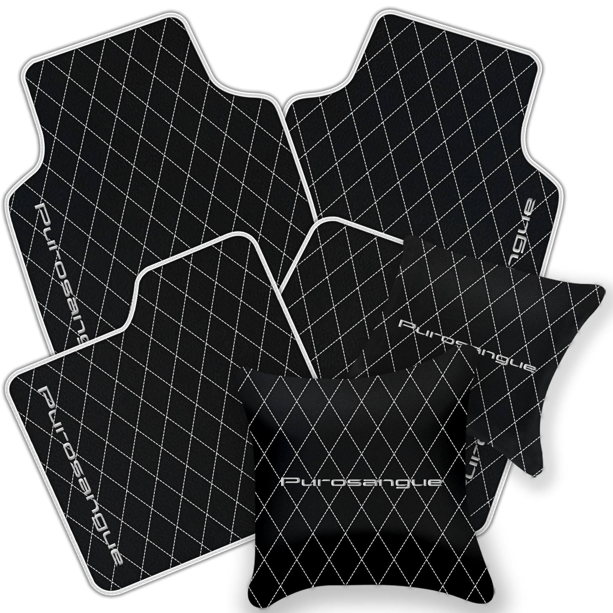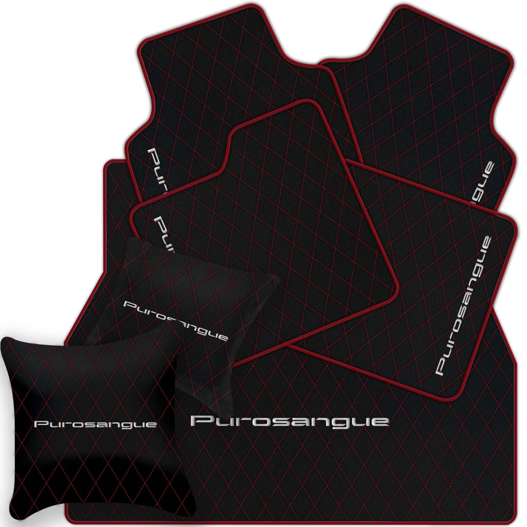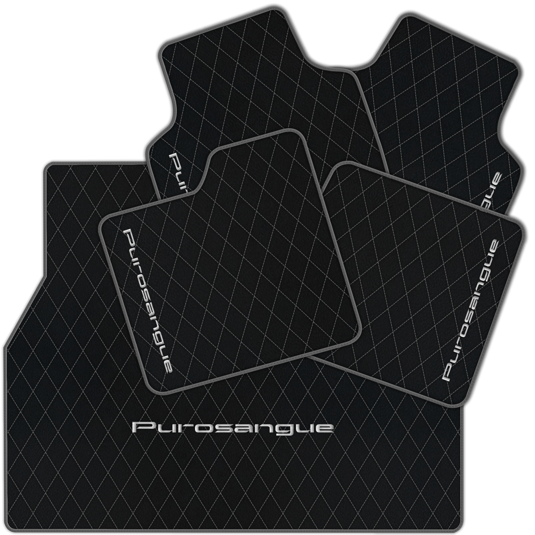 Upgrade your Ferrari Purosangue interior with premium leather floor mats. Choose from multiple design patterns and custom stitching to match your style.