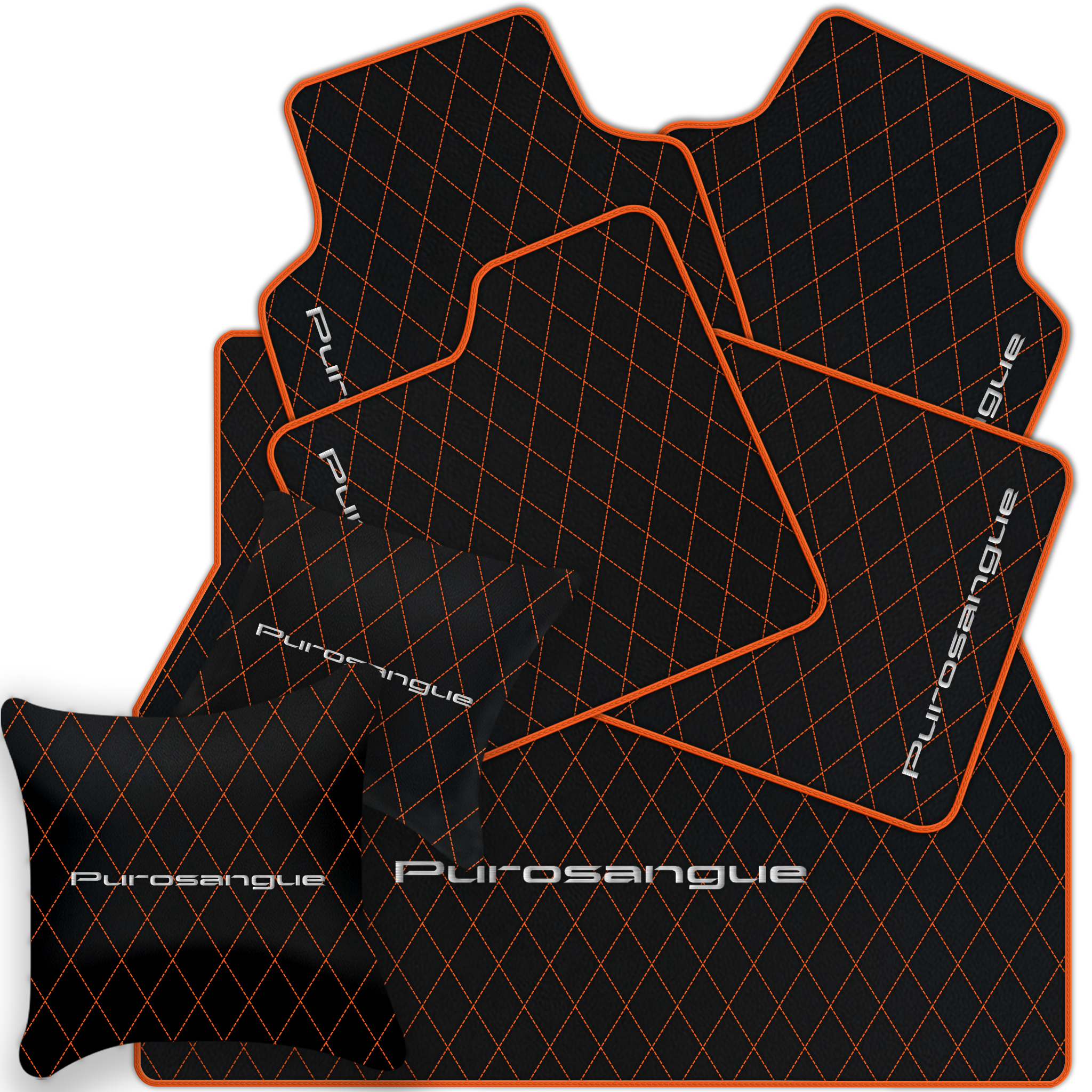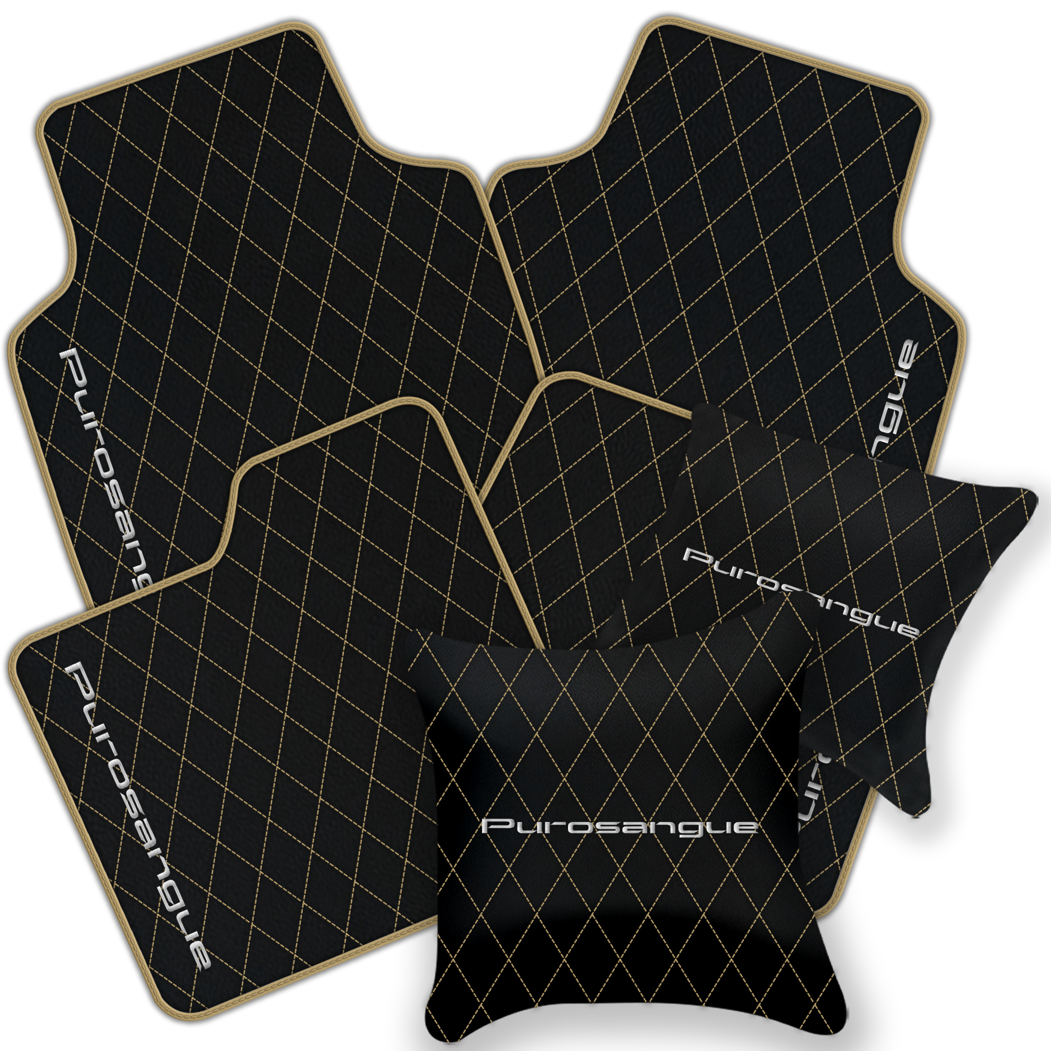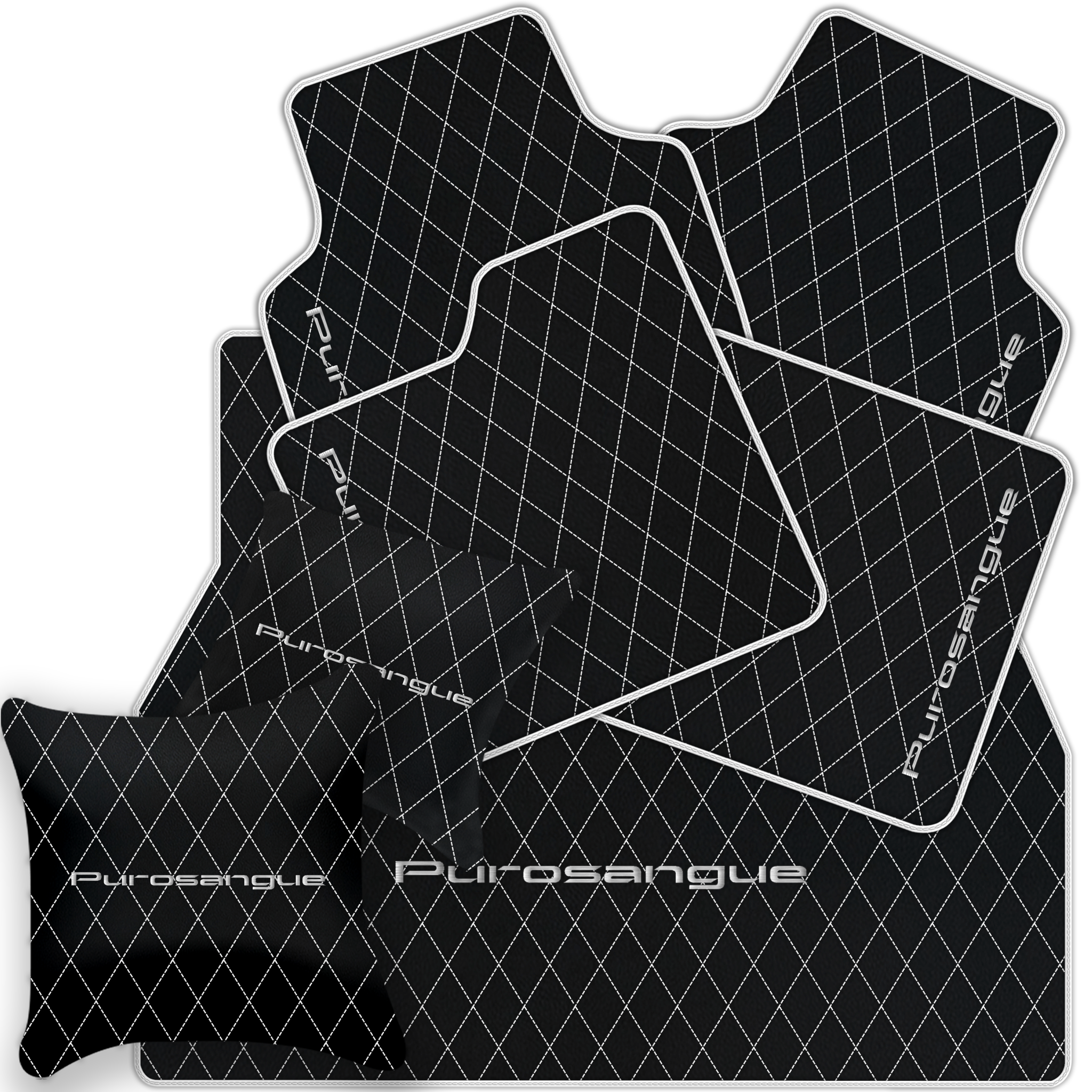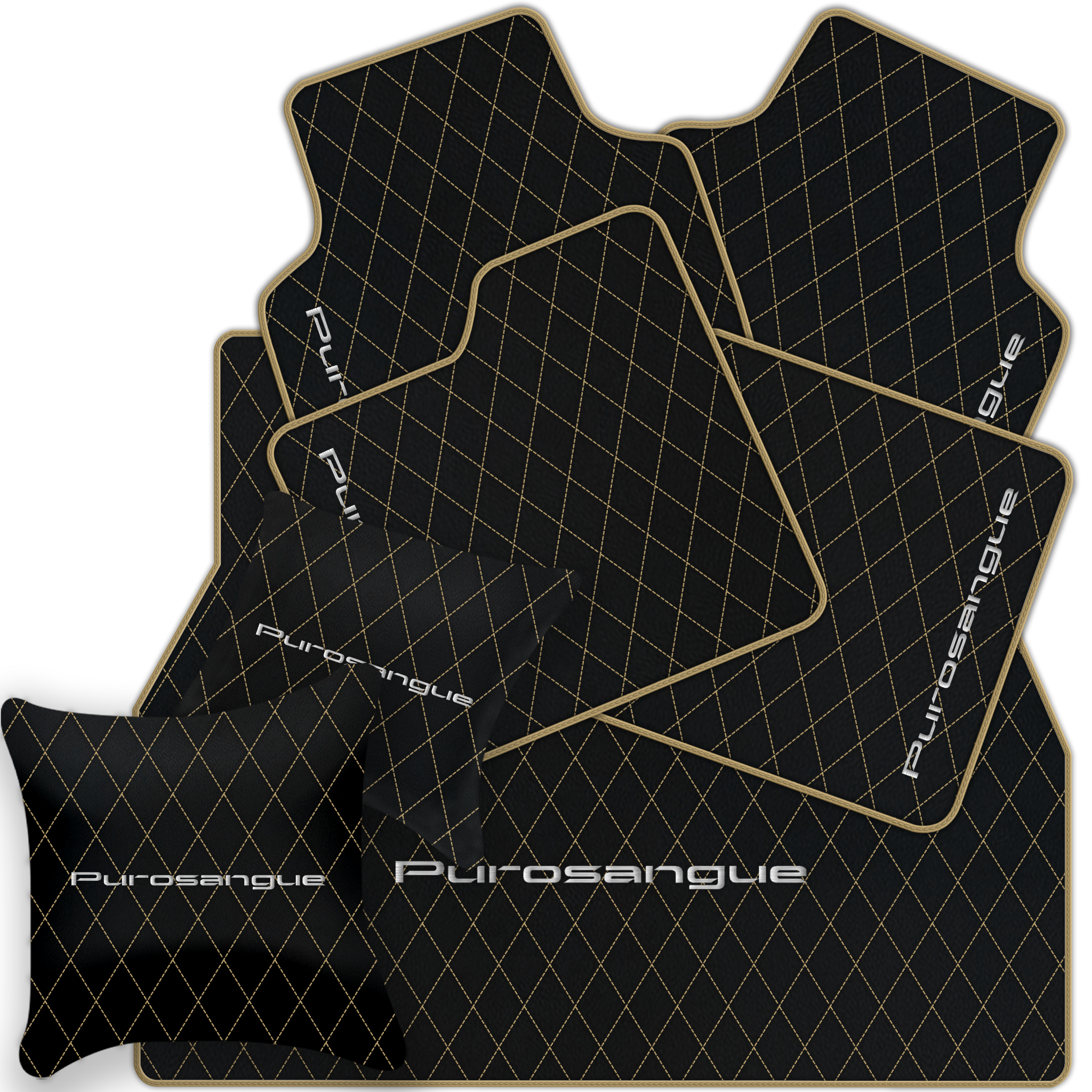 Upgrade your Ferrari Purosangue interior with premium leather floor mats. Choose from multiple design patterns and custom stitching to match your style.