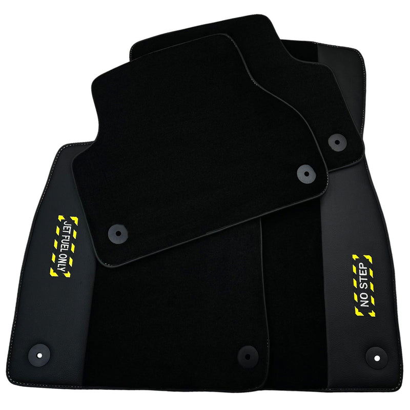 Black Floor Mats with Leather for Audi A4 - B9 Sedan (2019-2023) - Fighter Jet Edition