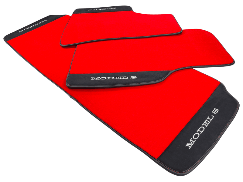 Enhance the interior of your Tesla Model S with our luxurious red floor mats made from premium alcantara leather. These floor mats offer both style and function, providing superior protection against dirt and spills. Enjoy a touch of elegance and a clean, well-maintained car with our red floor mats.
