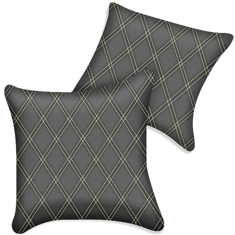 Customizable Gray Leather Pillows Set of 2 for All Vehicles | Double Diamond Pattern