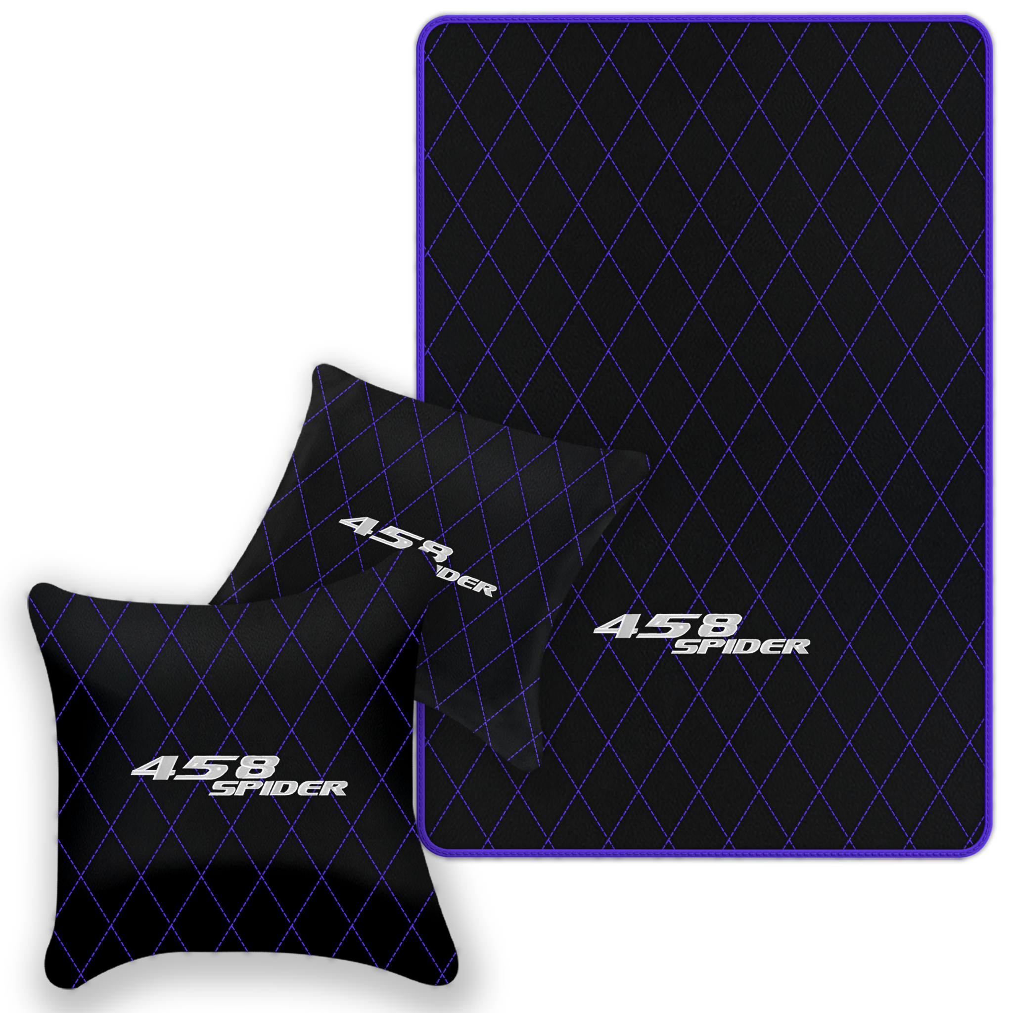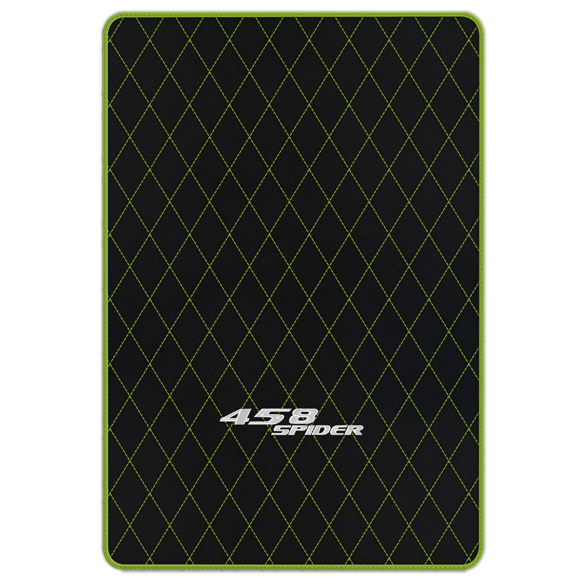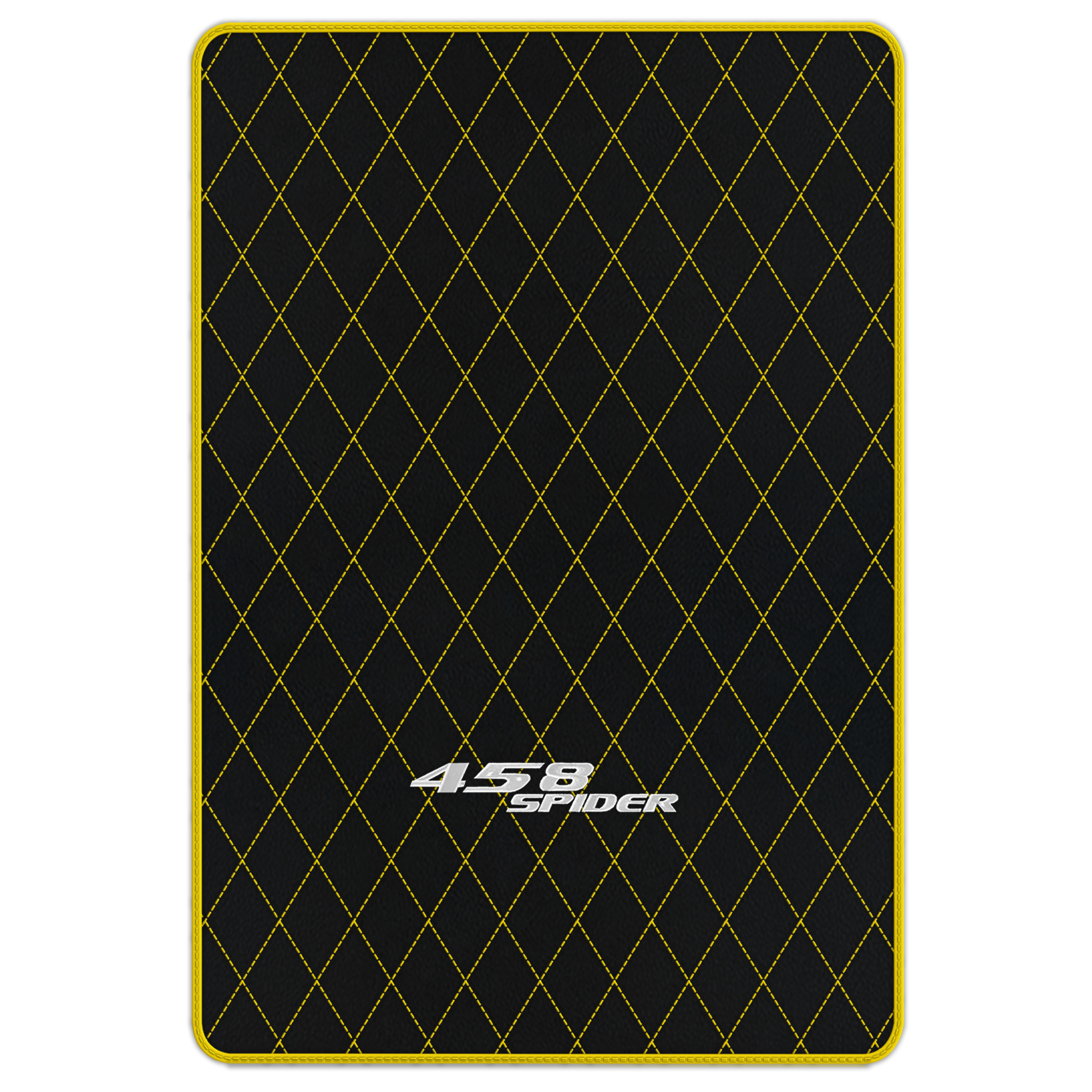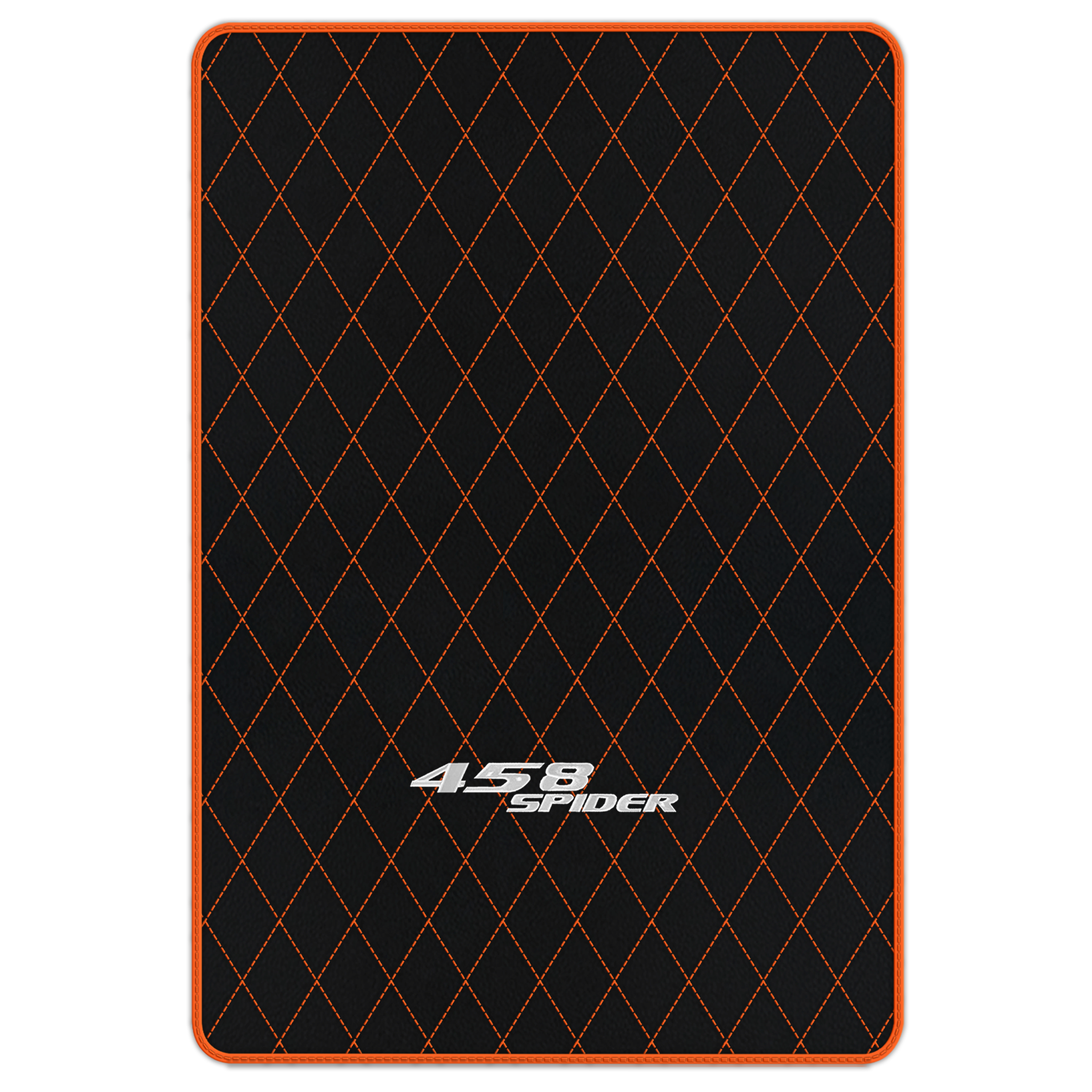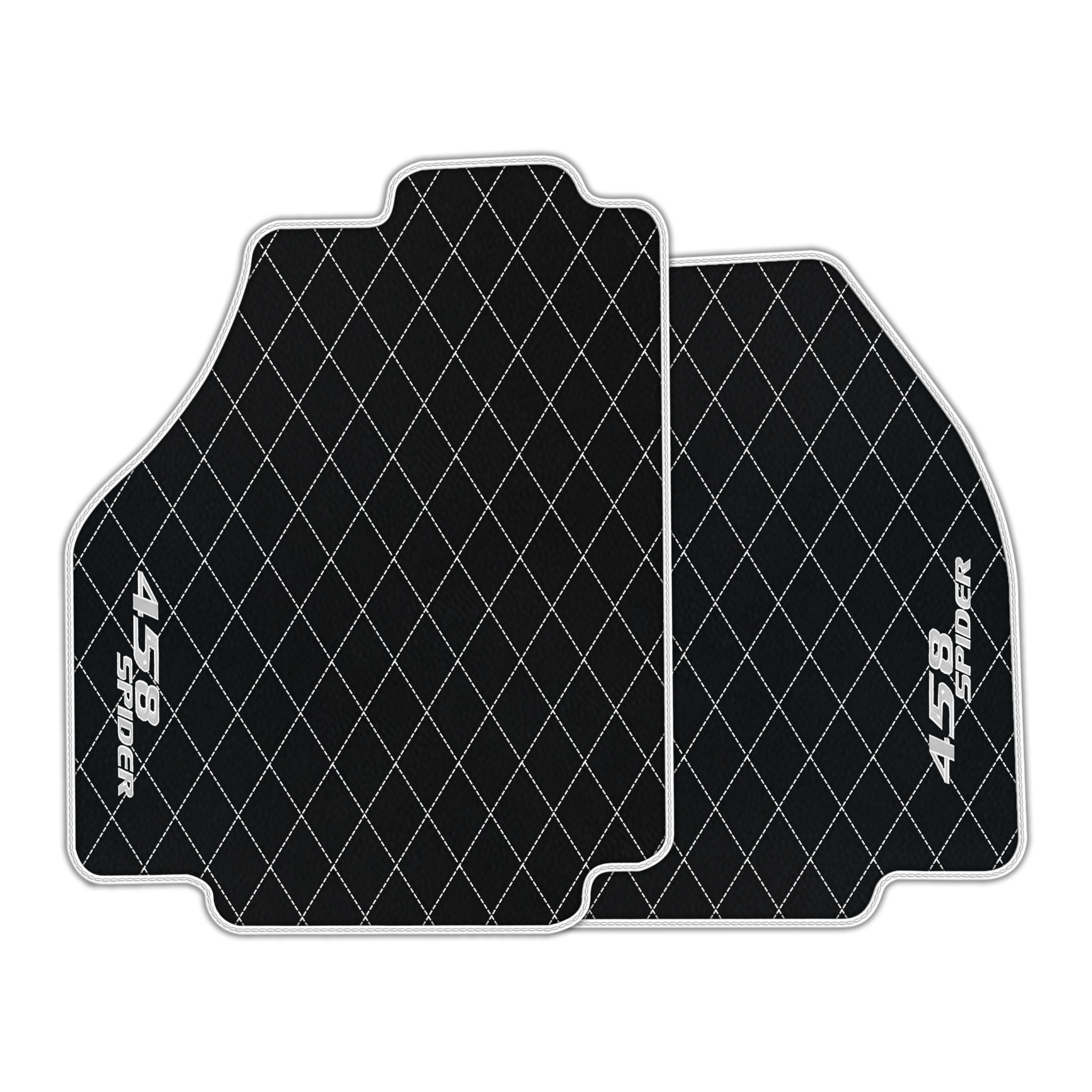 Upgrade your Ferrari 458 Spider interior with premium leather floor mats. Choose from multiple design patterns and custom stitching to match your style.