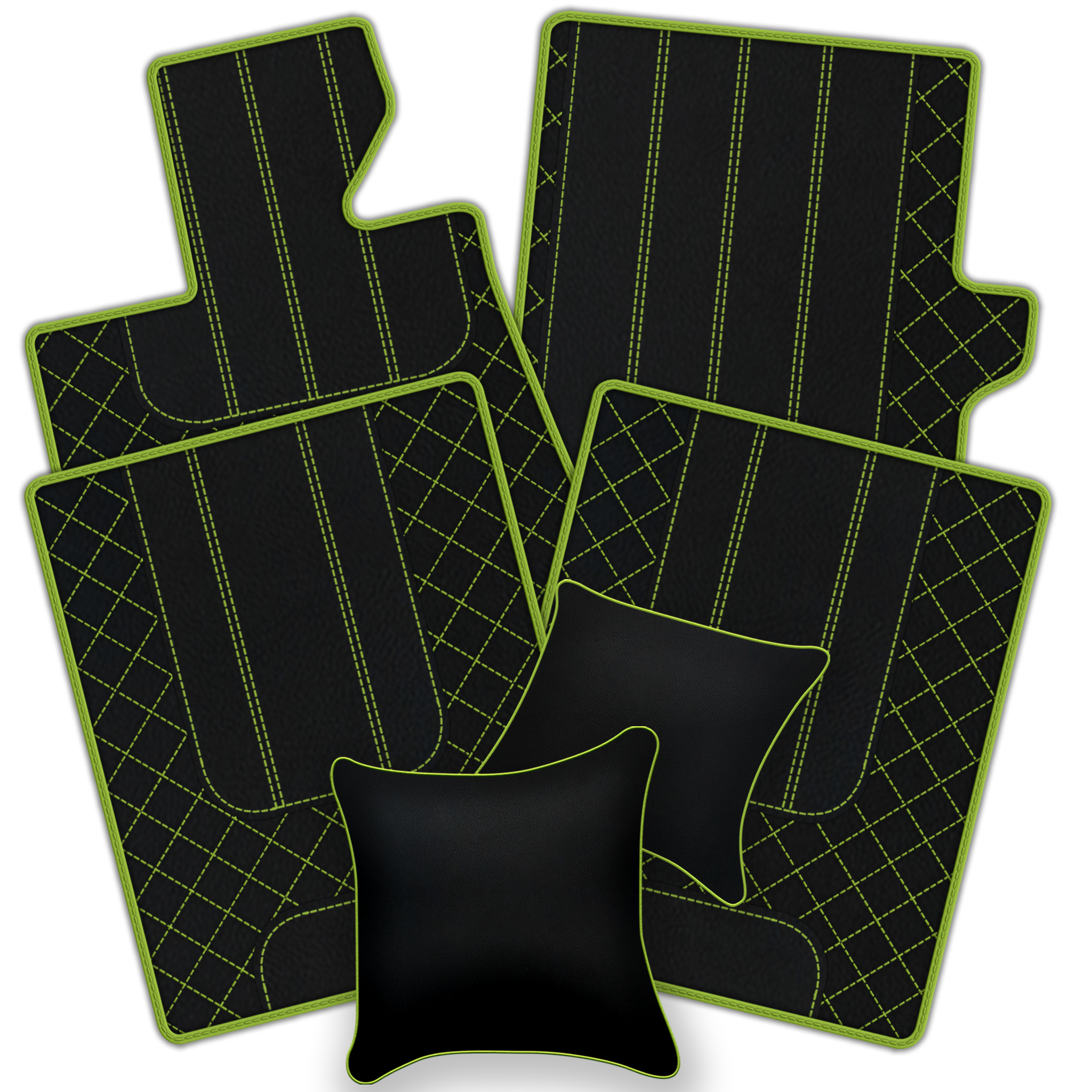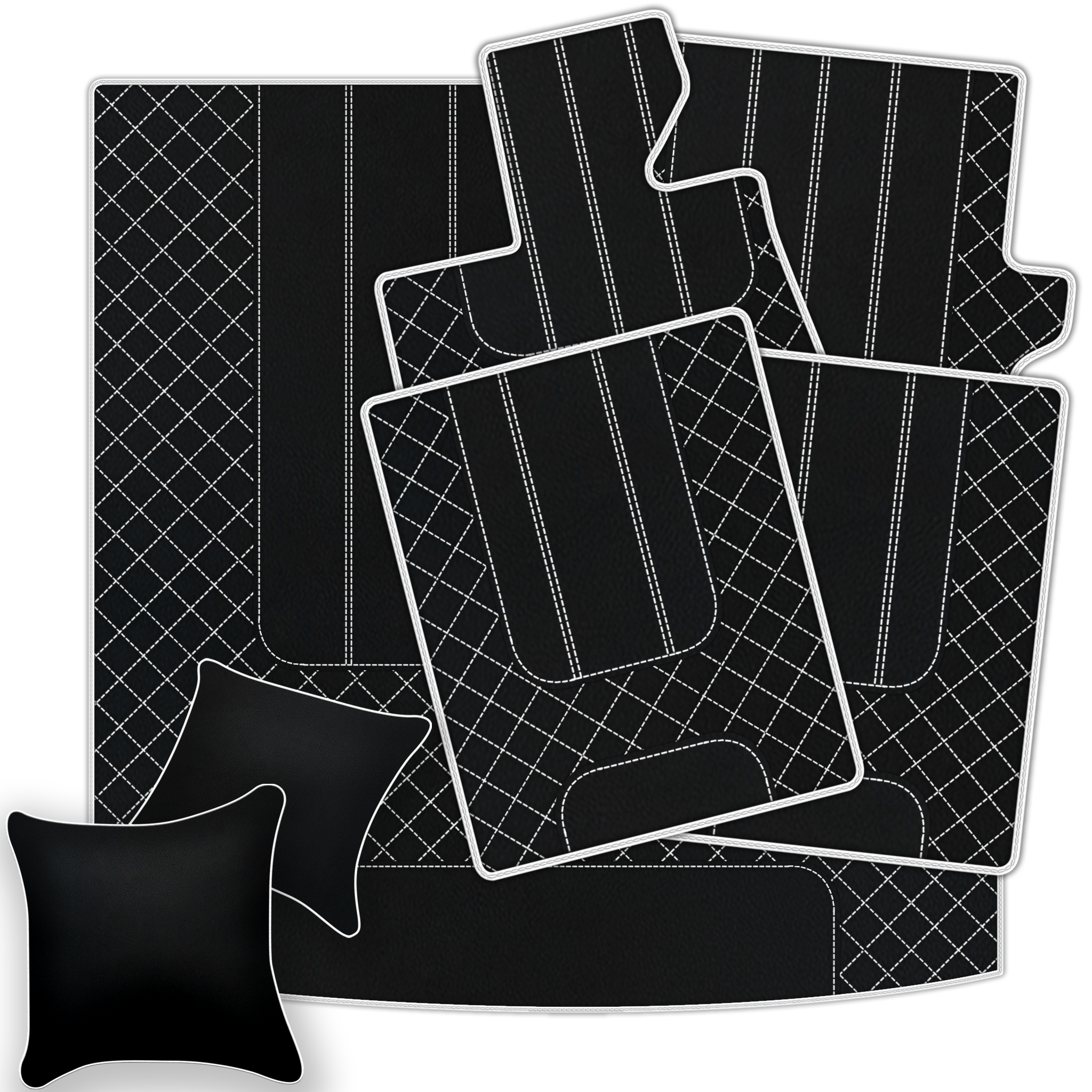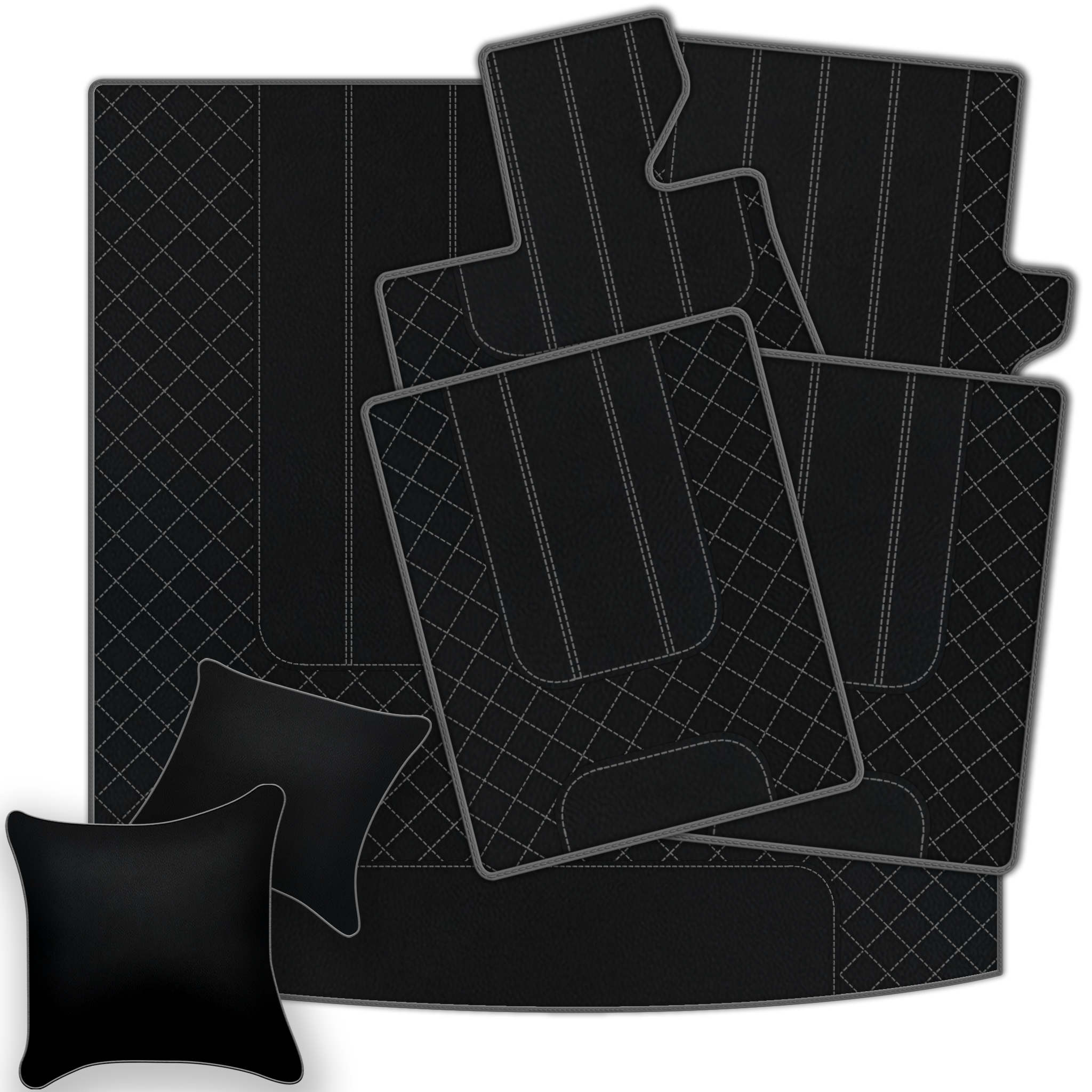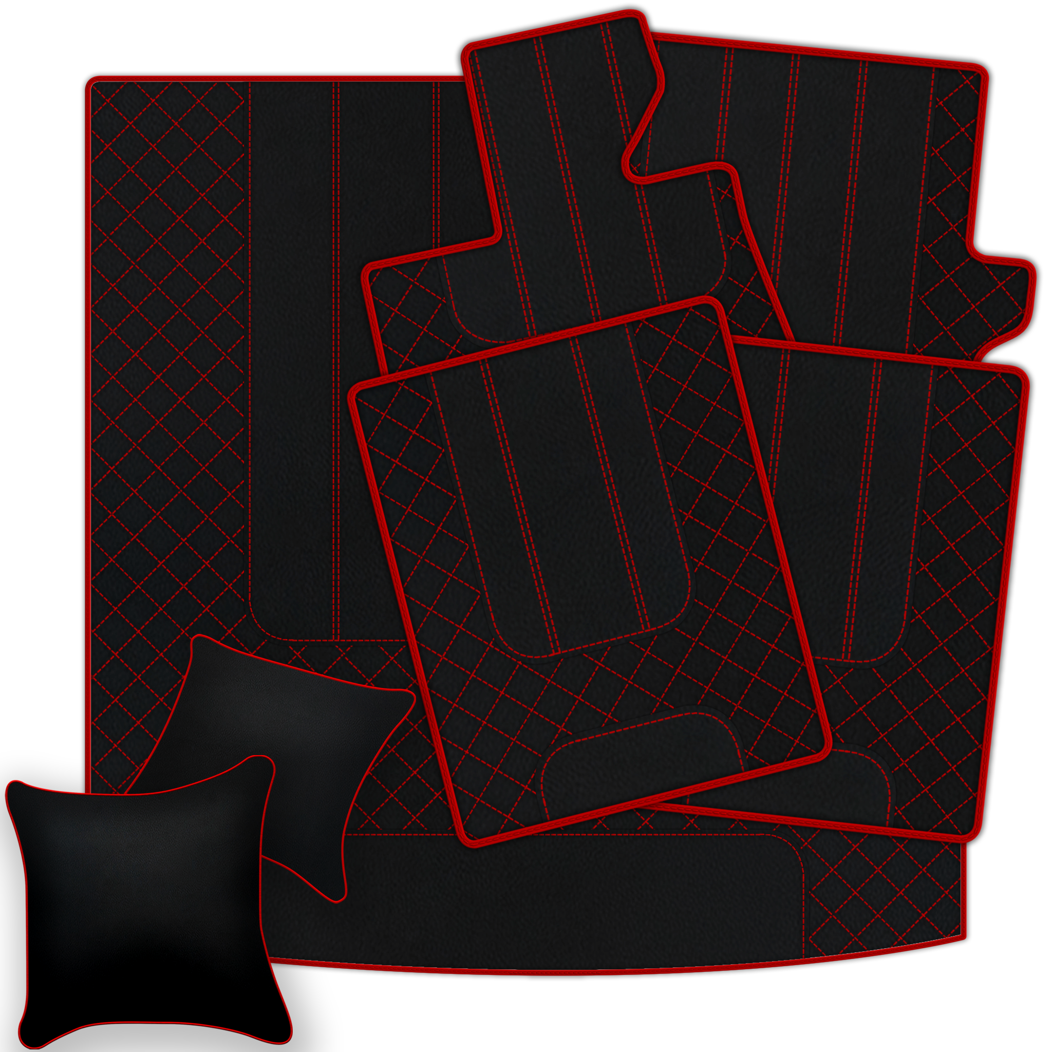 Upgrade your Ferrari California T interior with premium leather floor mats. Choose from multiple design patterns and custom stitching to match your style.