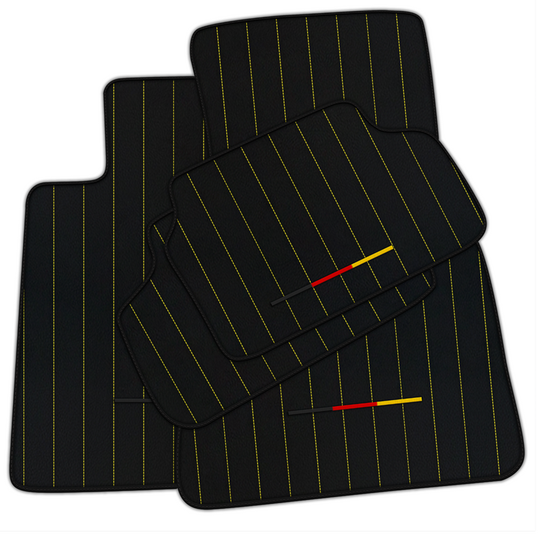 Elevate your BMW with our Black Leather Floor Mats. Featuring a sleek yellow stitching line pattern and iconic German flag design, these mats are both practical and stylish. Made with high-quality leather, they offer durability and protection while adding a touch of sophistication to your vehicle.