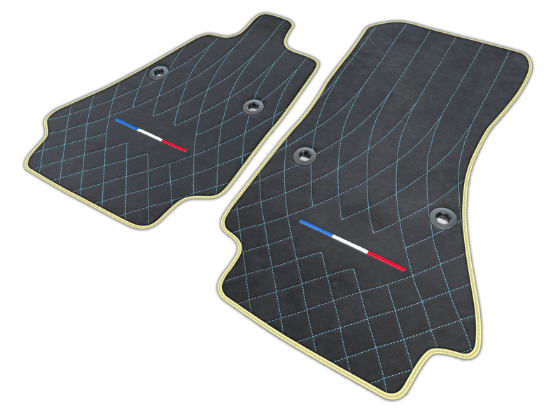 Alcantara Leather Black Floor Mats for Bugatti Chiron with FR Flag | Various Trim Colors
