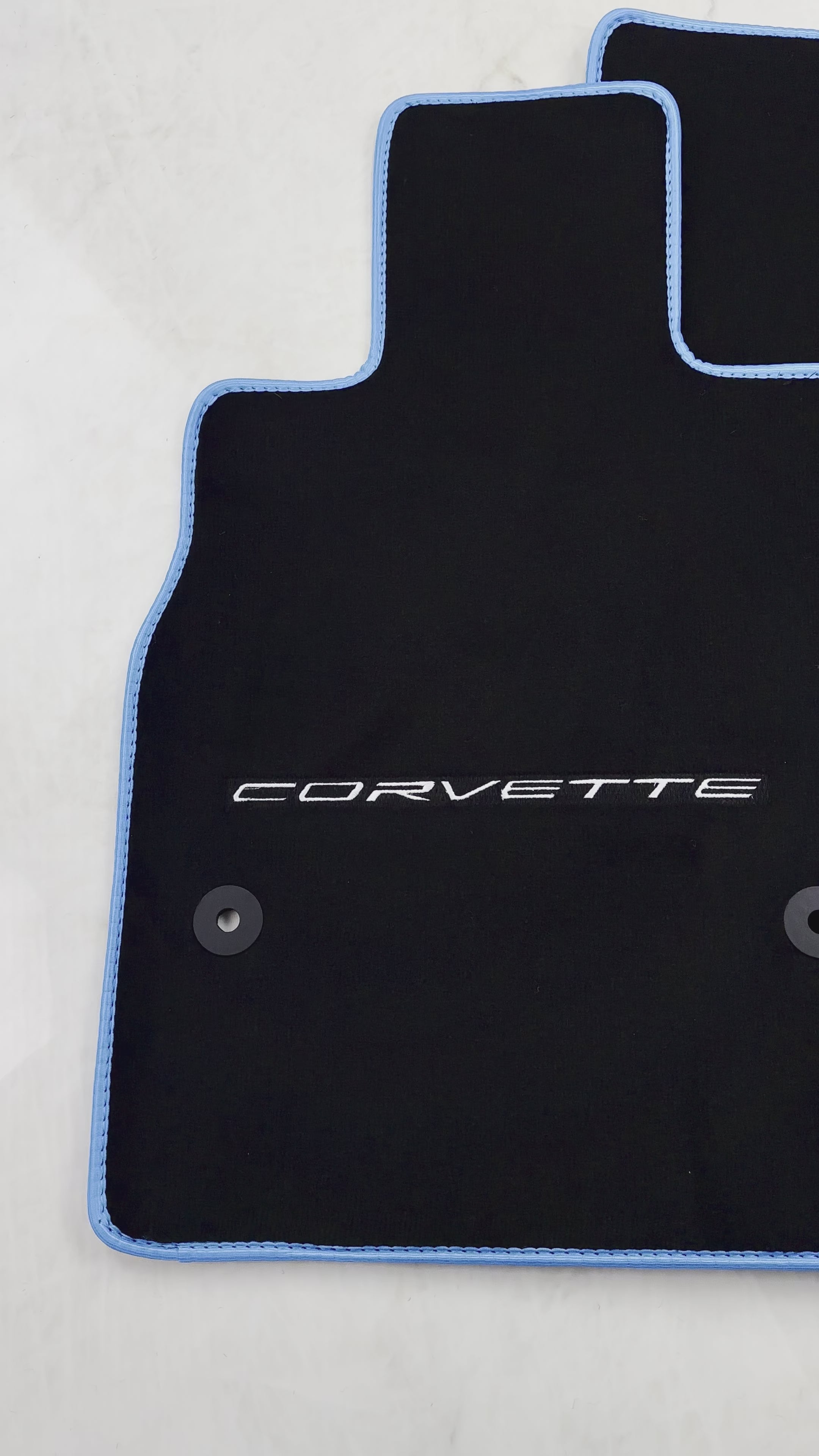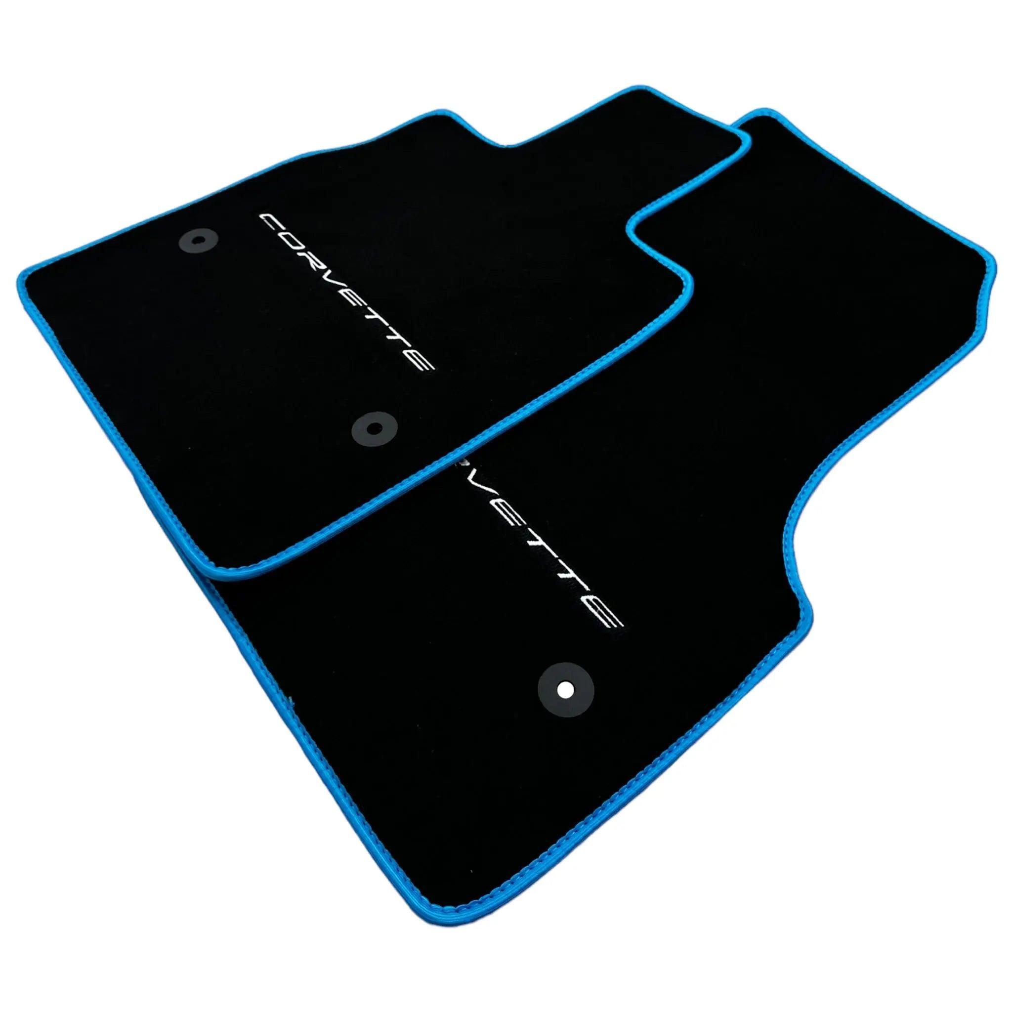 Black Floor Mats For Chevrolet Corvette C8 (2020-2024) with Blue Trim
