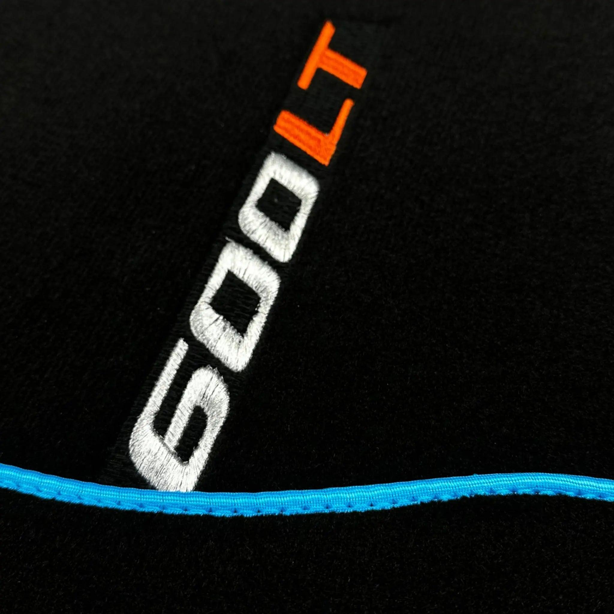 Black Floor Mats for McLaren 600 LT (2018-2020) With Blue Trim