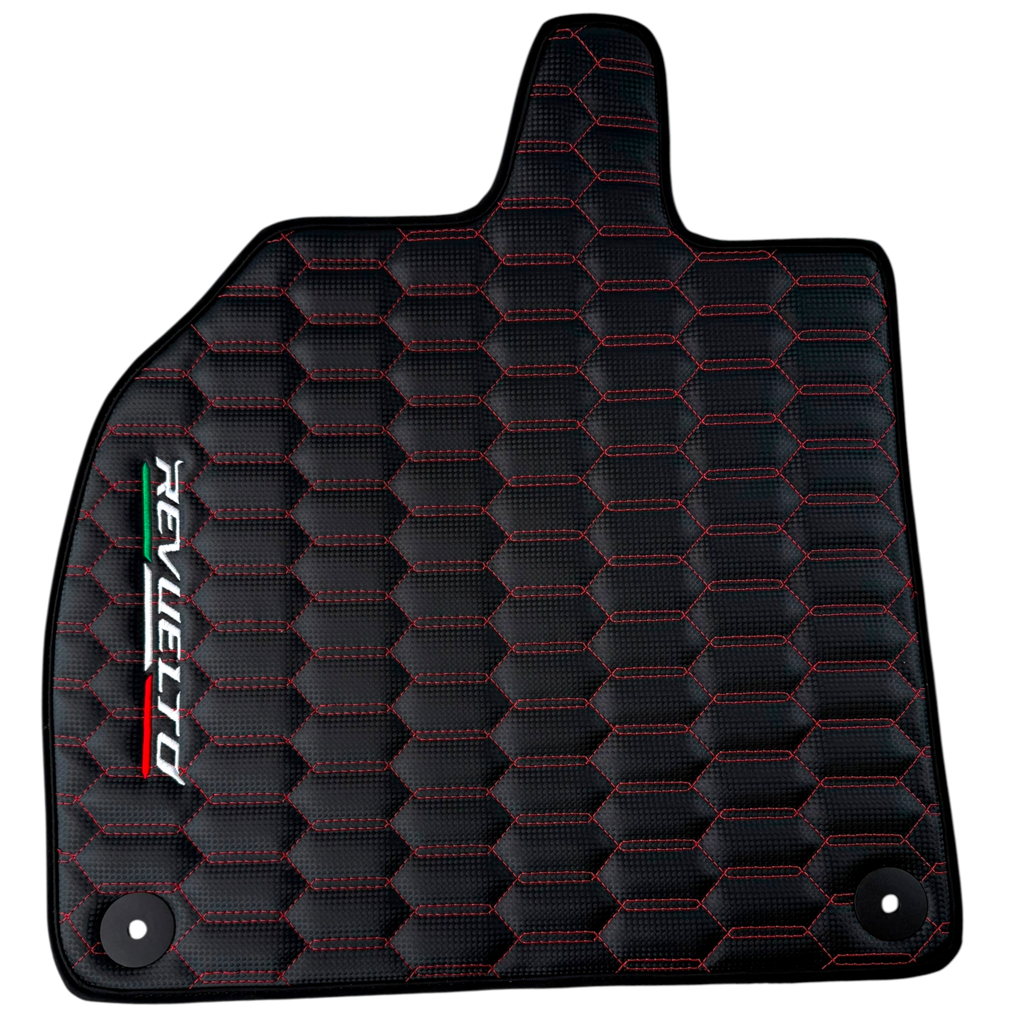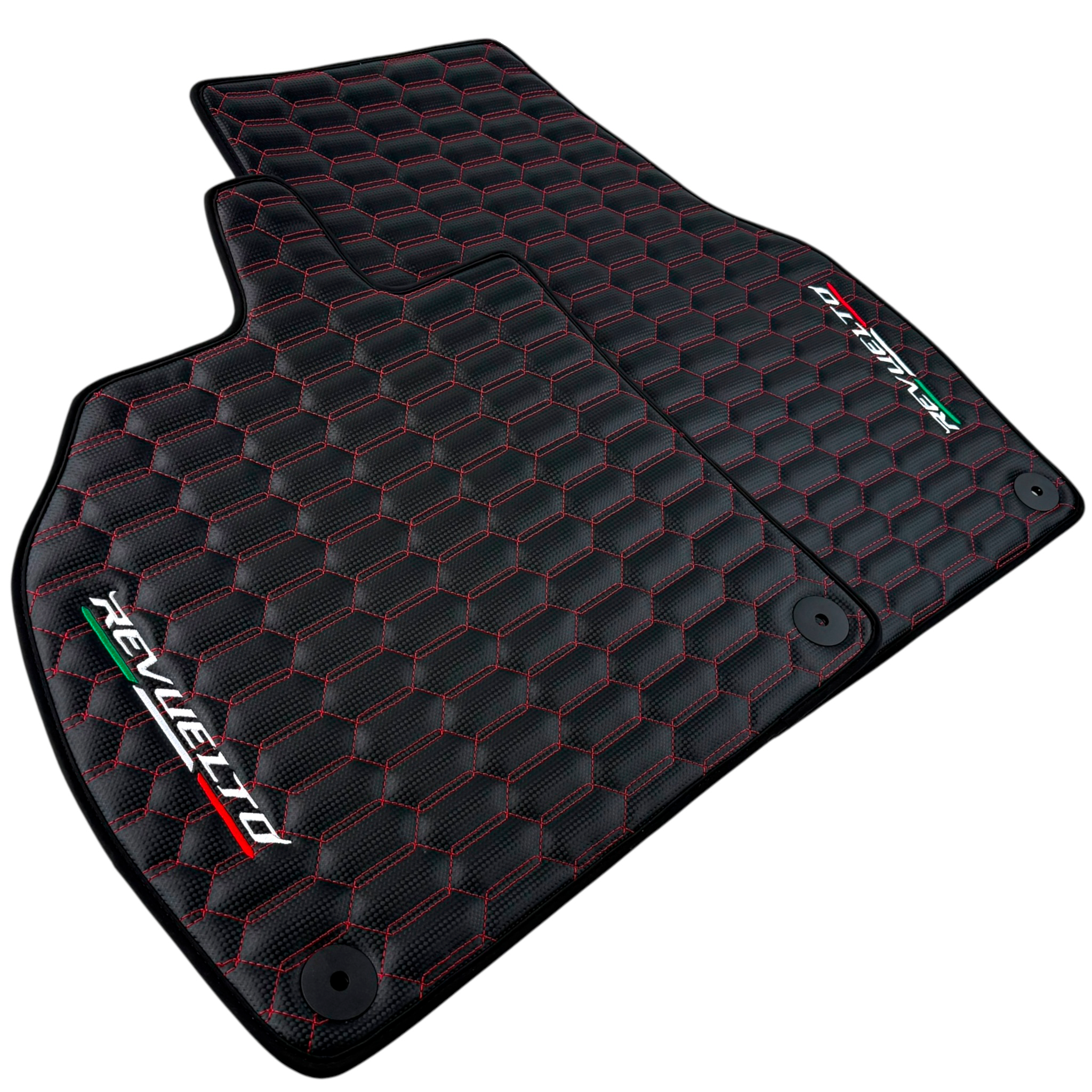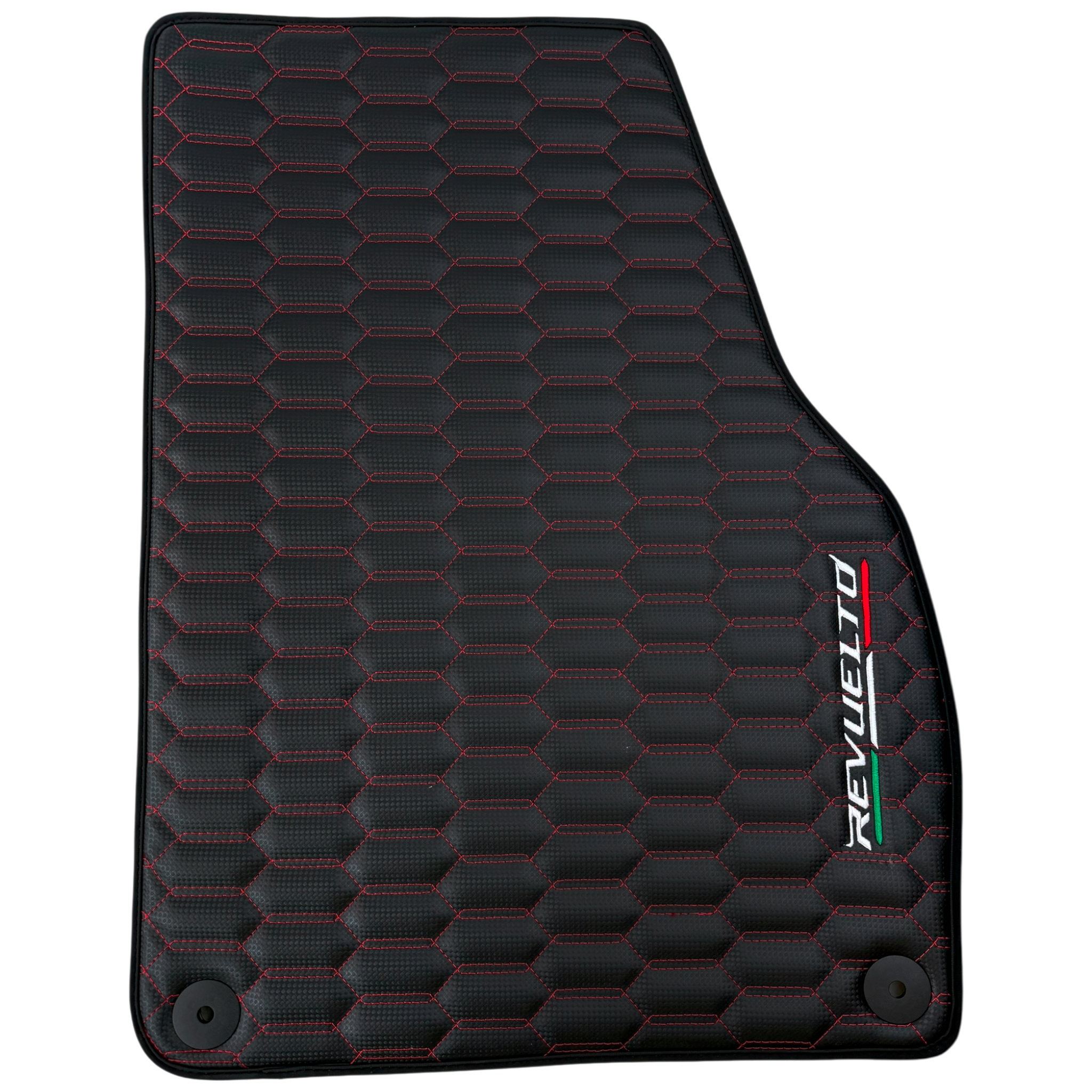 Enhance your Lamborghini Revuelto (2024-2025) interior with these black carbon fiber floor mats featuring striking red stitching. Designed for a perfect fit, they offer durable protection against dirt and wear while adding a sporty, refined touch. Easy to clean and maintain, these mats help keep your vehicle’s interior looking pristine and stylish.