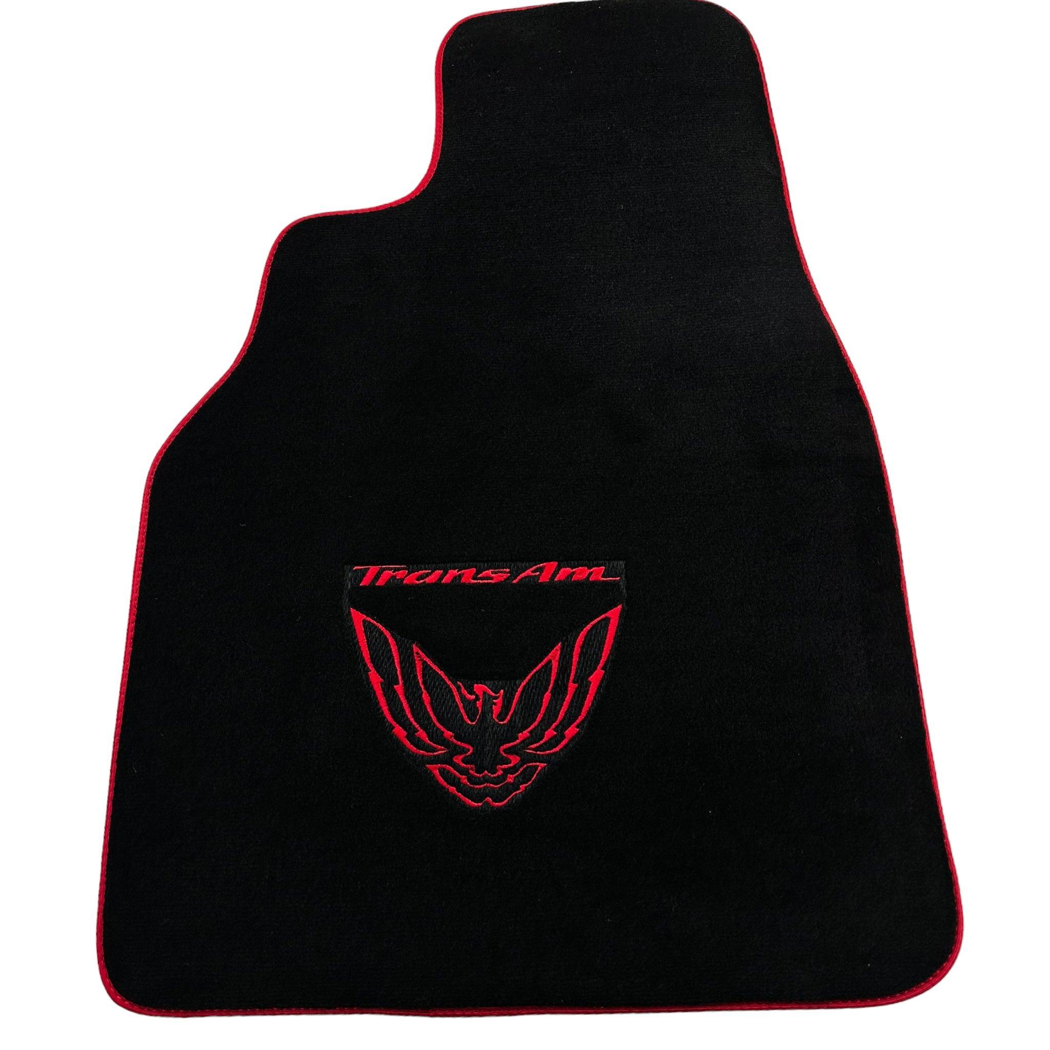 Bring your Pontiac Firebird to life with these officially licensed TransAm Logo floor mats. Crafted to perfection for 1970-1981 models, these stylish black mats feature a unique red trim design. Keep your classic car looking sleek and stylish.