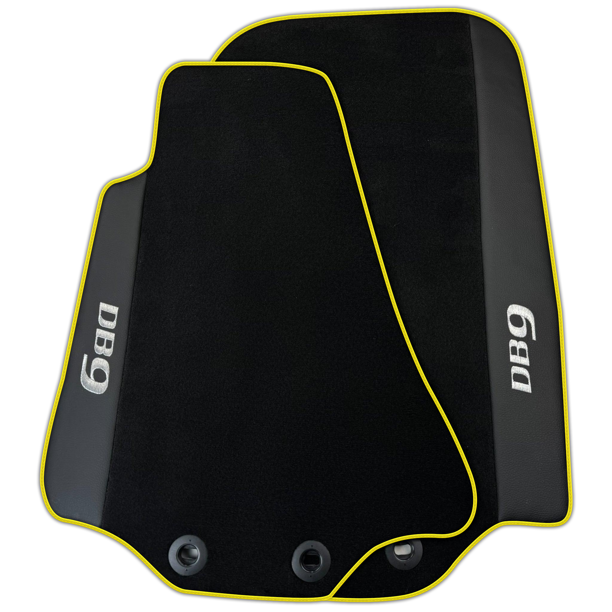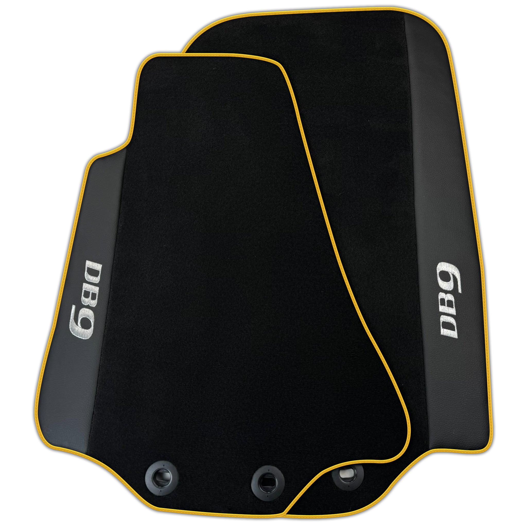 Expertly crafted for your Aston Martin DB9 (2004-2016), these black floor mats with leather trim provide both protection and style. With a perfect fit and premium material, they offer a luxurious touch to your car's interior. Upgrade your driving experience today with these high-quality floor mats with various trim colors.