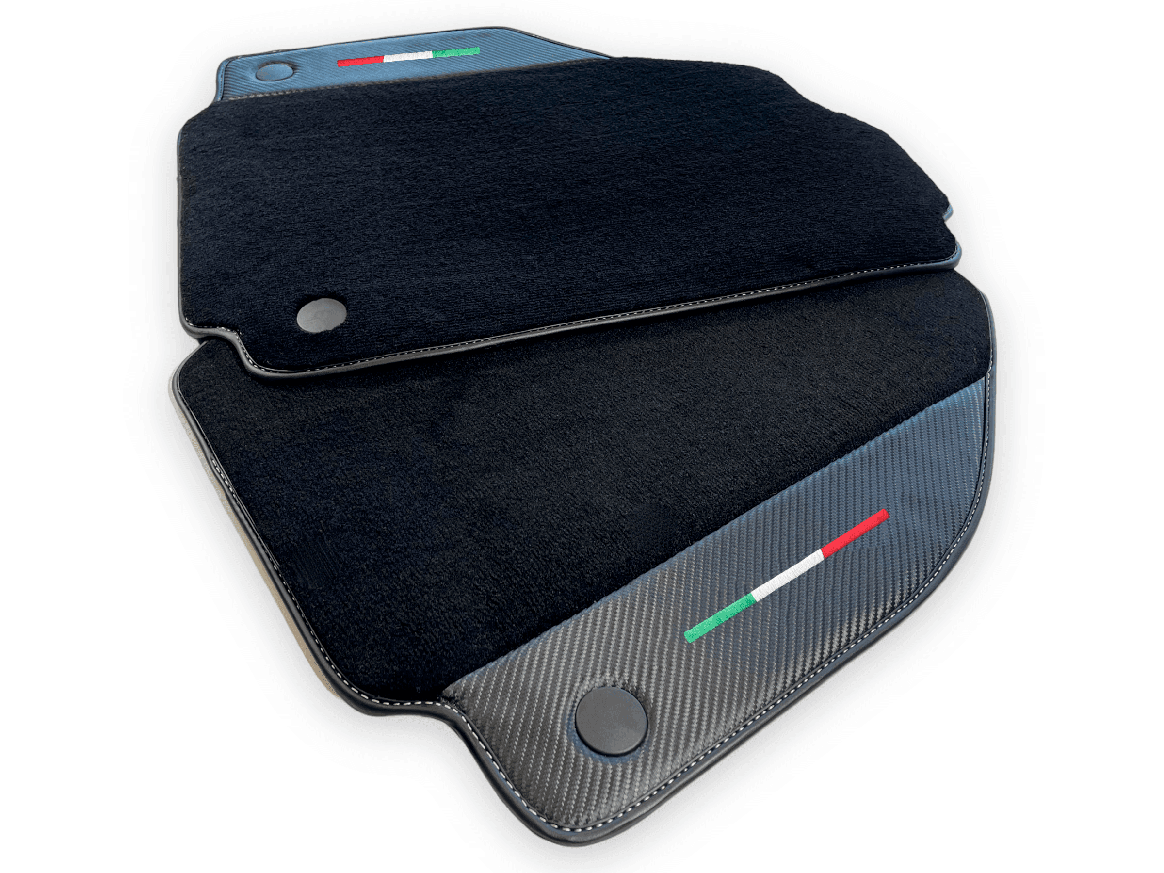 Black Floor Mats For Ferrari 488 Pista Spider 2019-2021 With Carbon Fiber Leather