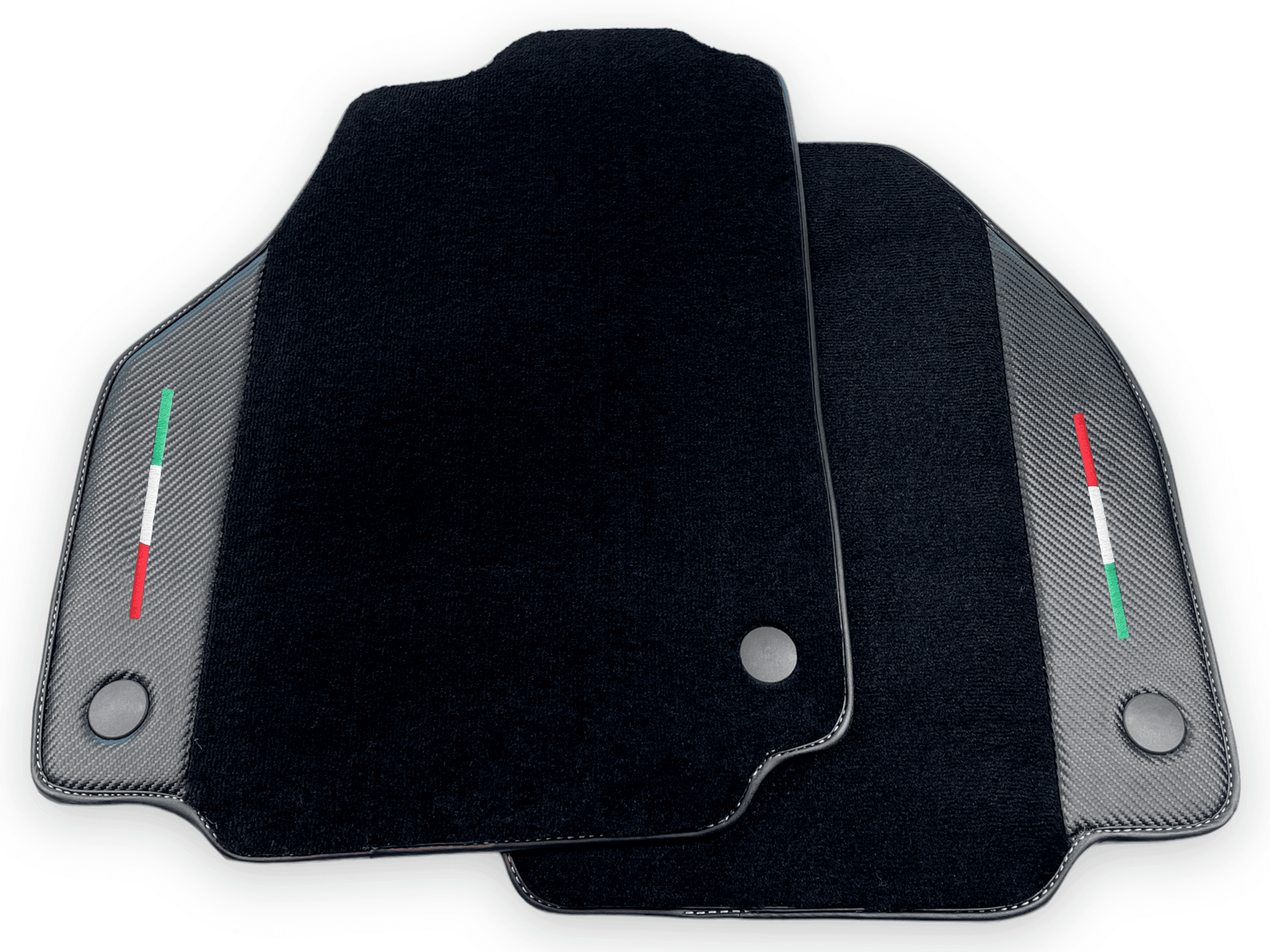 Protect your Ferrari 488 Pista Spider's interior with these sleek black floor mats. Made with carbon fiber leather, these mats provide a durable and stylish addition to your vehicle. Keep your car looking pristine while driving in complete comfort.