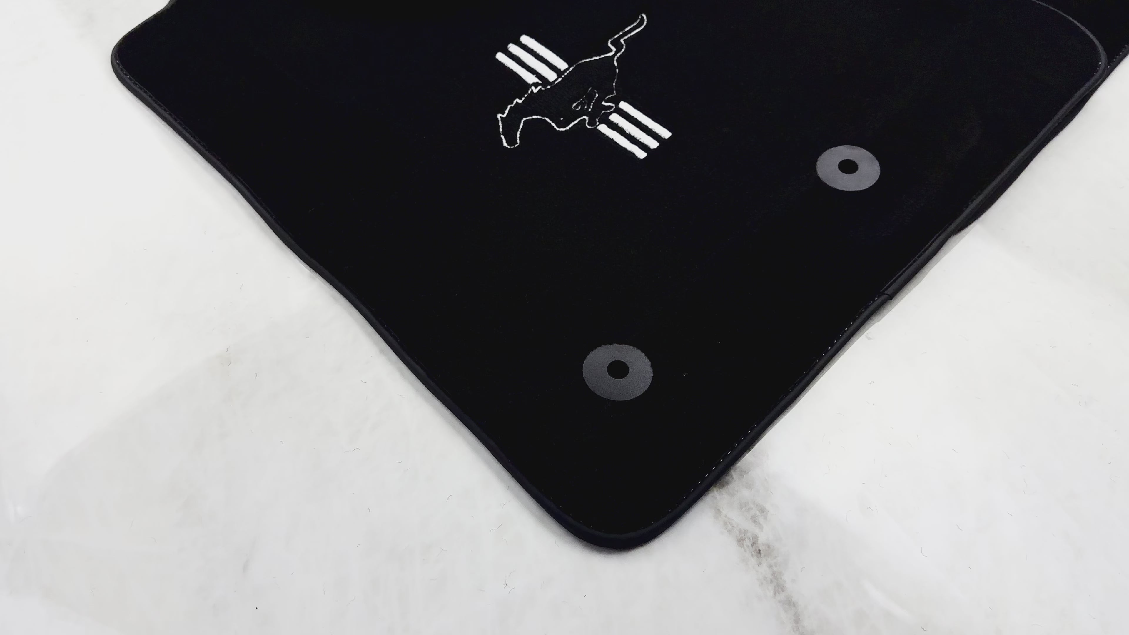 These black floor mats are designed for Ford Mustang GT500 Shelby (2015-2021) and feature the iconic Pony emblem. Made of durable materials, they offer superior protection for your vehicle's interior. An easy-to-clean surface ensures you can keep your ride looking great.