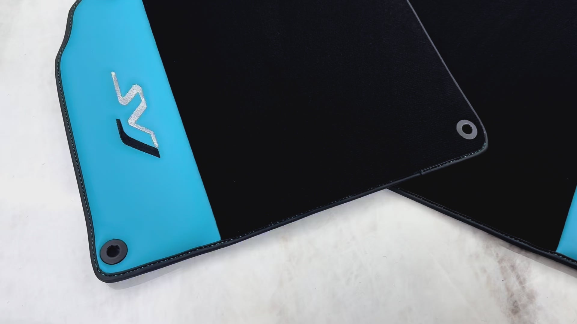 Black Floor Mats for Lamborghini Aventador SVJ with Blue Leather