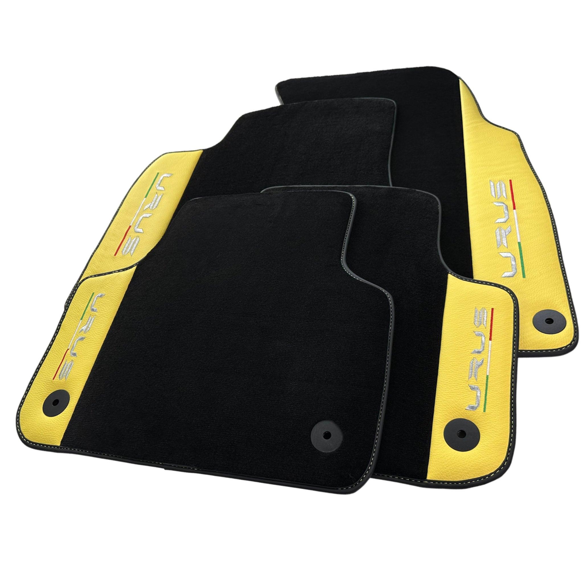 Black Floor Mats for Lamborghini Urus with Yellow Leather