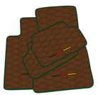 Upgrade your BMW with these luxurious Brown Leather Floor Mats. The Viper Hex Pattern, green stitching, and dark green trim make for a stylish and unique addition to your car. Expertly crafted with German precision, these mats are not only durable but also add a touch of elegance to your vehicle.