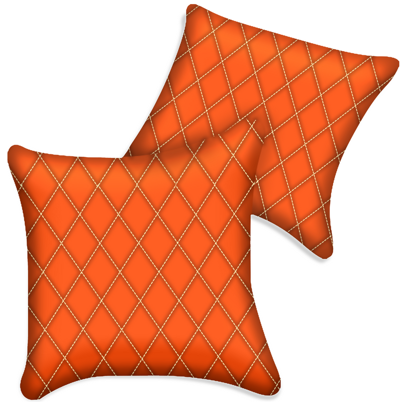 Customizable Orange Leather Pillows Set of 2 for All Vehicles | Single Diamond Pattern