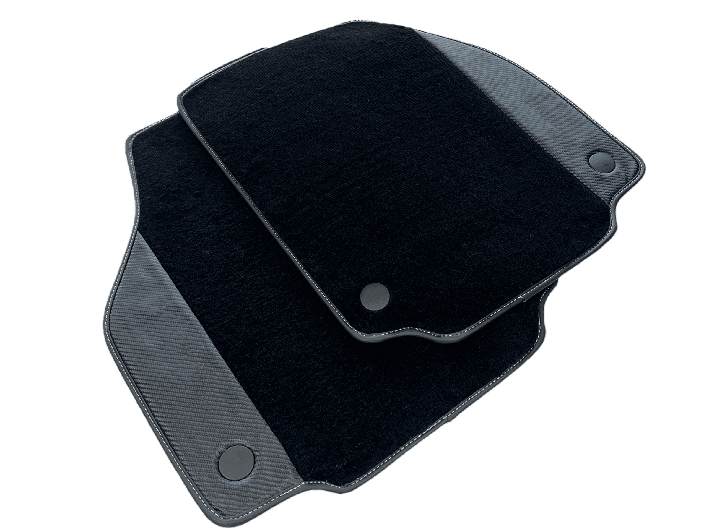 Protect your Ferrari 458 Speciale's interior flooring with our carbon leather floor mats. Their durable design and perfect fit provide 100% coverage, preventing dirt and debris from damaging your carpet. Upgrade your luxury vehicle with these elegant floor mats for a sleek and polished look.