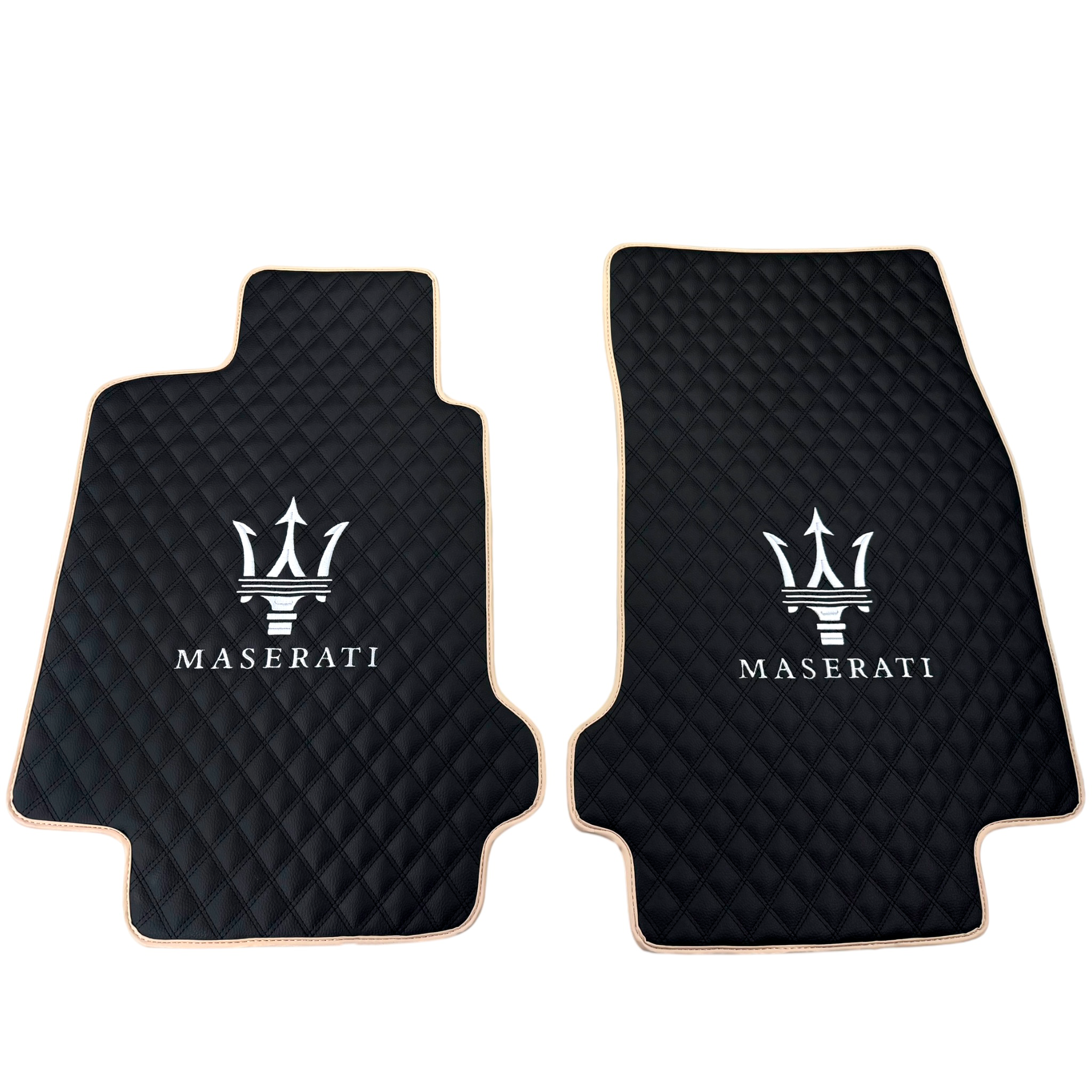 Expertly designed floor mats for the Maserati Coupe (2001-2007) in sleek black and luxurious Alcantara leather. These mats provide custom-fit protection for your car's floors, keeping them clean and pristine. Elevate your driving experience with these high-quality mats.