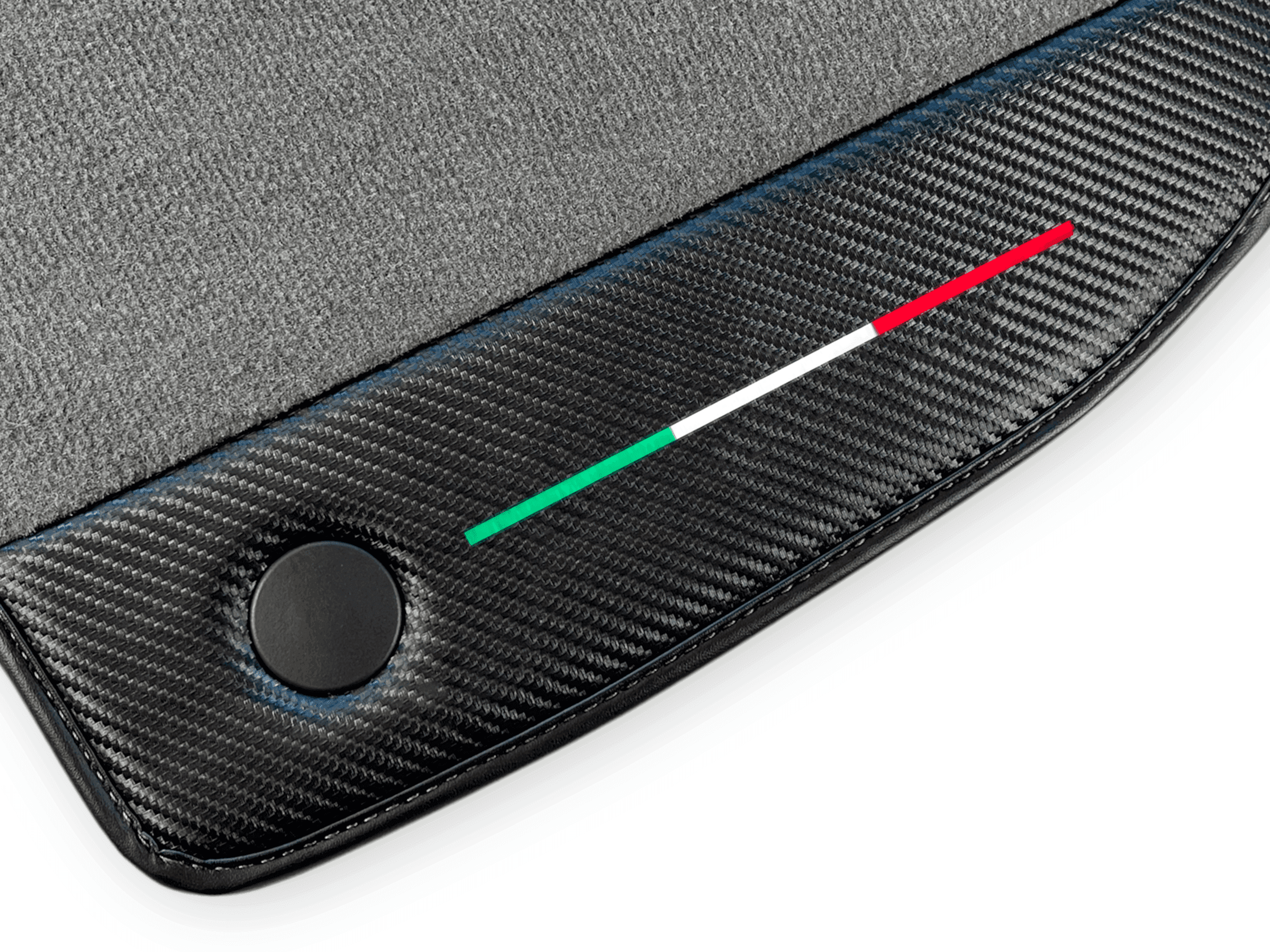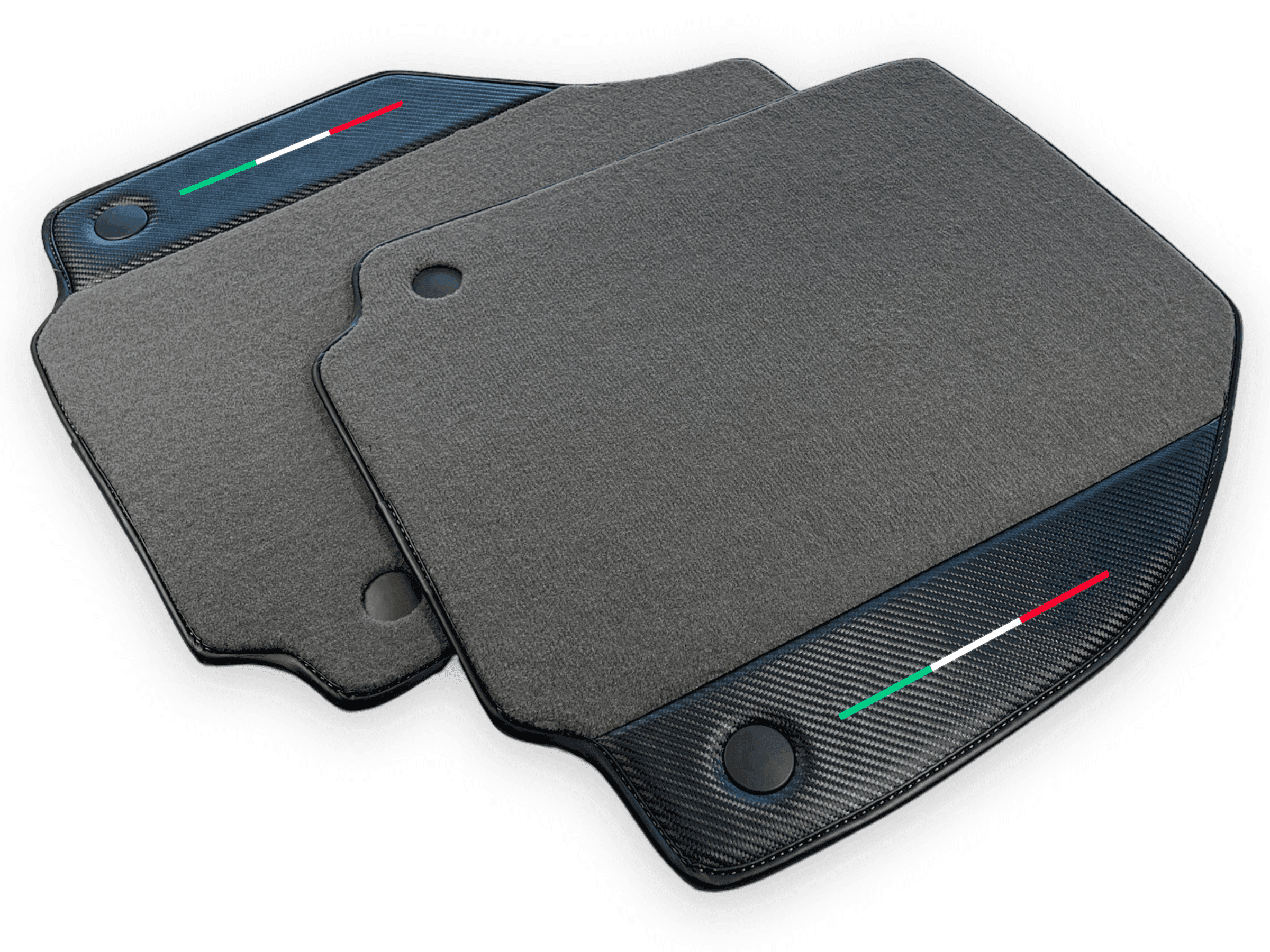 Expertly crafted for the Ferrari 488 Pista Spider 2019-2021, these gray floor mats feature a stylish carbon fiber leather design. They provide superior protection against dirt and debris, while adding a touch of luxury to your car's interior. Upgrade your Ferrari with these high-quality floor mats.
