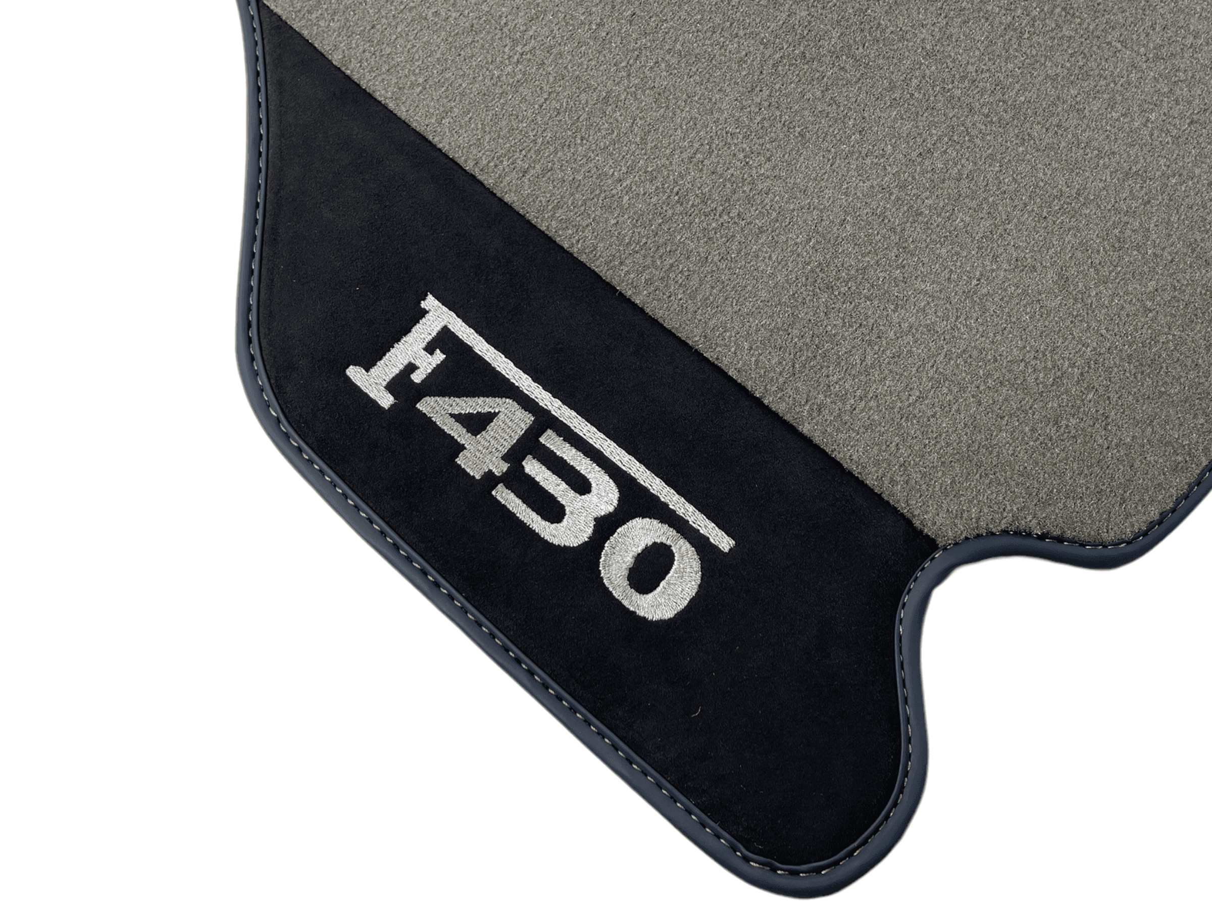 Upgrade your Ferrari F430 2004-2009 with our premium gray floor mats made with luxurious Alcantara leather. Experience superior protection and style, with a perfect fit for your vehicle. Elevate your driving experience with these mats that provide both functionality and luxury.