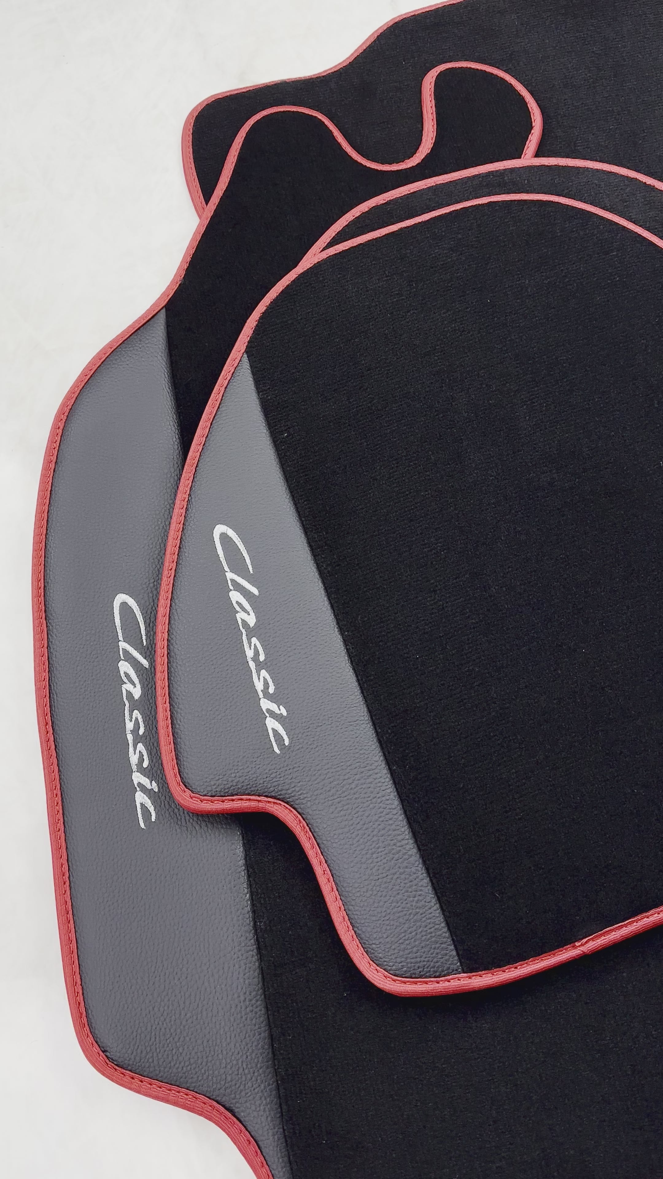 Leather Floor Mats for Porsche Classic 911 (1963-1989) with Red Trim