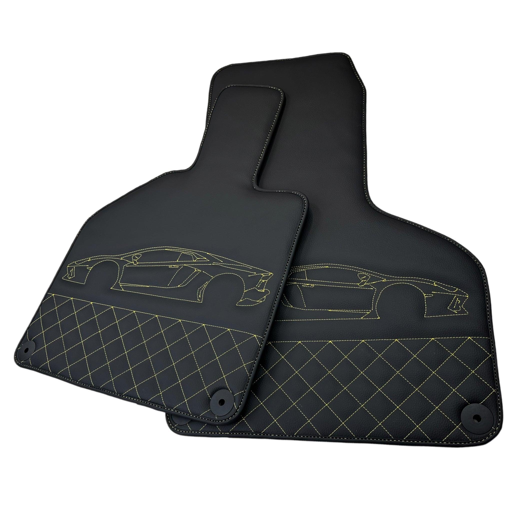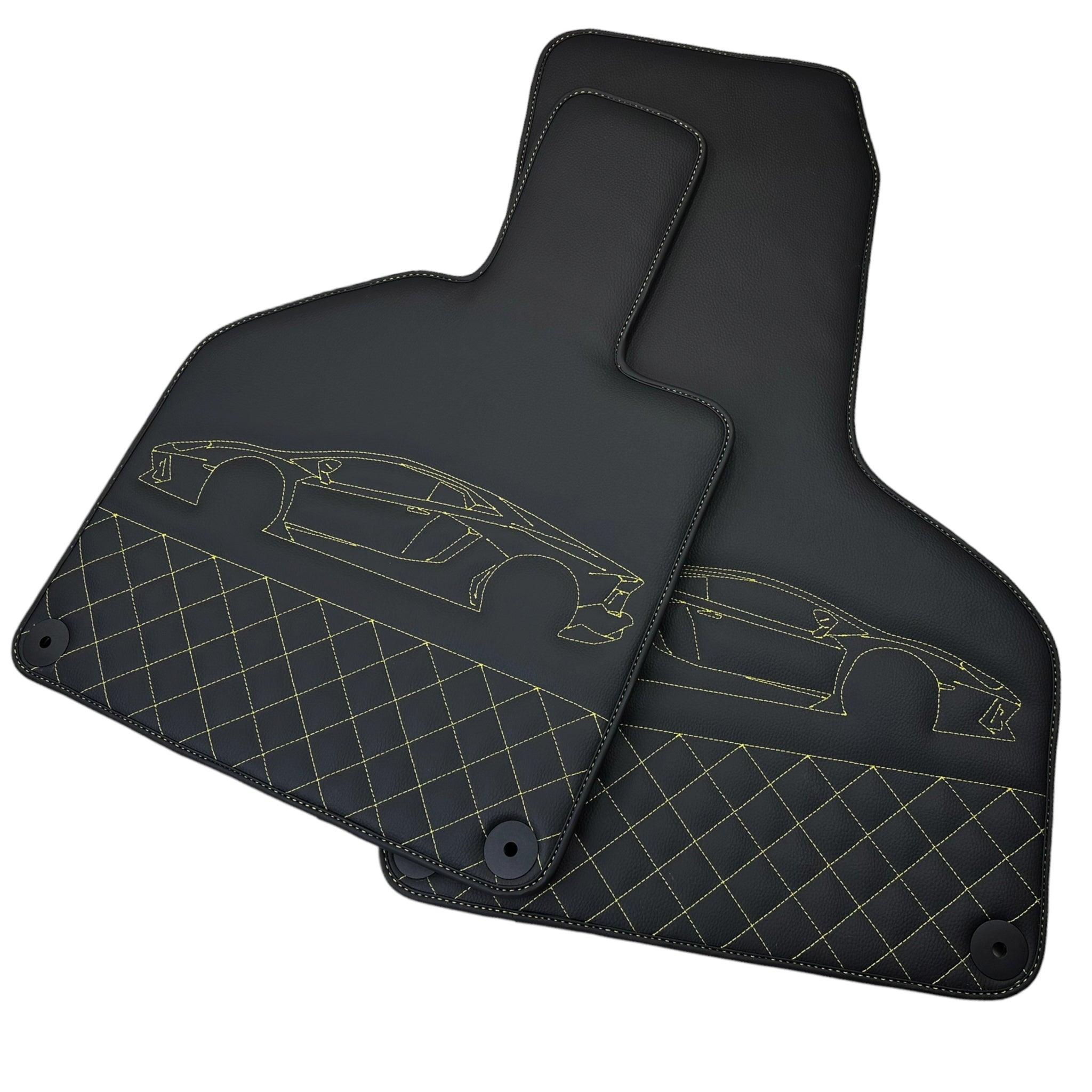 Leather Floor Mats for Lamborghini Huracan Yellow Sewing | ER56 Design