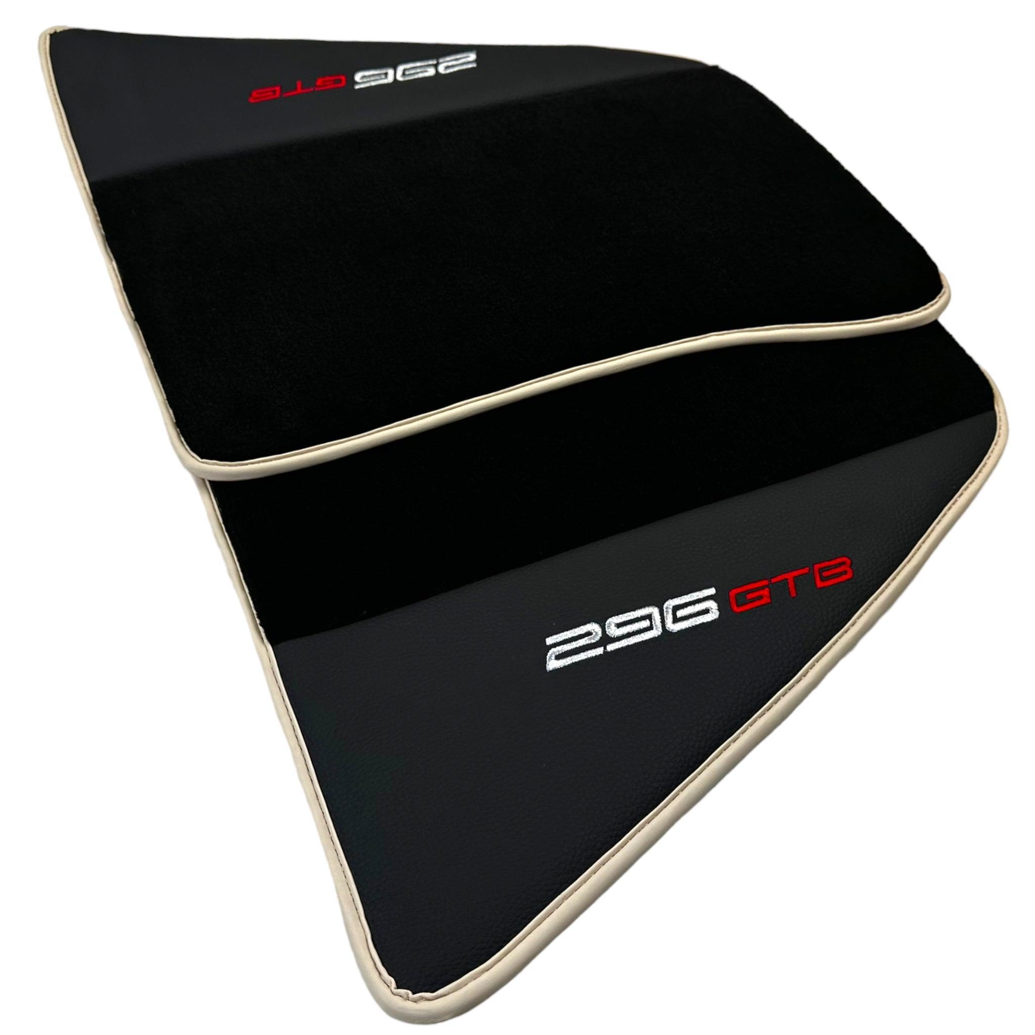 حصائر سيارات سوداء لفيراري 296 GTB (2022-2025) مع جلد | تفاصيل باللون البيج