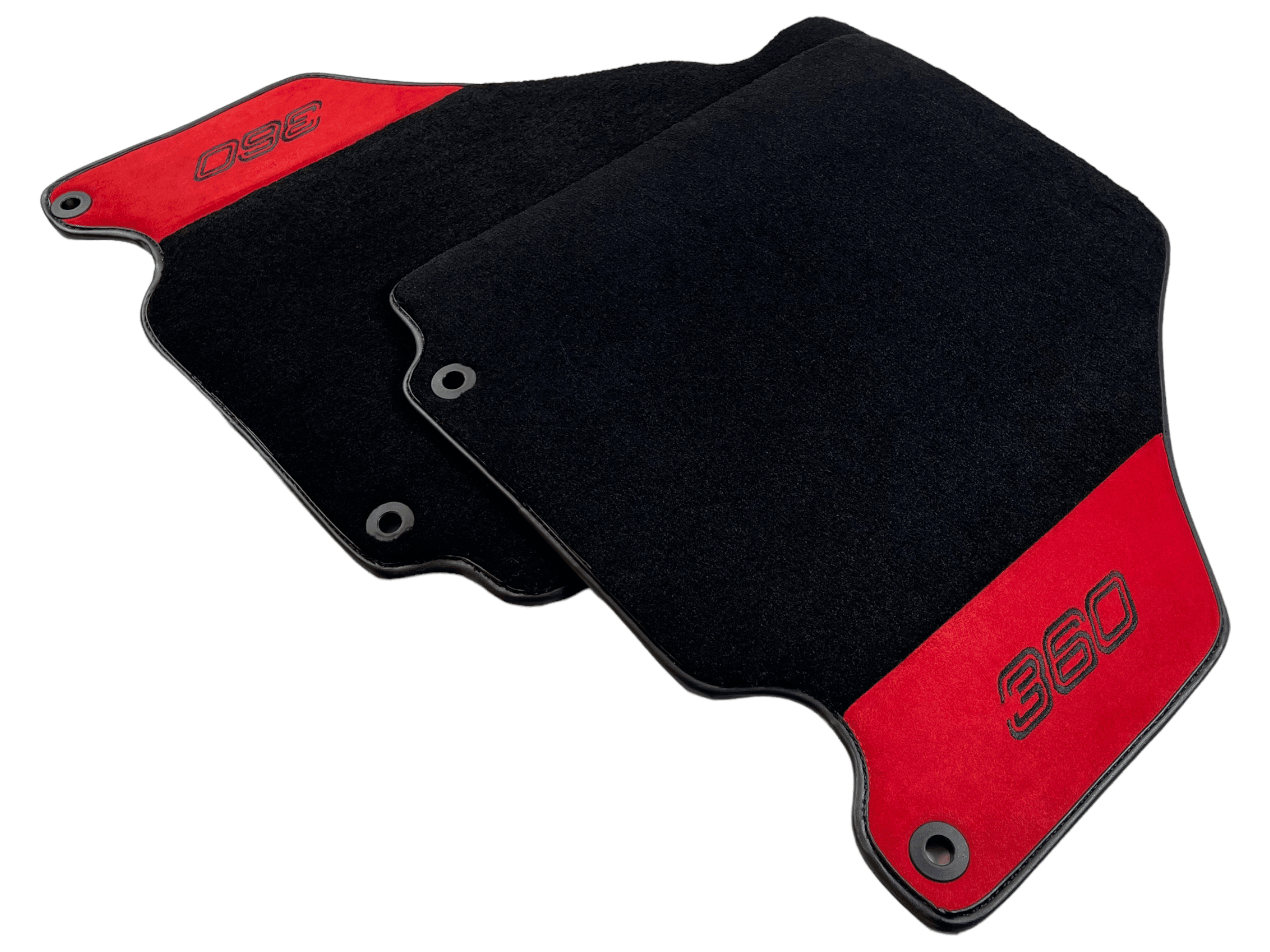 حصائر سيارات سوداء لفيراري 360 مودينا 1999-2005 مع جلد ألكانتارا الأحمر