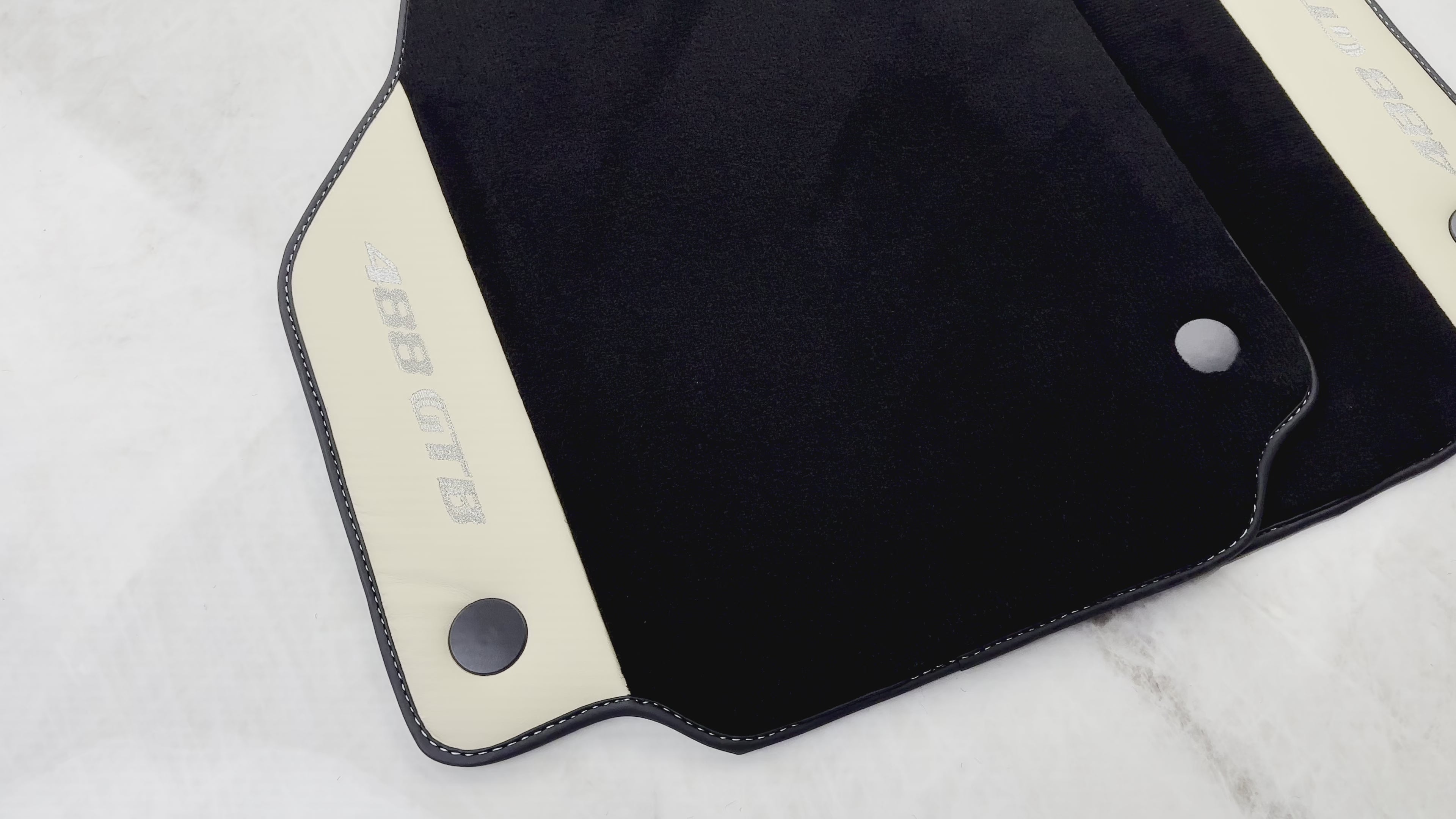 سجاد سيارة أسود لفيراري 488 GTB (2015-2022) بجلد كريما نابا