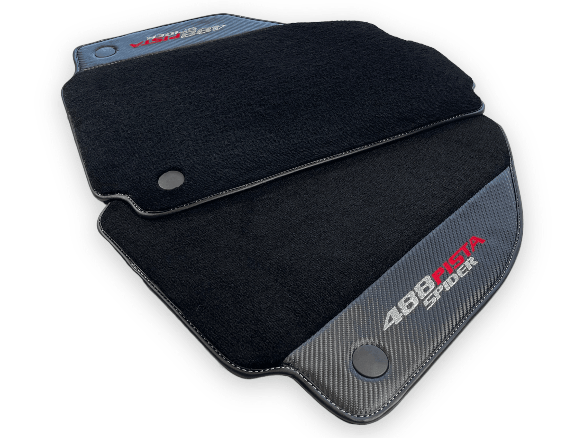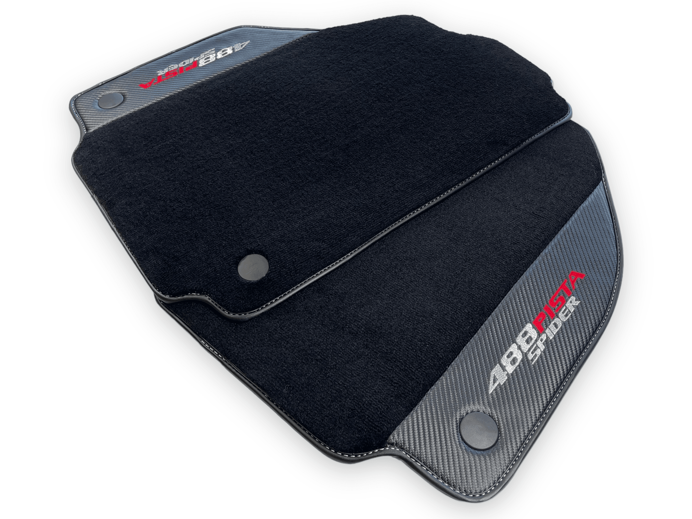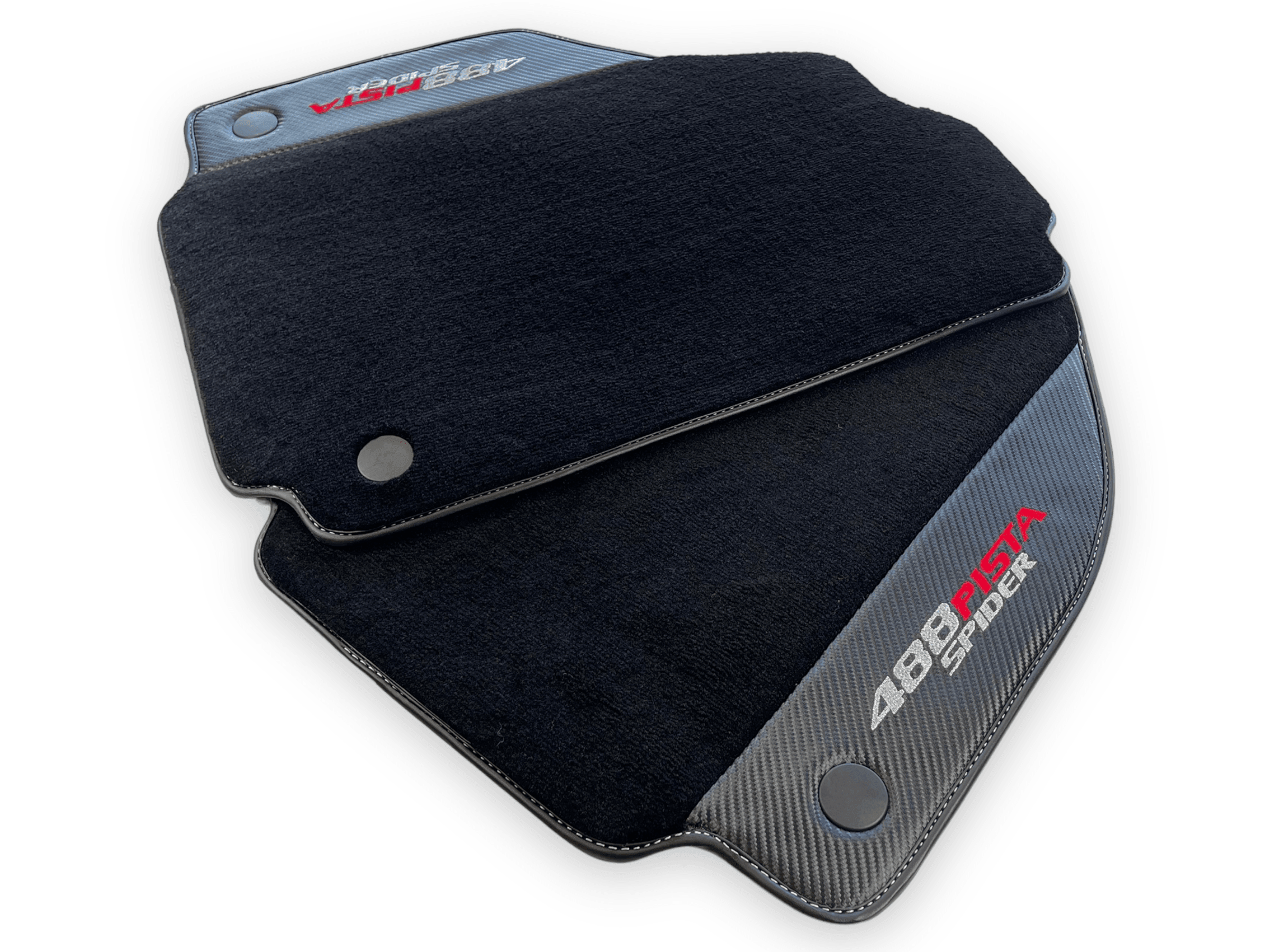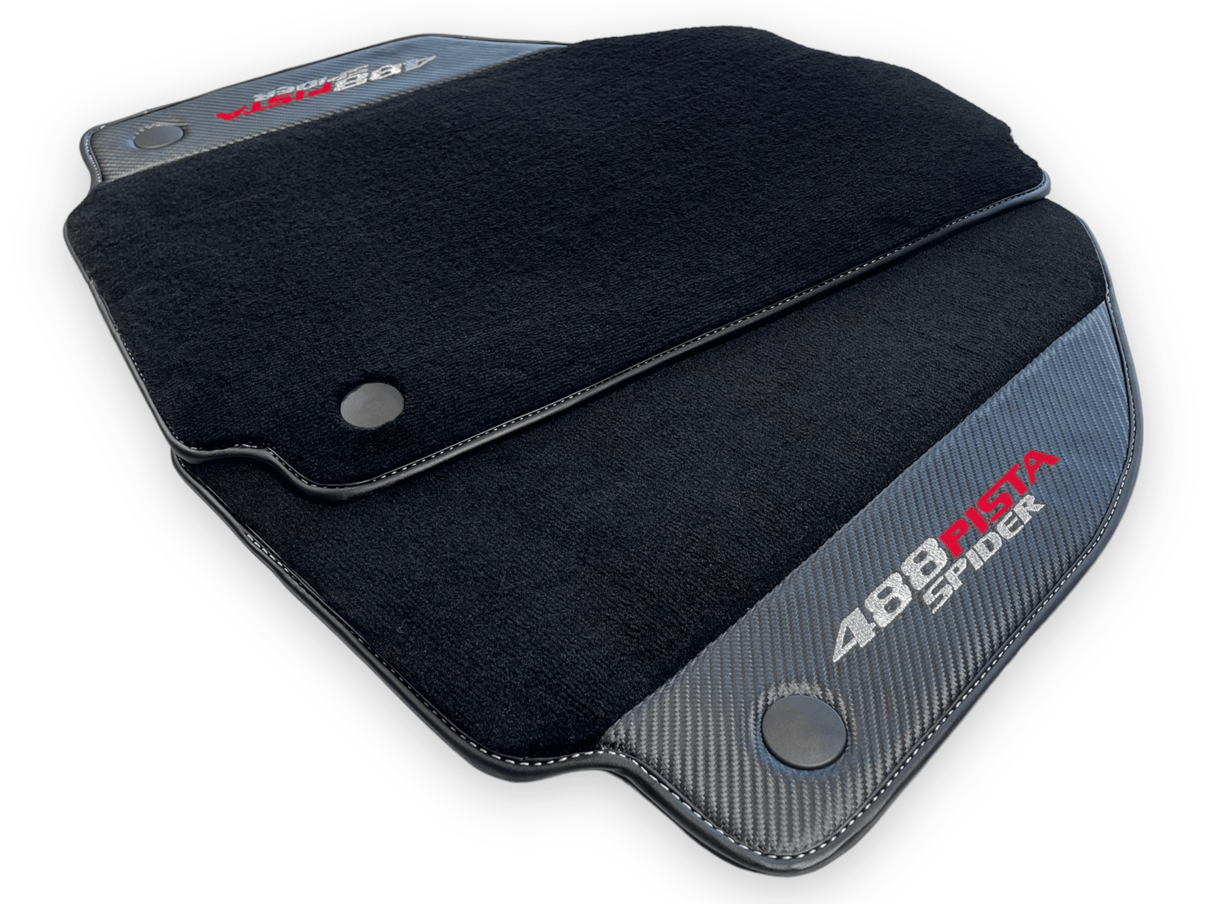 احمِ داخلية فيراري 488 بيستا سبايدر الخاصة بك مع حصائر السيارة السوداء الأنيقة هذه. مصنوعة من جلد ألياف الكربون، توفر هذه الحصائر إضافة دائمة وأنيقة لمركبتك. احتفظ بسيارتك تبدو بحالة ممتازة بينما تقود براحة كاملة.
