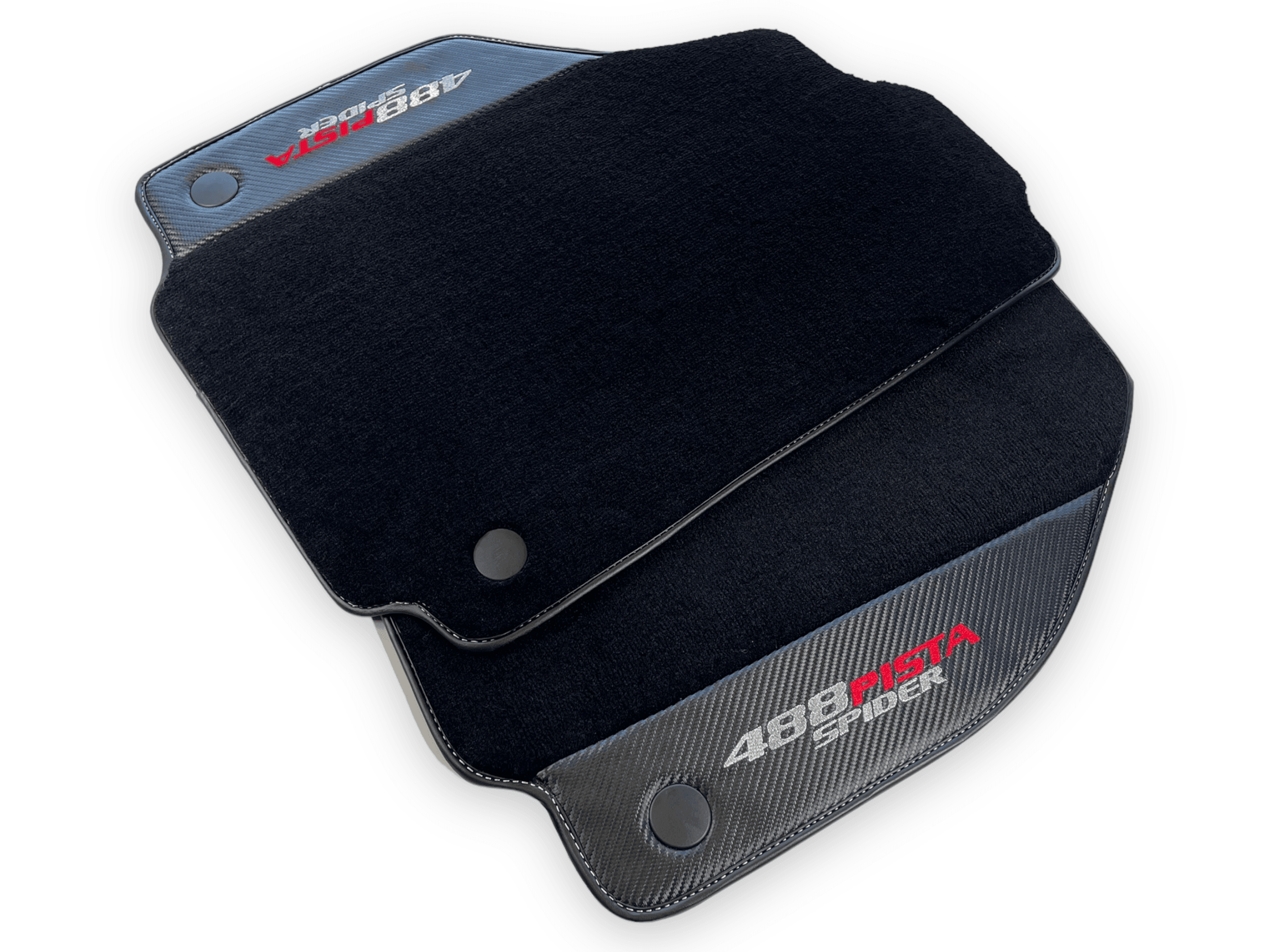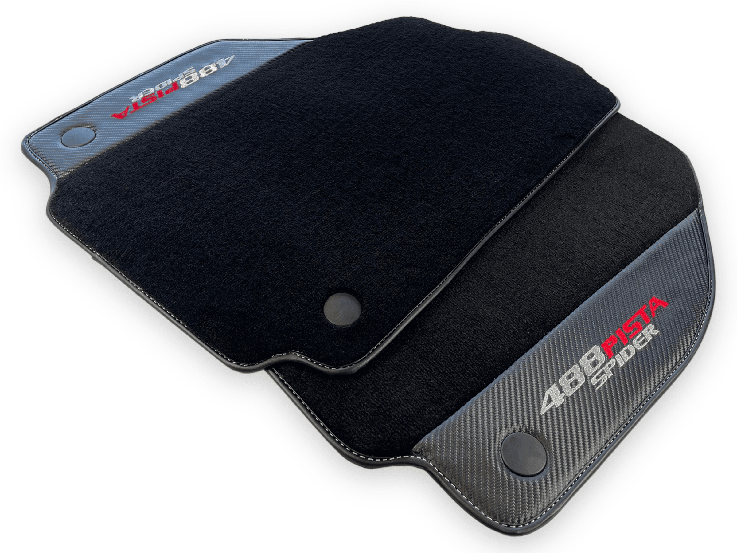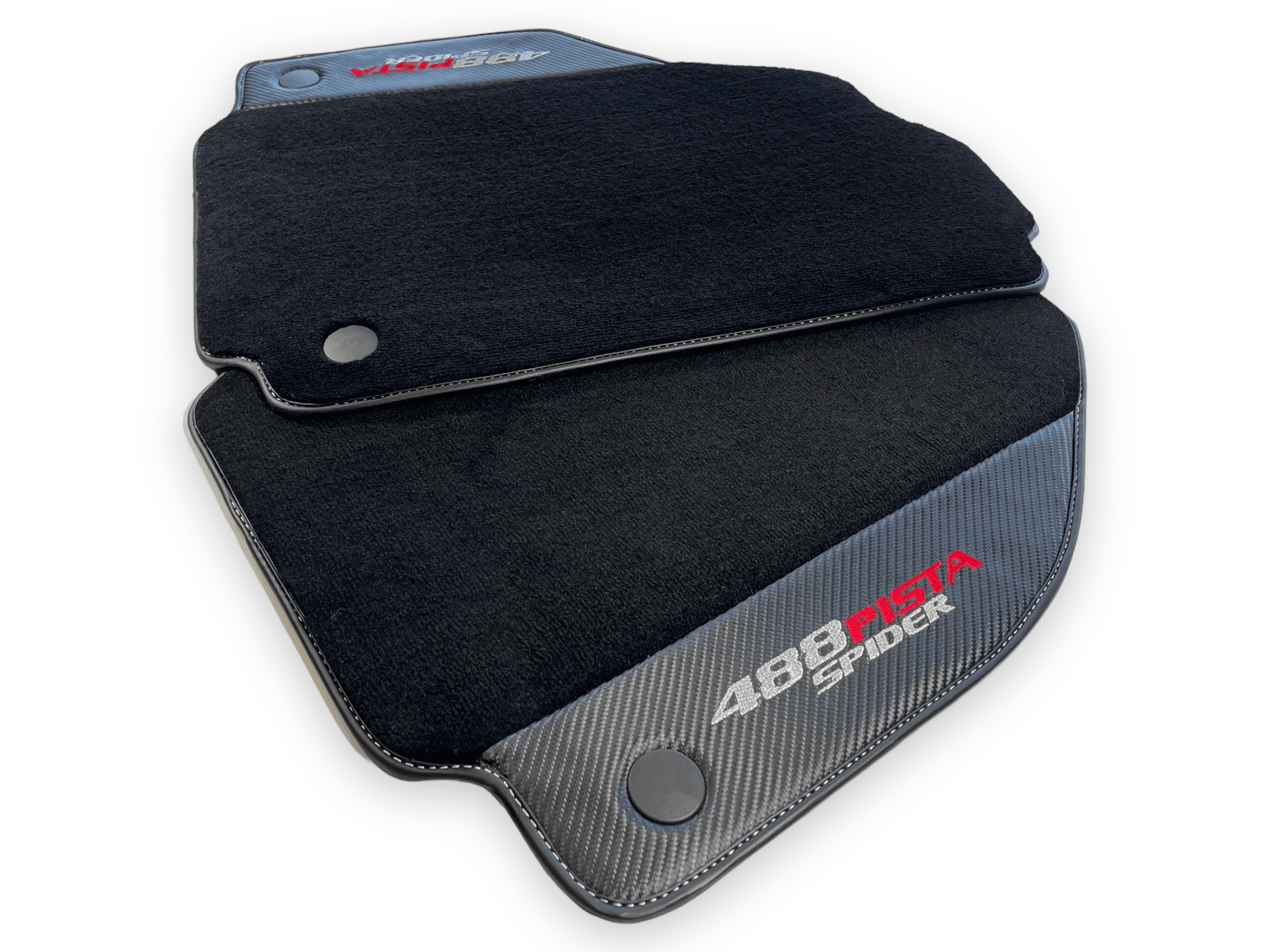 احمِ داخلية فيراري 488 بيستا سبايدر الخاصة بك مع حصائر السيارة السوداء الأنيقة هذه. مصنوعة من جلد ألياف الكربون، توفر هذه الحصائر إضافة دائمة وأنيقة لمركبتك. احتفظ بسيارتك تبدو بحالة ممتازة بينما تقود براحة كاملة.