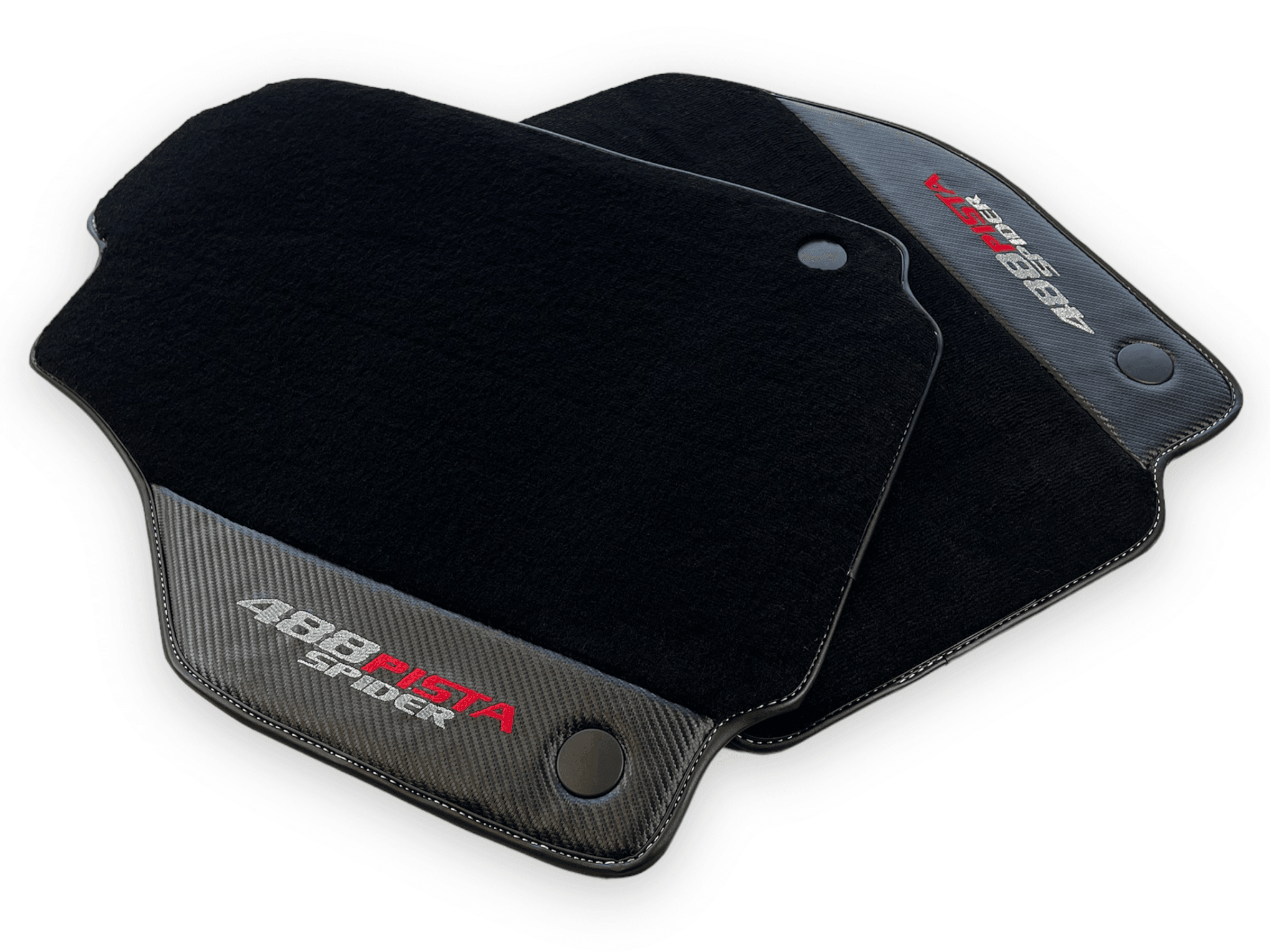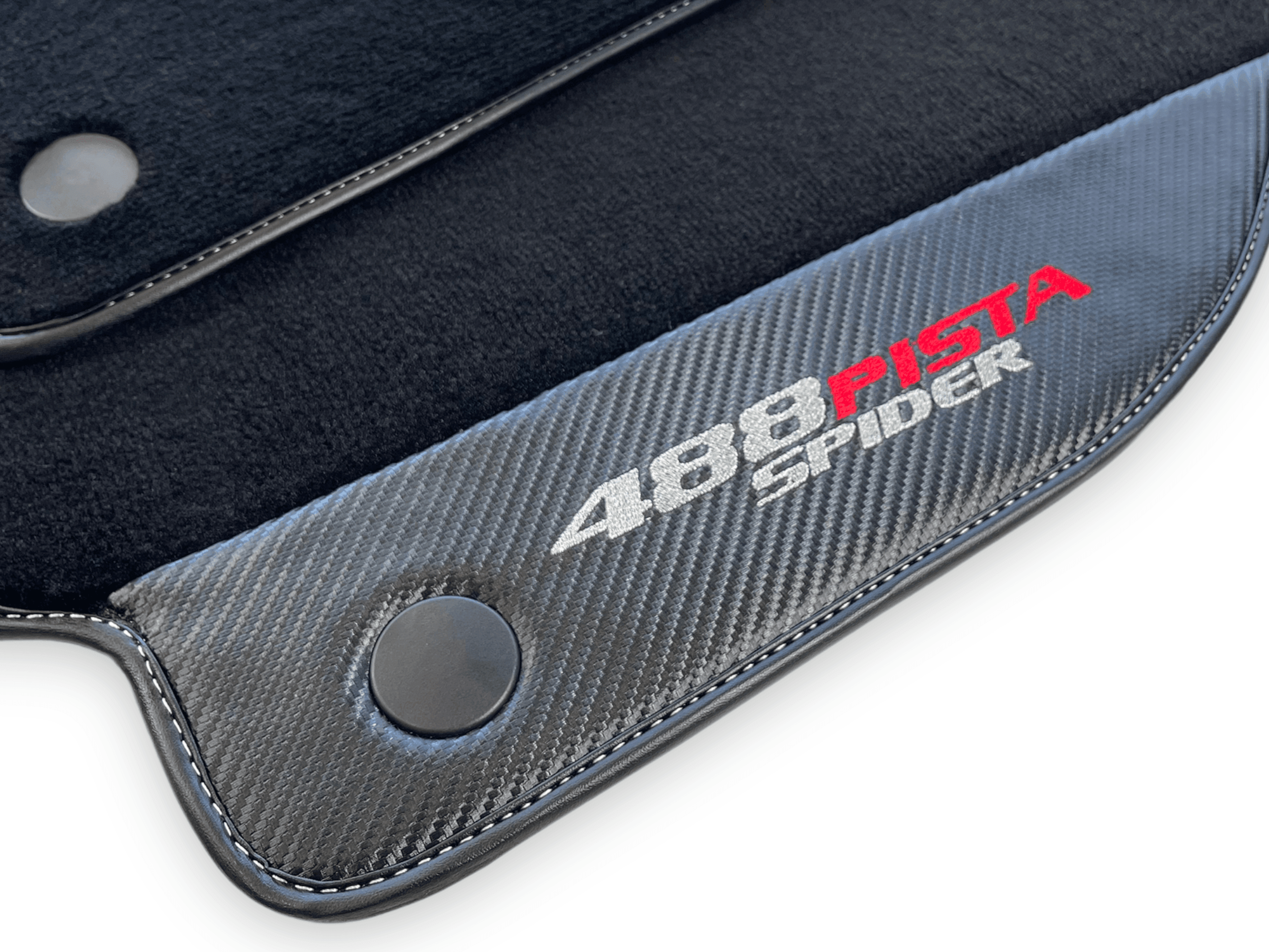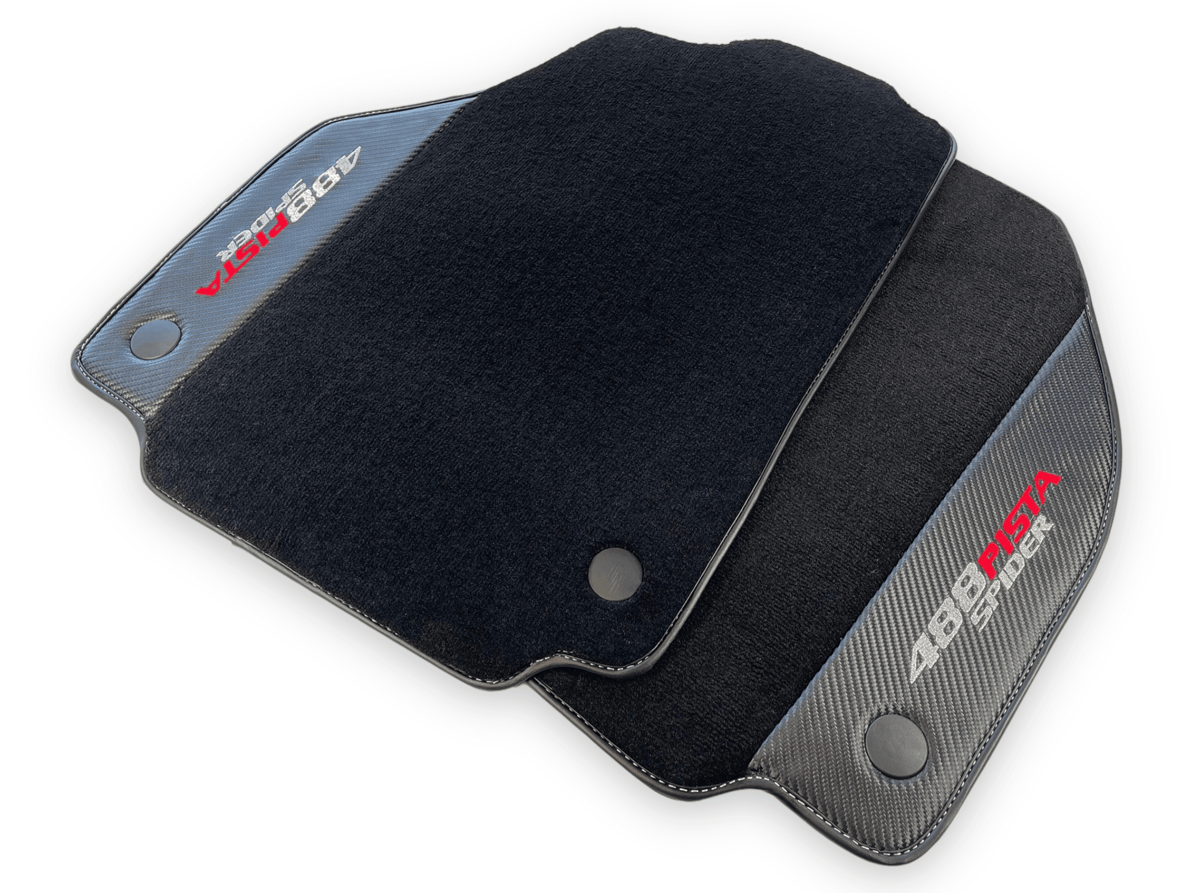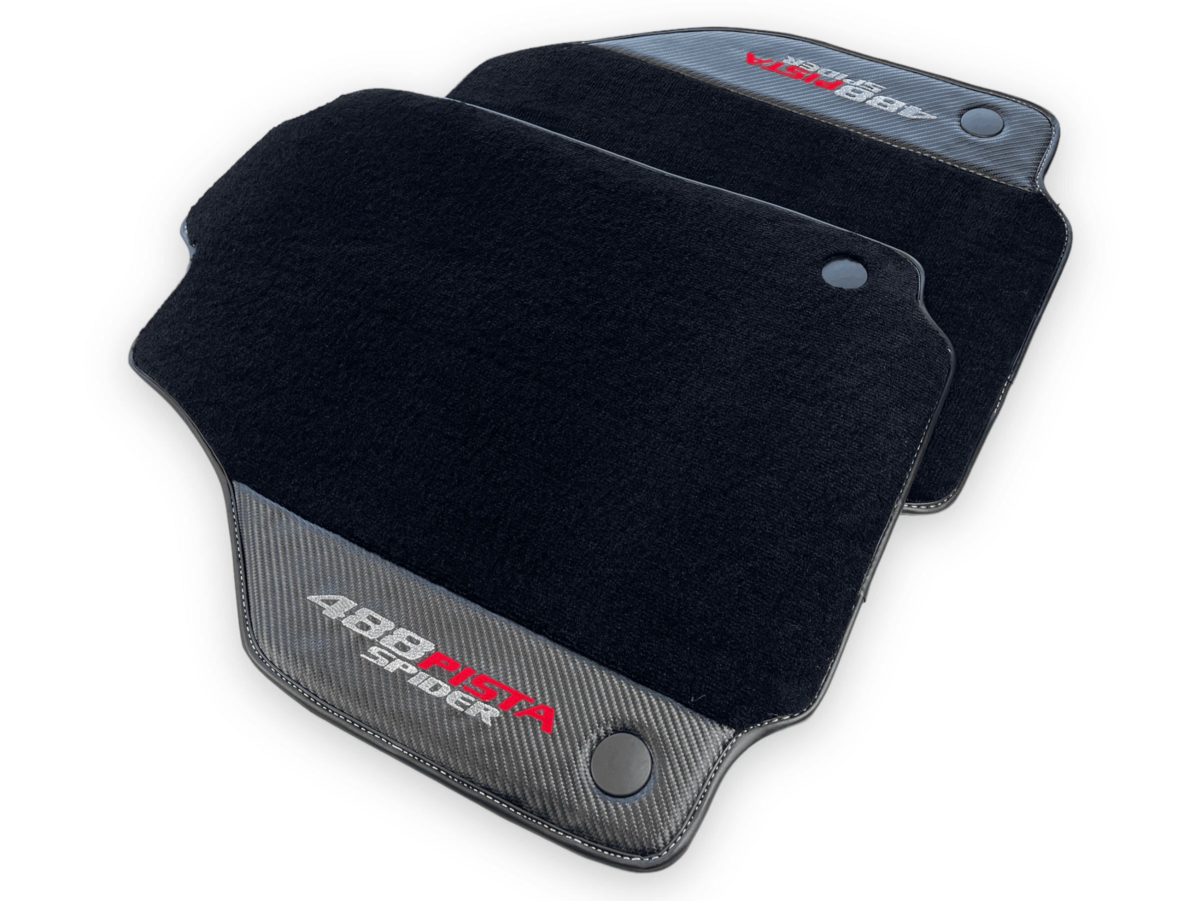 احمِ داخلية فيراري 488 بيستا سبايدر الخاصة بك مع حصائر السيارة السوداء الأنيقة هذه. مصنوعة من جلد ألياف الكربون، توفر هذه الحصائر إضافة دائمة وأنيقة لمركبتك. احتفظ بسيارتك تبدو بحالة ممتازة بينما تقود براحة كاملة.