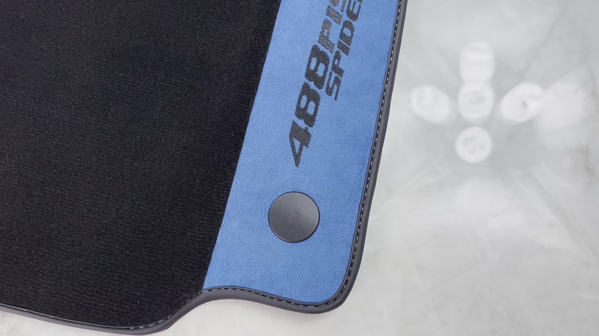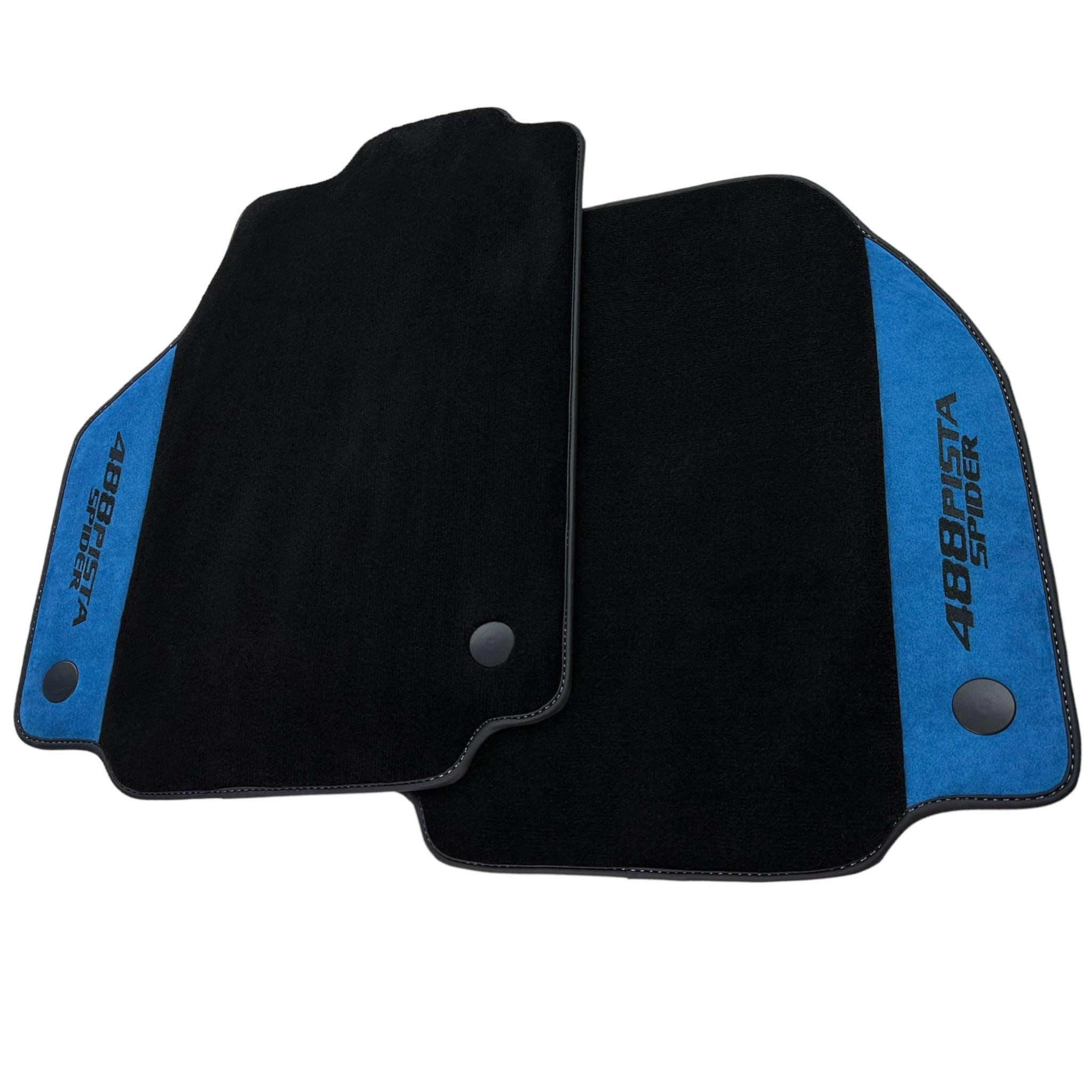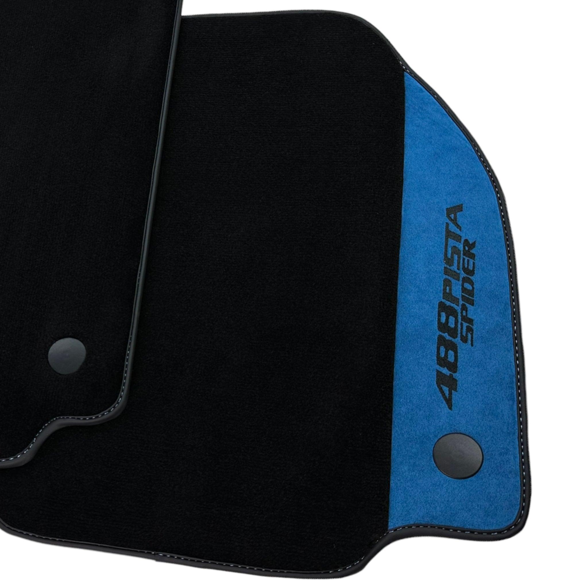 حصائر سيارات سوداء لفيراري 488 بيستا سبايدر 2019-2021 مع جلد ألكانتارا الأزرق