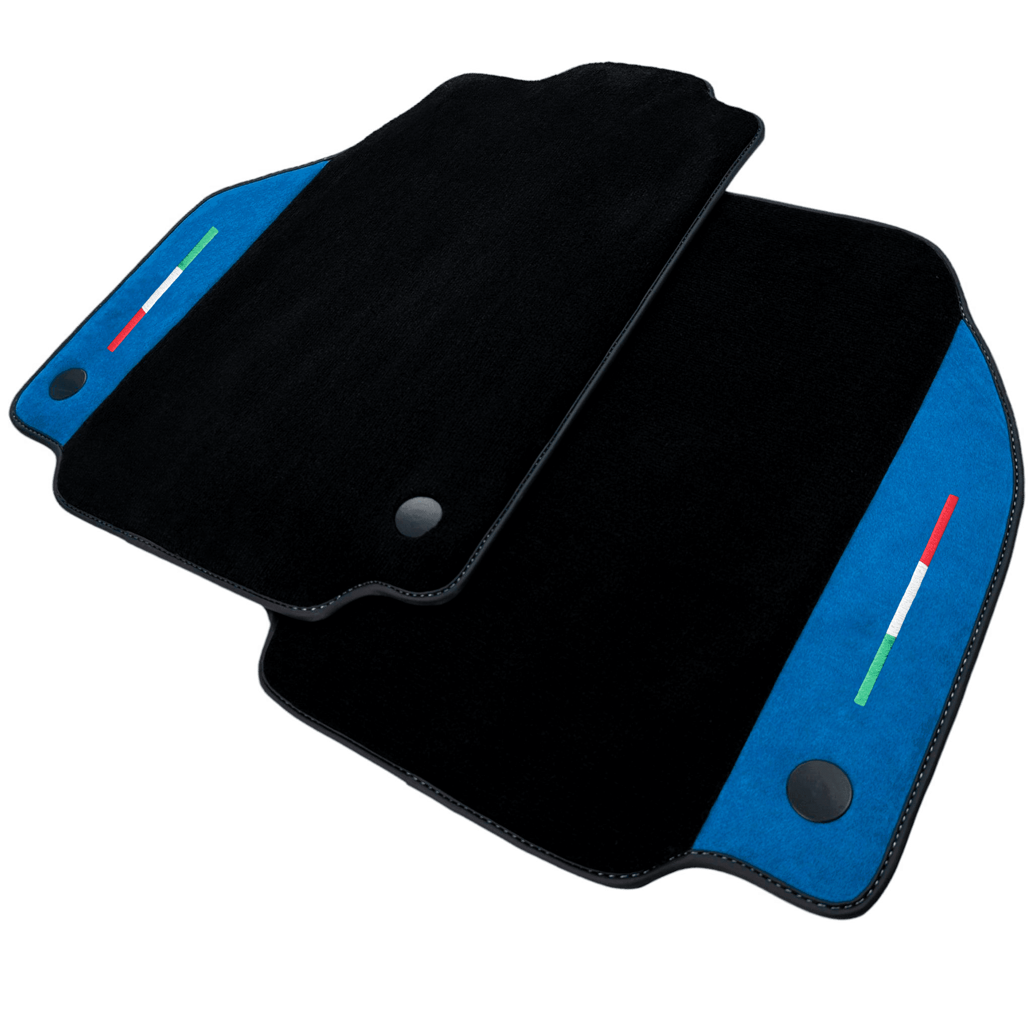 سجاد سيارة أسود لفيراري 488 بيستا سبايدر 2019-2021 مع جلد ألكنتارا الأزرق