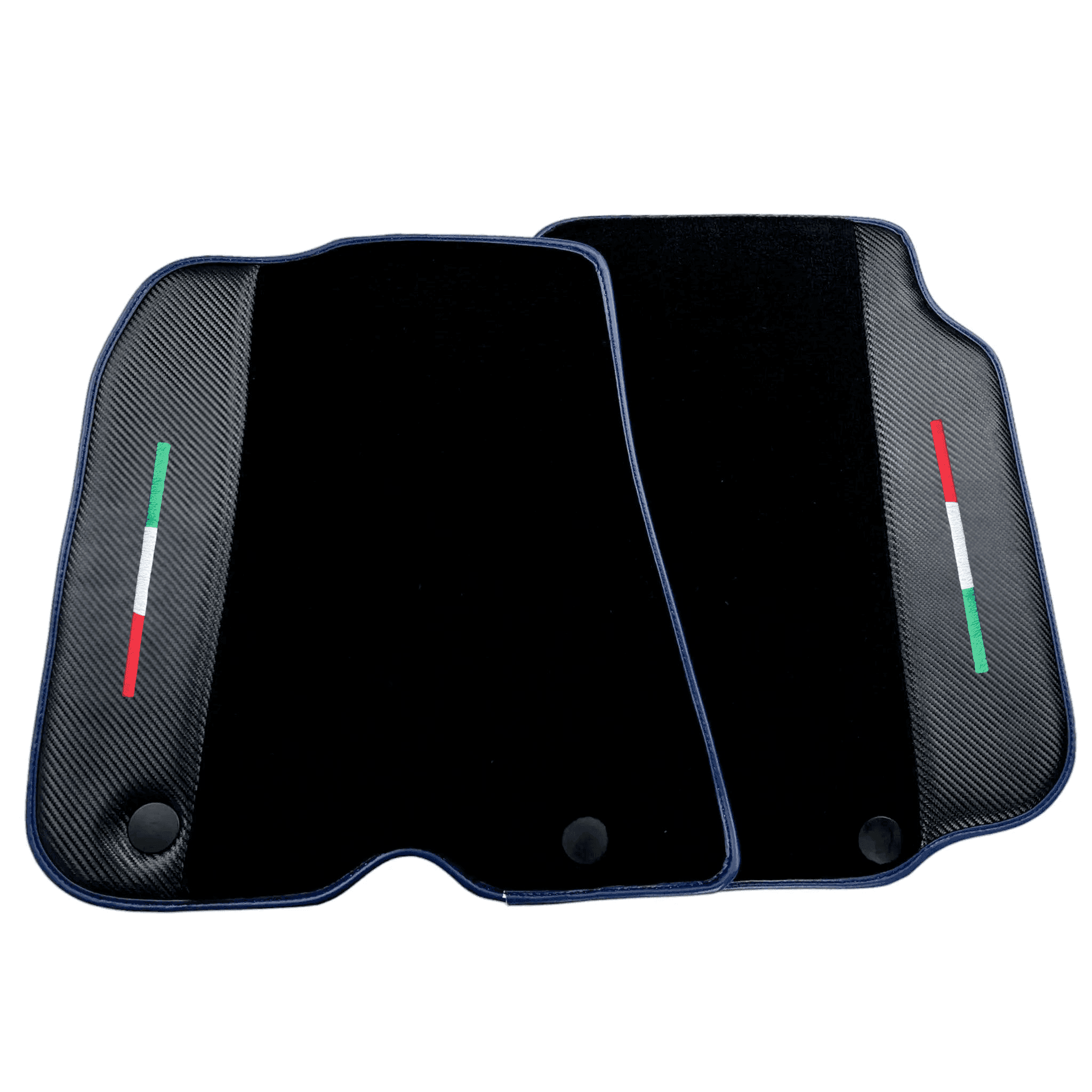 حصائر سيارات سوداء لفيري 812 GTS (2019-2023) مع جلد كربوني | حواف زرقاء