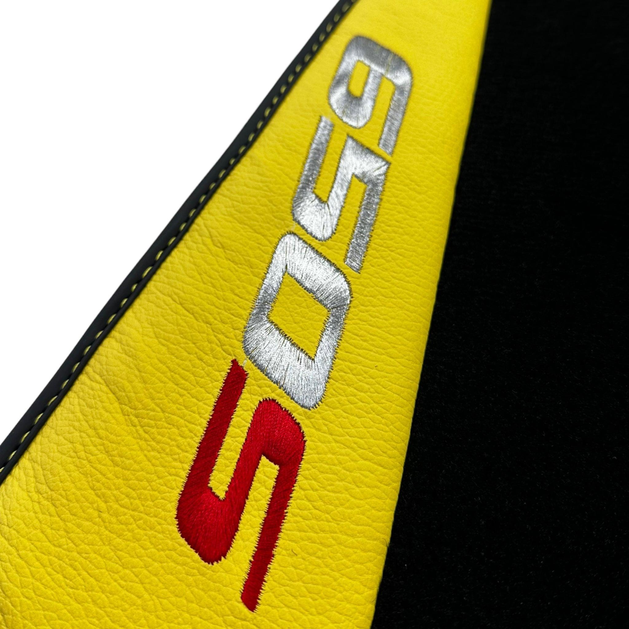 تم تصميم حصائر السيارات السوداء المخصصة لمكلارين 650S بلمسات من الجلد الأصفر لمظهر أنيق ومتطور. مصنوعة خصيصًا لسيارتك، توفر هذه الحصائر ملاءمة مثالية وحماية لارضية سيارتك. قم بترقية داخل سيارتك مع هذه الحصائر عالية الجودة والأنيقة.