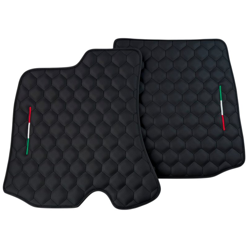 Black Leather Floor Mats with Symmetrical Hex Pattern for Ferrari Roma (2021–2024) with Italian Flag